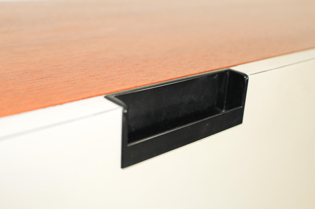 1958년 UMS Pastoe를 위해 Cees Braakman이 디자인한 캐비닛 CU01. 일본 시리즈의 이 우아한 캐비닛은 플랩이 있어 탁상용으로 사용할 수 있습니다. 수납장은 좁은 블랙 메탈 베이스와 깔끔한 라인으로 공간에 떠 있는 듯한 느낌을 줍니다. 캐비닛 상태는 양호합니다. 치수: 높이 117cm, 폭 126cm, 깊이 45cm.