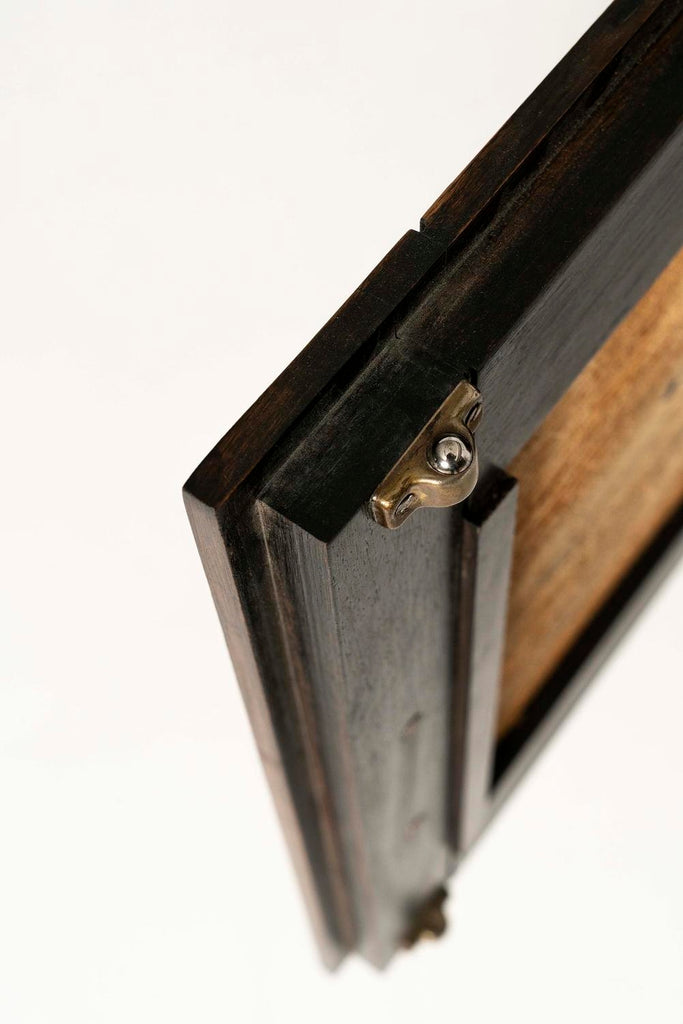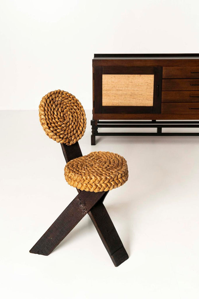 1950년대 Leonardo Fiori가 제작한 스테인드 오크 소재의 이탈리아 ISA 베르가모 서랍장. 르 코르뷔지에의 제자였던 이탈리아 건축가 레오나르도 피오리가 디자인한 매우 만족스러운 서랍장입니다. 피오리는 그 비율과 결과를 보면 어느 정도 거장의 영향을 받았음을 알 수 있다. 4개의 서랍은 상단 및 하단 선반과 조화를 이루며 우아한 블랙 래커 금속 손잡이로 장식되어 있습니다. 서랍 옆에는 더 어두운 참나무 프레임이 있는 해초 문이 있습니다. 미적 측면 외에도 융기 가장자리 또는 갤러리에는 기능적 목적도 있습니다. 변기에서 구르거나 미끄러지지 않고 빠르게 무언가를 놓을 수 있습니다. 저장 공간은 나무 프레임에 달려 있으며 전체에 경쾌함을 제공합니다. 서랍장 측면과 프레임에 보이는 황동 커넥터를 사용하여 구조를 더욱 견고하게 만들었습니다. 나무와 해초의 다양한 색조가 조합되어 고급스럽고 평온한 느낌을 줍니다. 이 아름다운 서랍장은 상태가 양호하며 상태는 연식 및 사용과 완전히 일치합니다. 나무에 약간의 가벼운 긁힘과 하나의 칩은 연식을 고려할 때 매우 특별합니다.