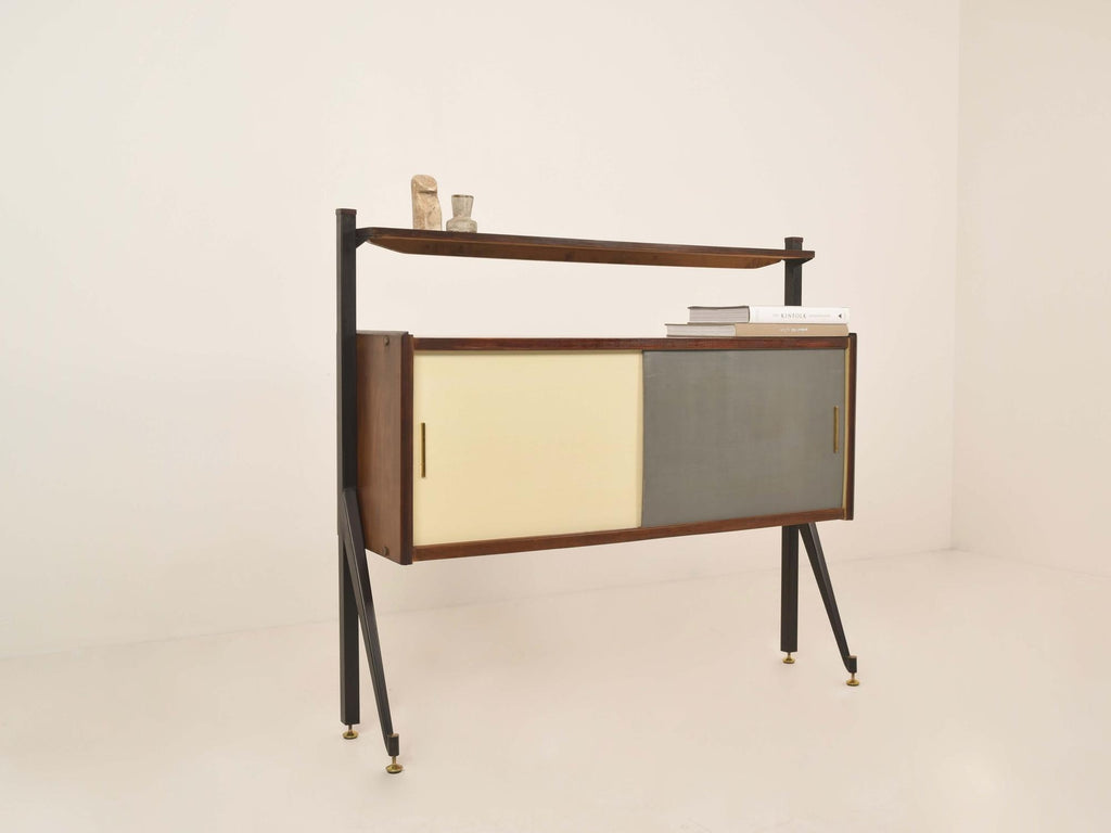 Italian Modern Cabinet with Colored Sliding Doors, Italy 1970s
