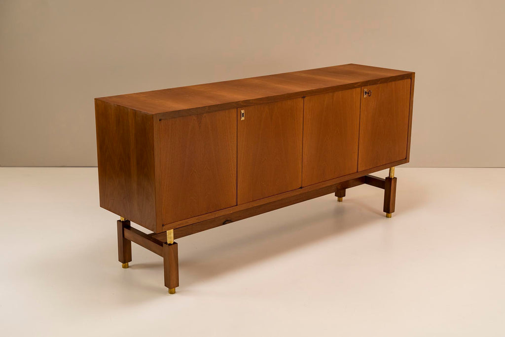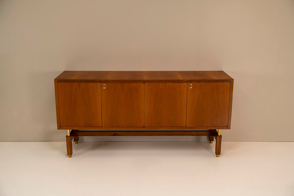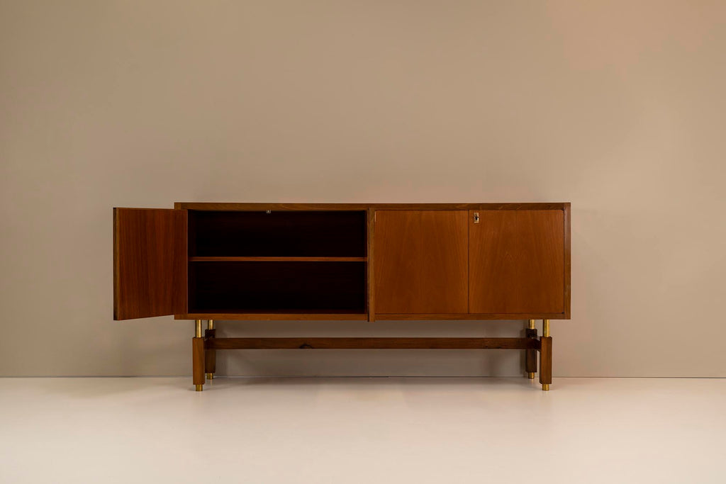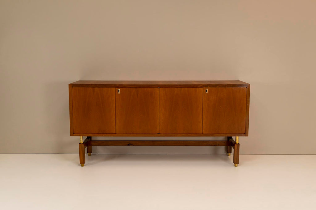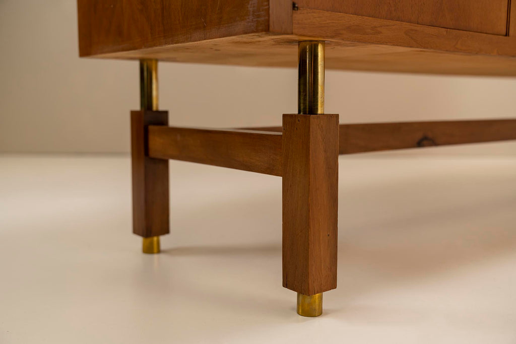 Italian Sideboard in Teak, Walnut and Brass, 1950s