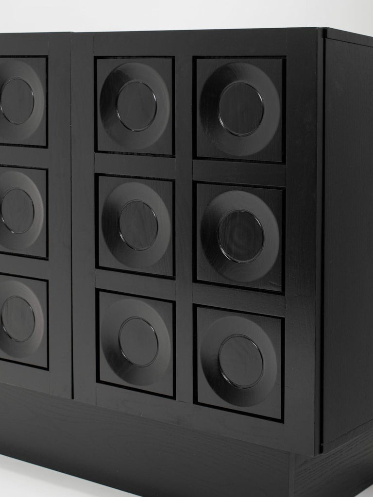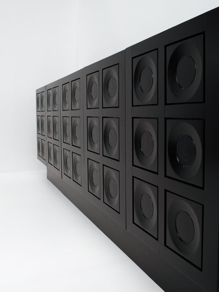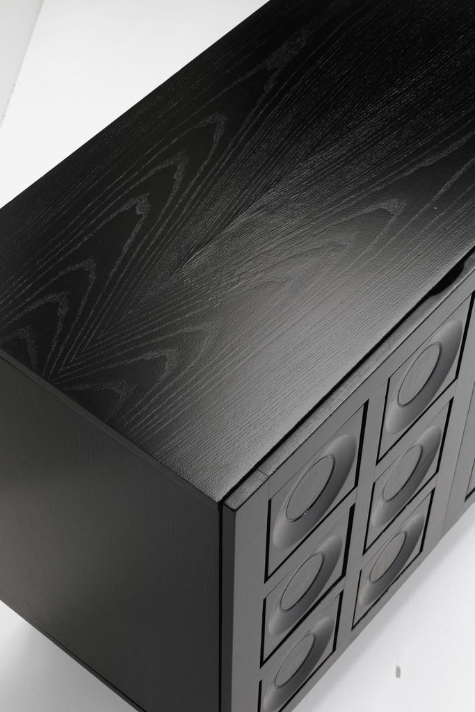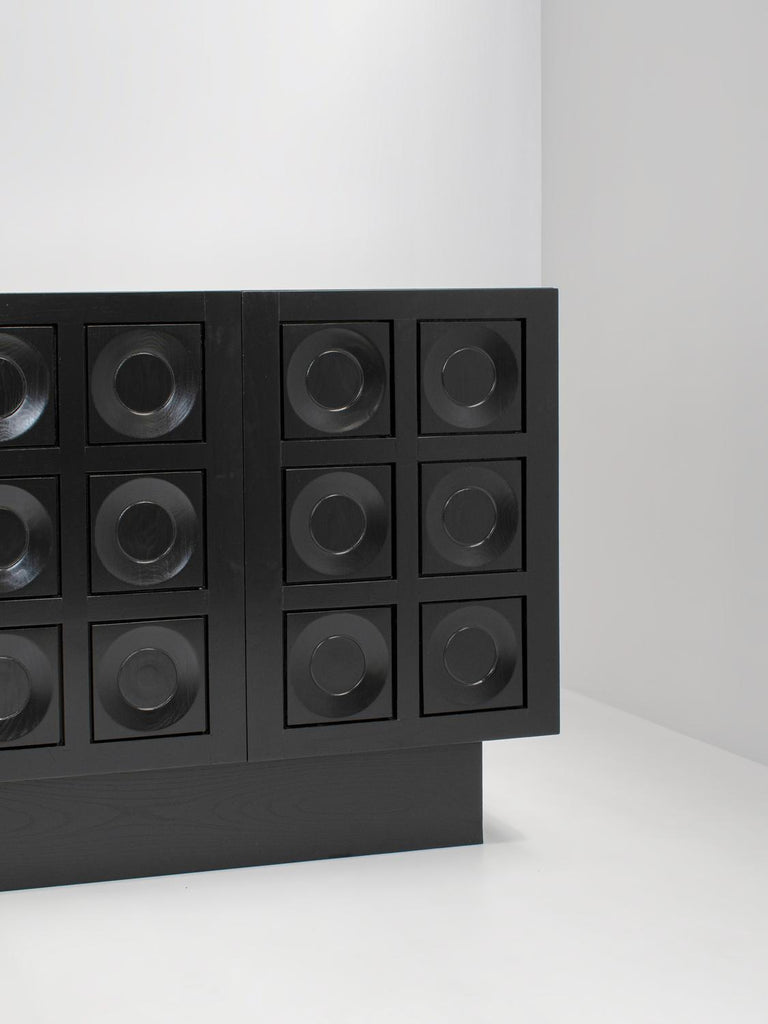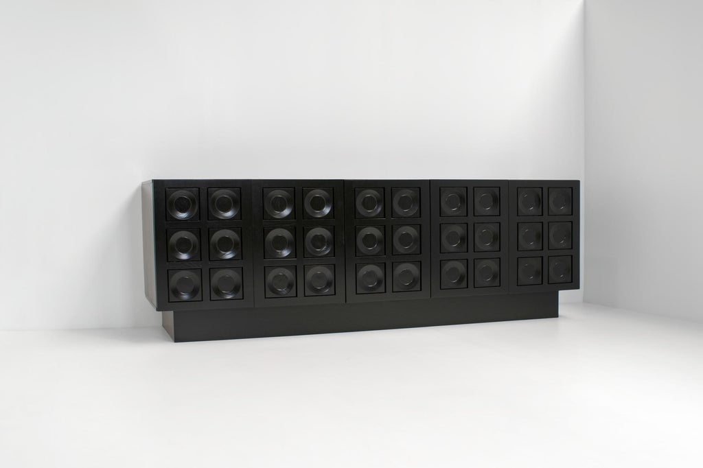 Large Black Brutalist Sideboard with Graphic Patterned Doors, Belgium 1970s