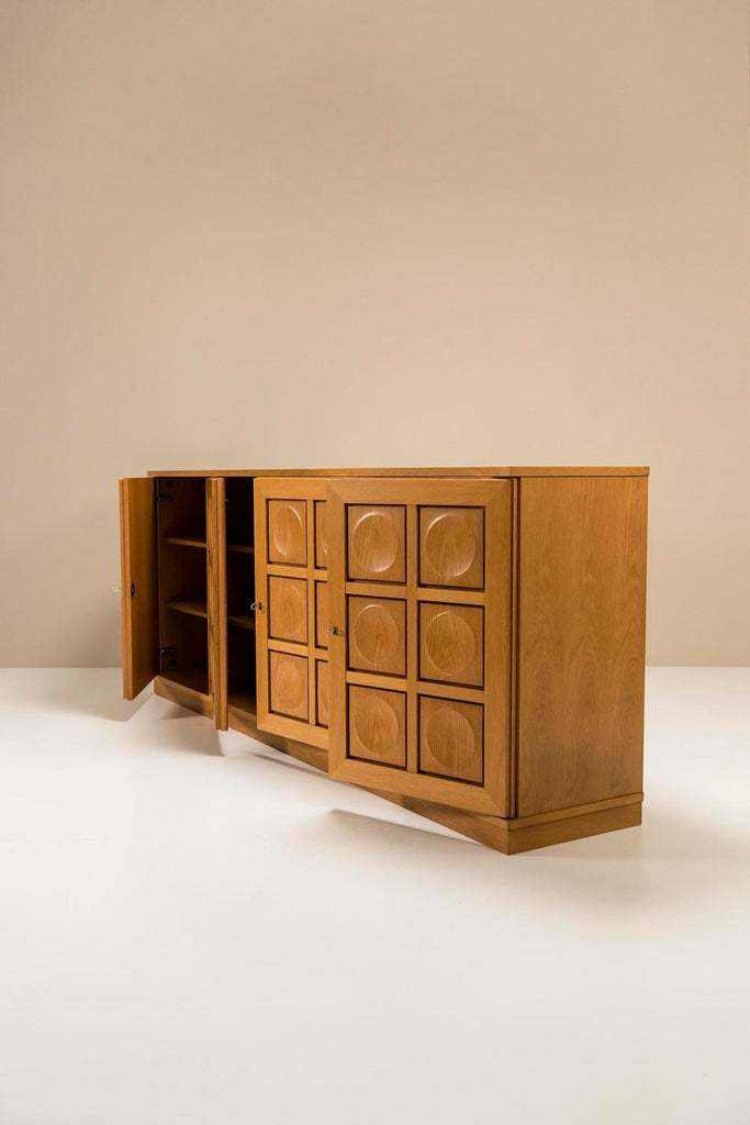 Large Brutalist Sideboard in Natural Oak by Gerhard Bartels, Belgium 1970s