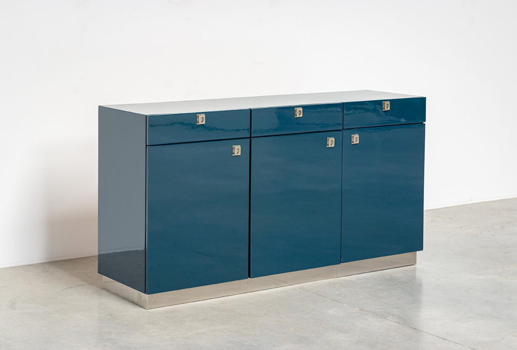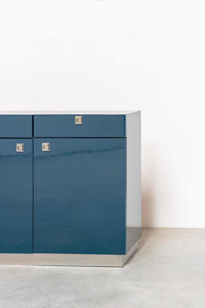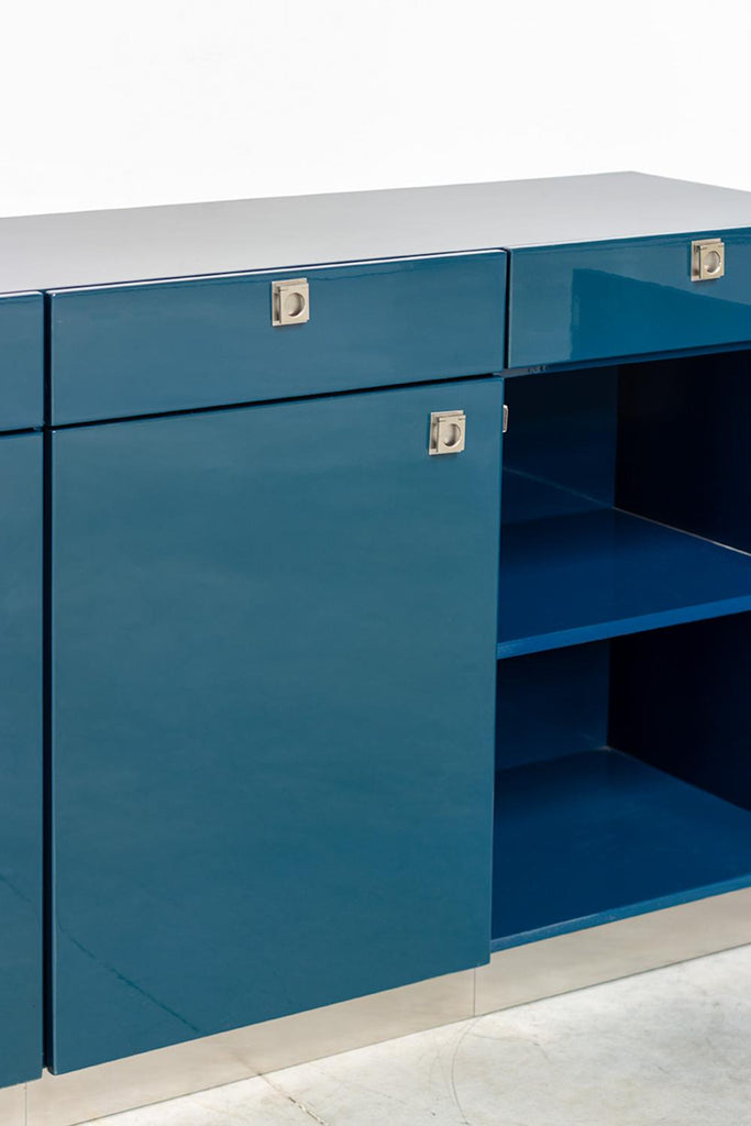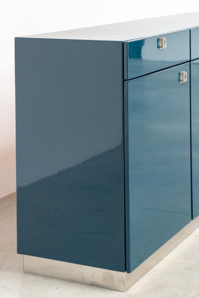 Modern high gloss blue lacquered wooden sideboard 1970 France