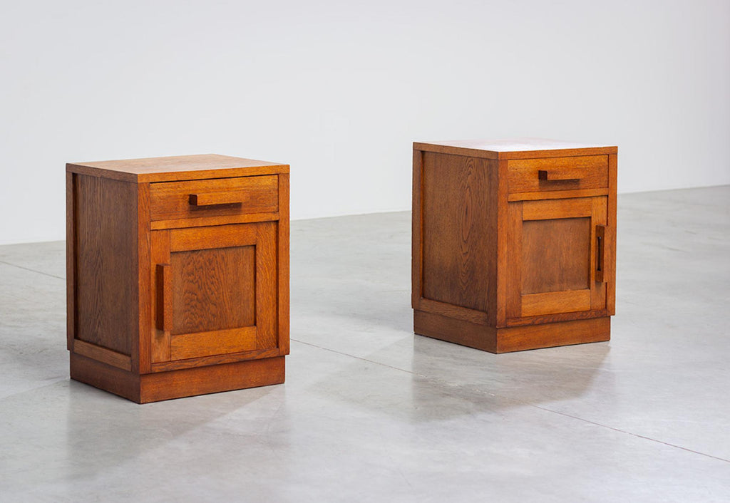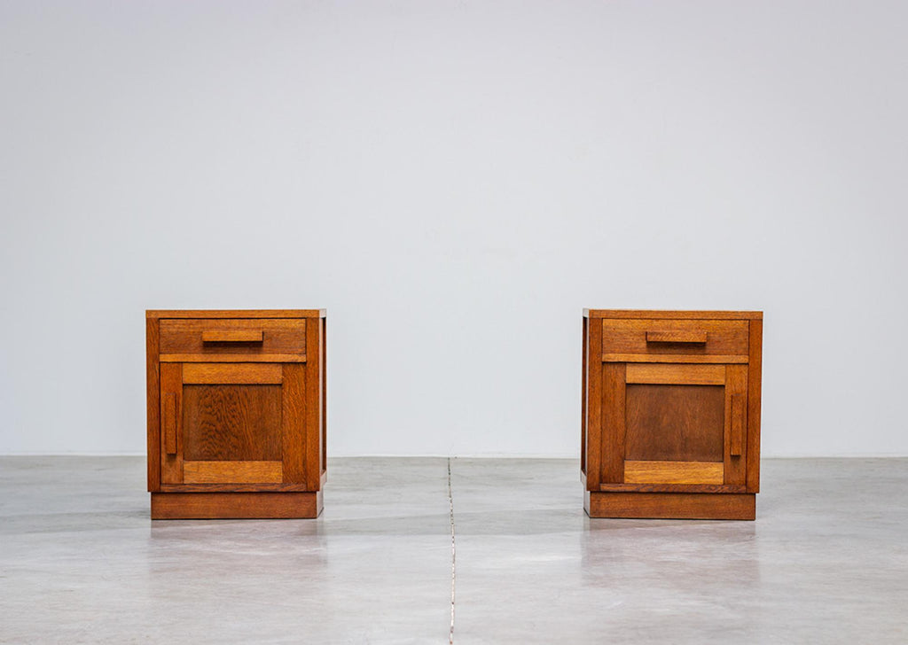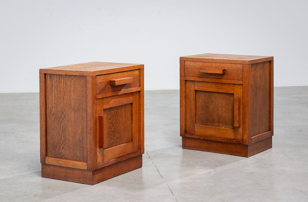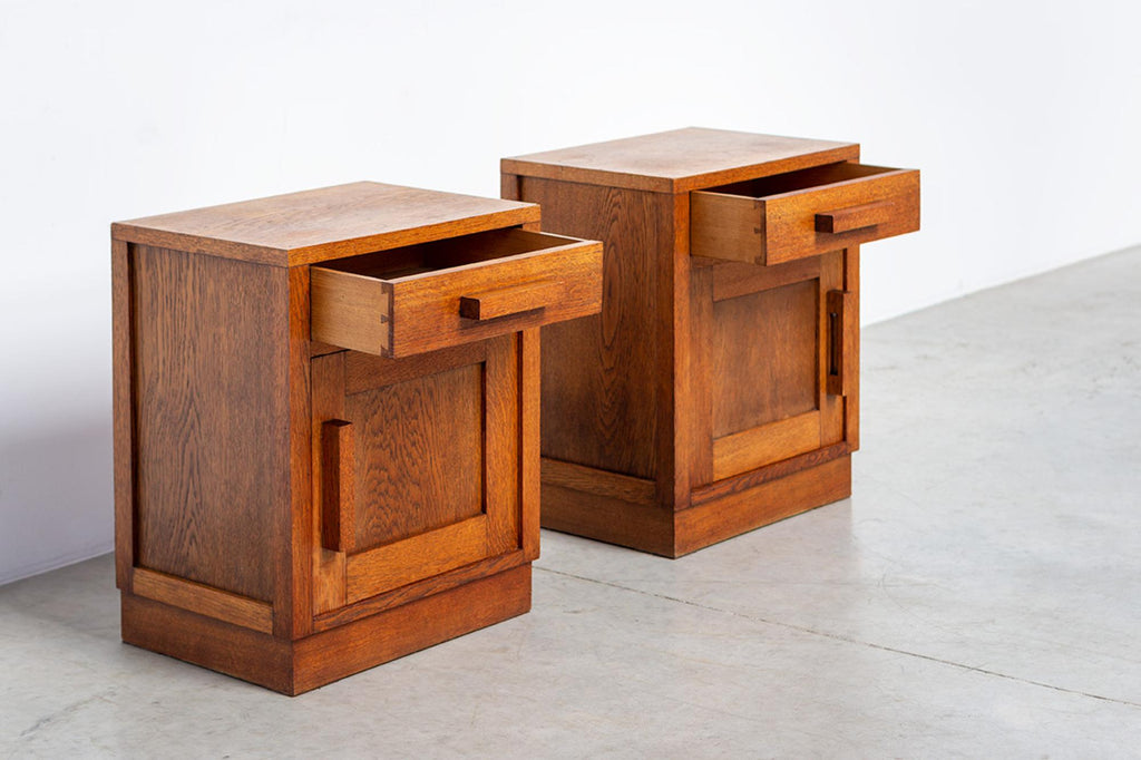 Modernist geometric Art Deco oak night stands 1920