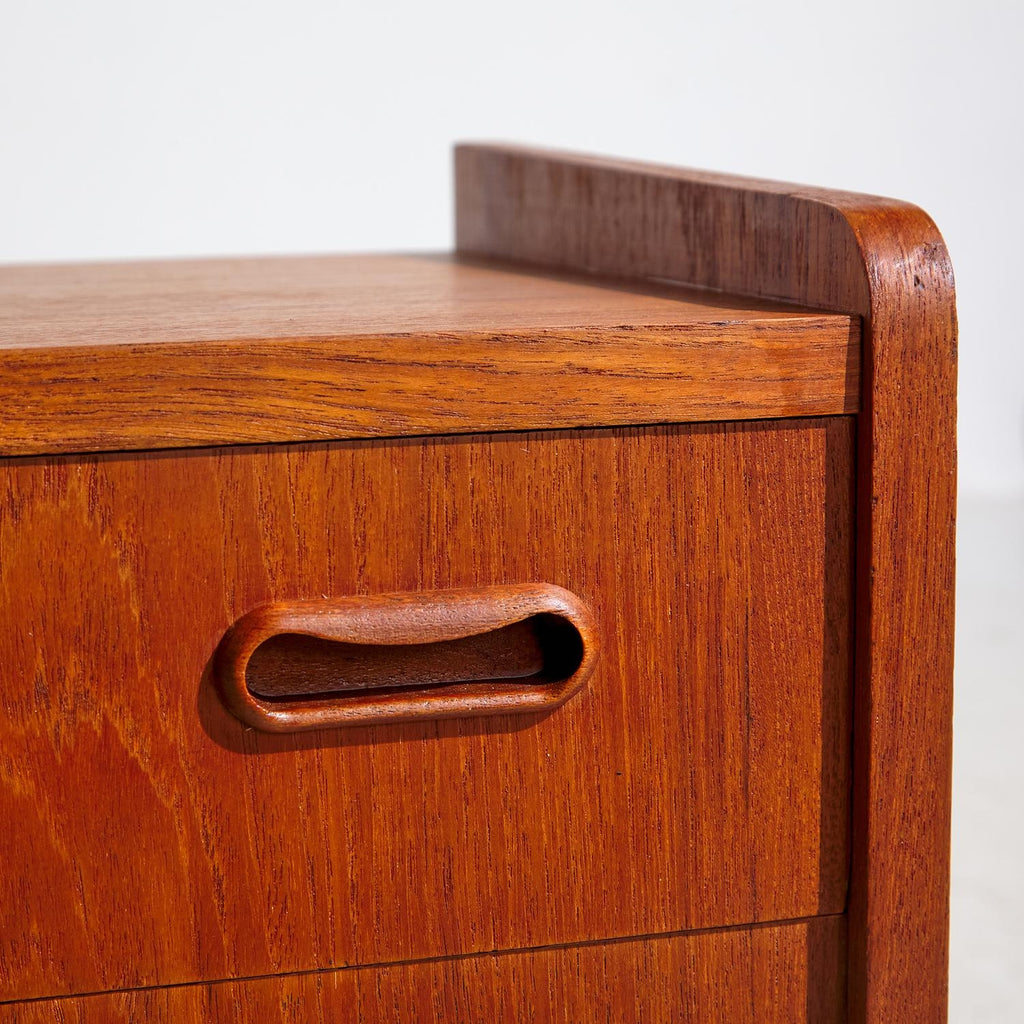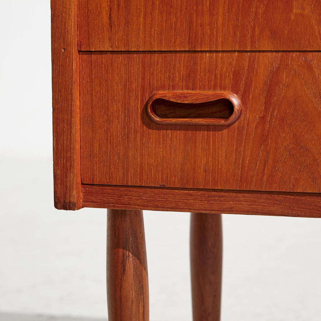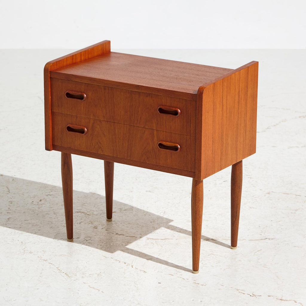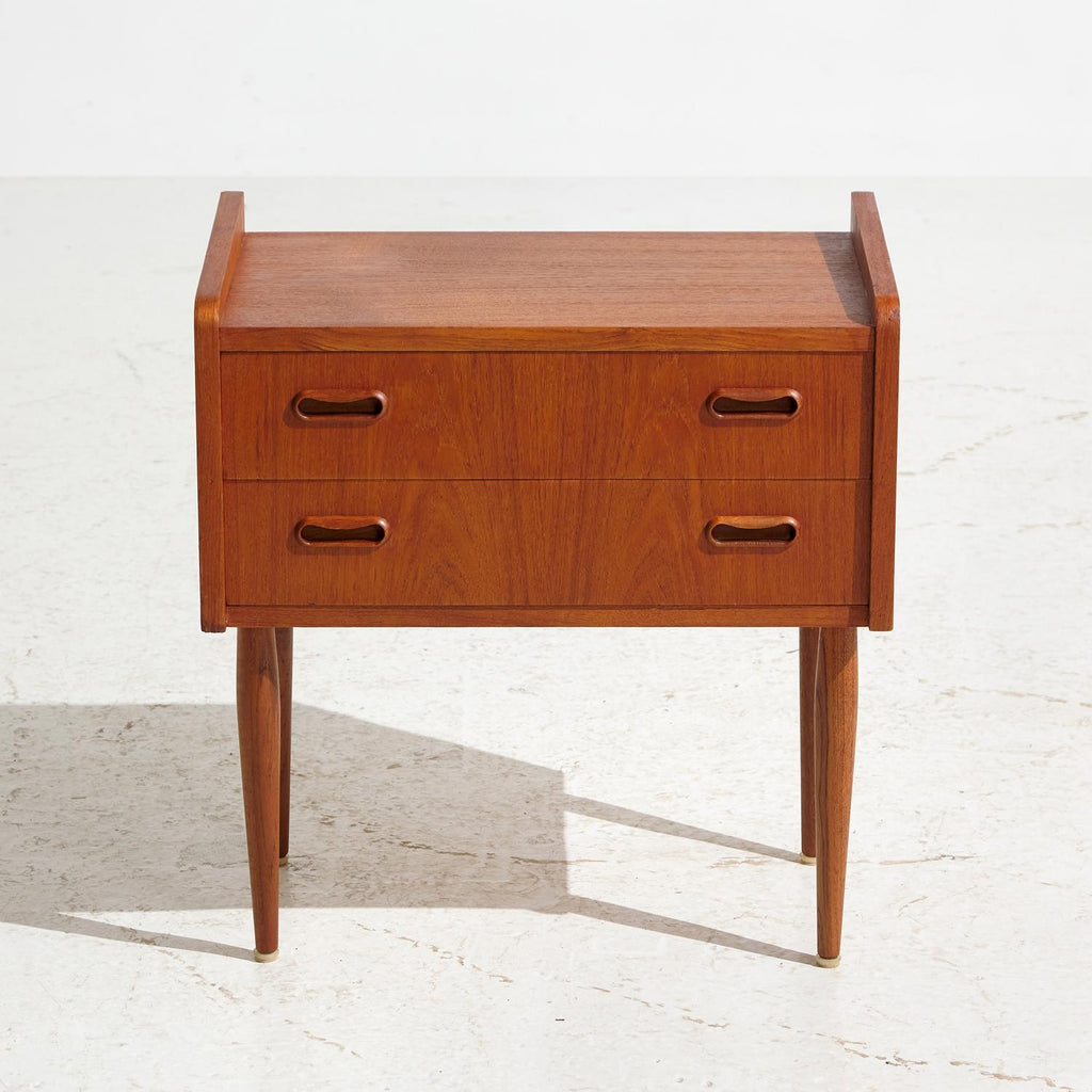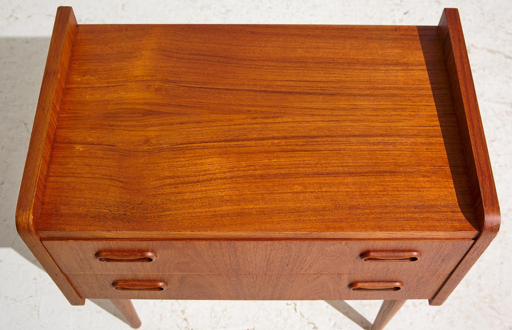 1960년대에 제작된 2단 서랍과 독특한 손잡이가 있는 더 작은 덴마크 서랍장입니다. 옷장의 나무 부분이 완전히 복원되었습니다.