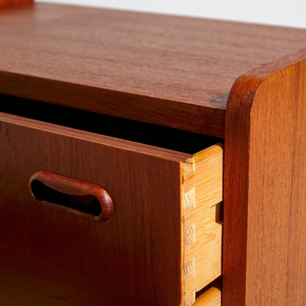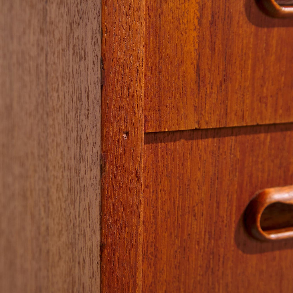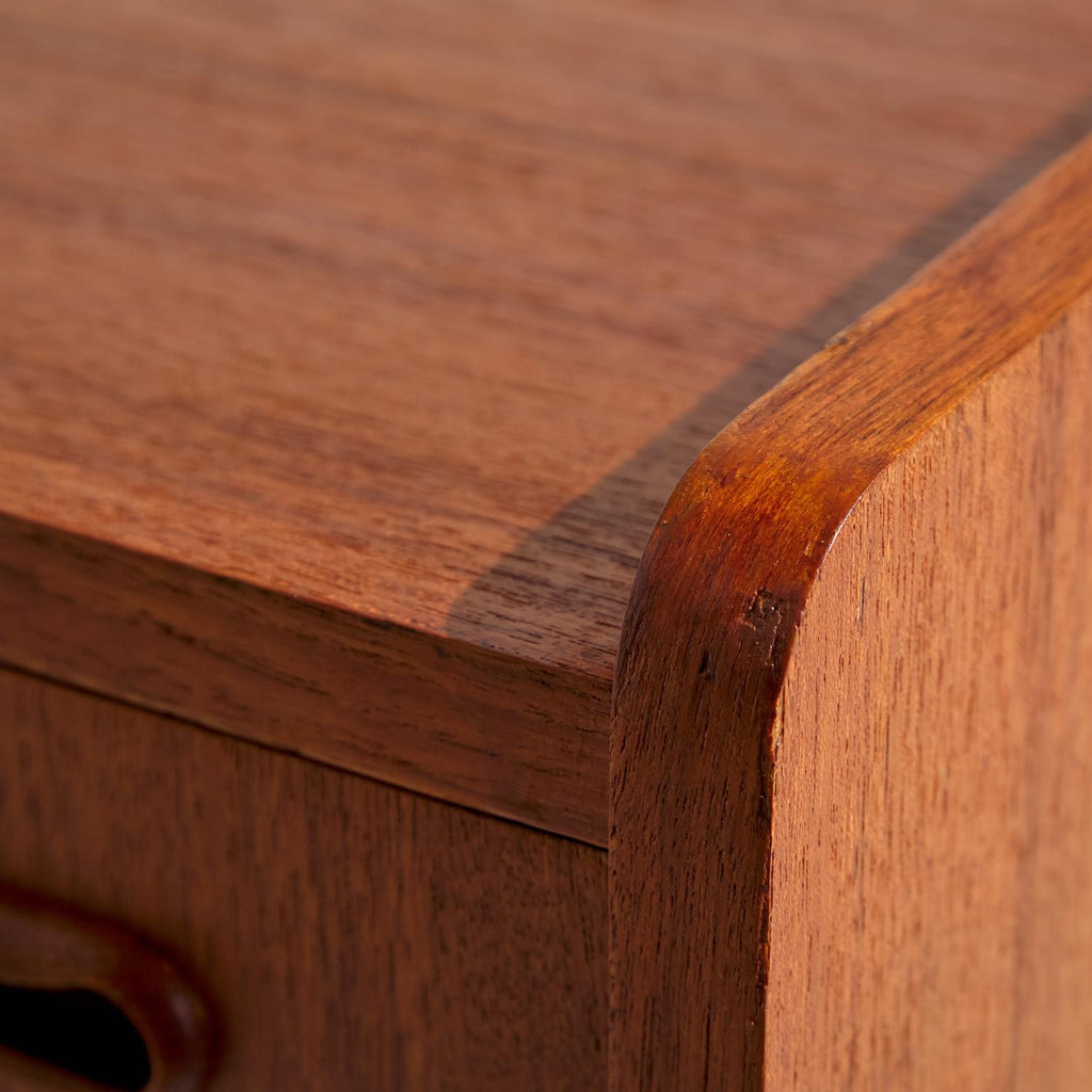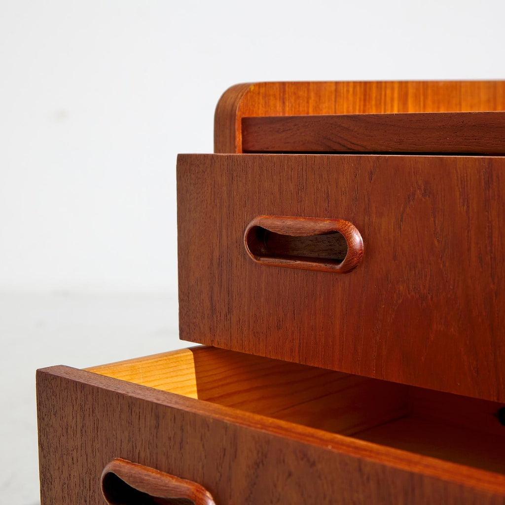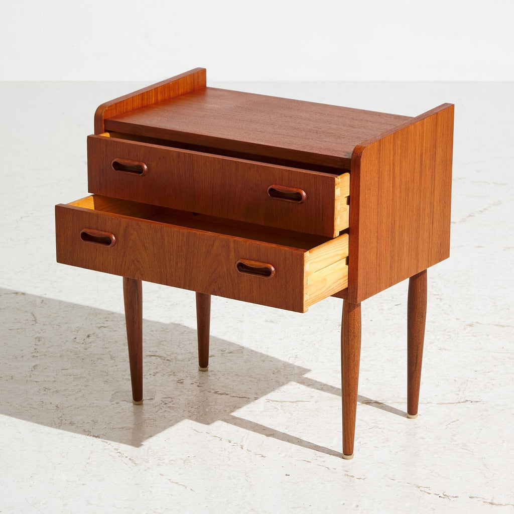 1960년대에 제작된 2단 서랍과 독특한 손잡이가 있는 더 작은 덴마크 서랍장입니다. 옷장의 나무 부분이 완전히 복원되었습니다.