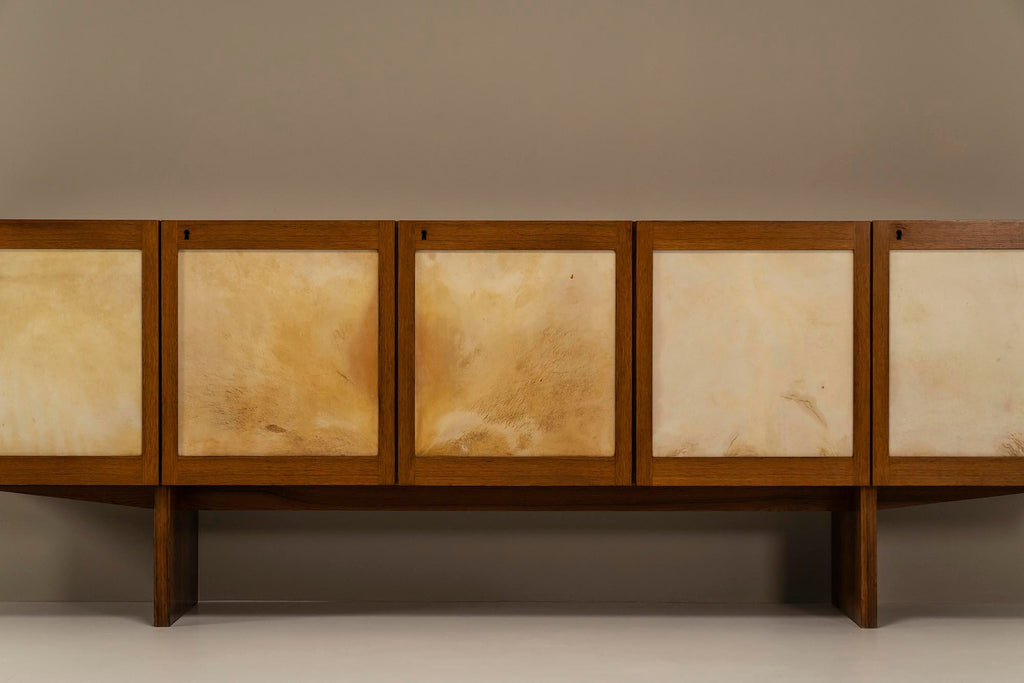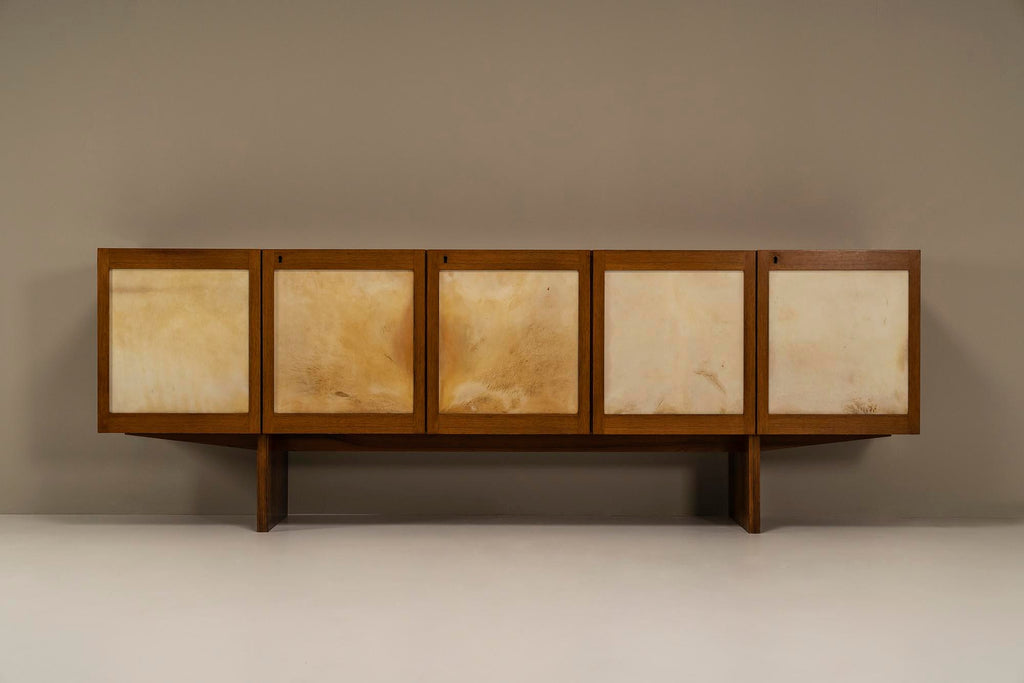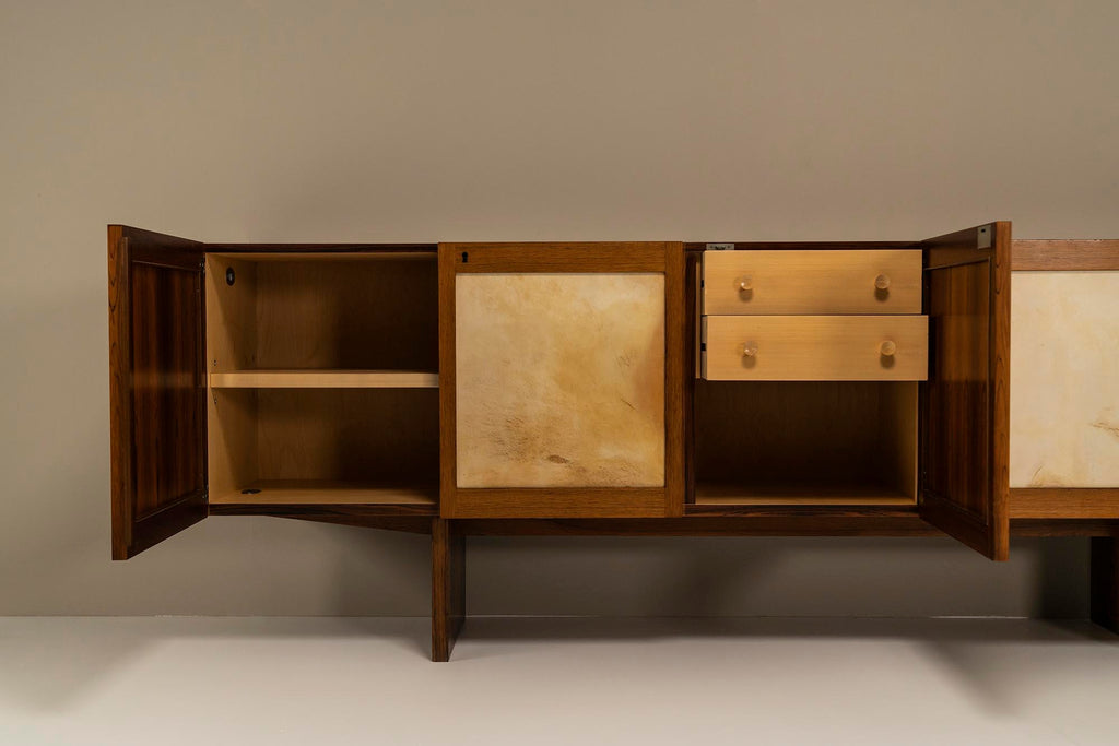 Sideboard Veneered in Rosewood and Goatskin Parchment, Italy 1950s