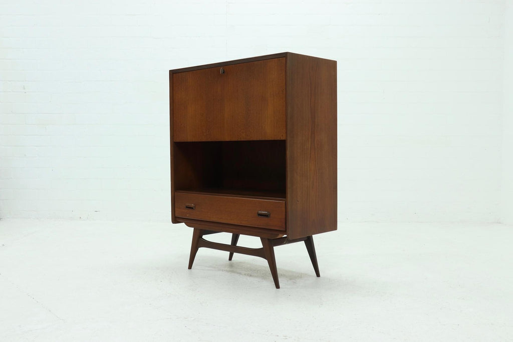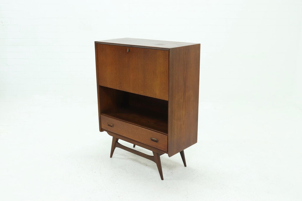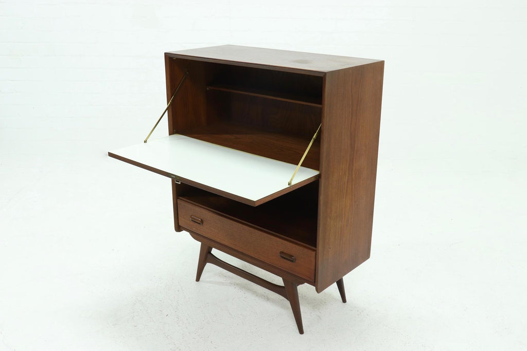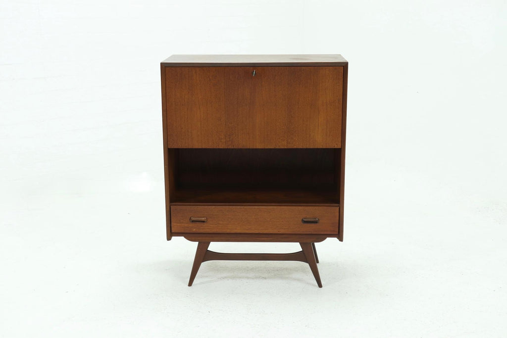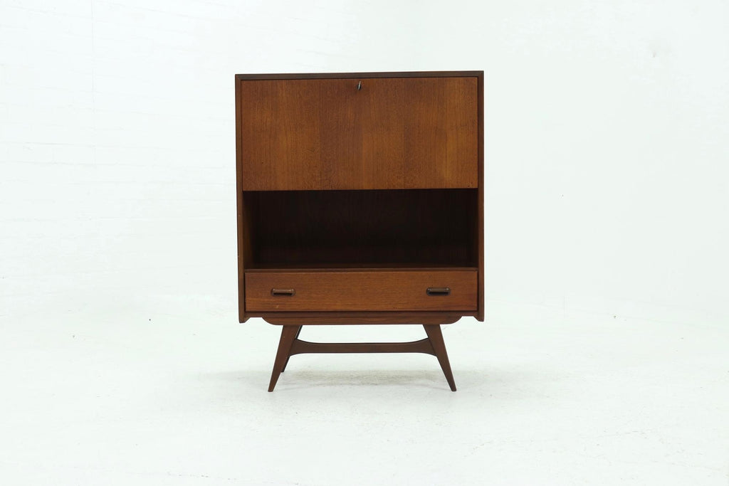 1950년대에 Louis van Teeffelen이 WeBe Holland를 위해 디자인한 티크 비서 캐비닛. 캐비닛에는 수납 공간과 서랍이 있는 드롭다운 책상이 있습니다. 디테일이 많이 들어간 아름다운 디자인의 원피스. 최상의 상태를 유지하고 있습니다.