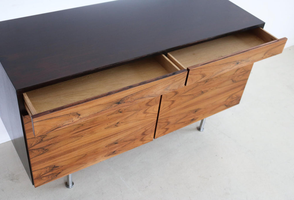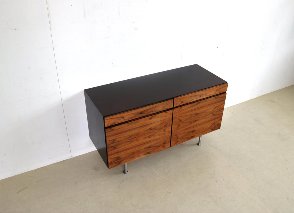 빈티지 찬장 | TV 캐비닛 | 드레서 | 1960년대 | 덴마크산 빈티지 사이드보드 2개. 2장 사용 가능하므로 긴 찬장으로도 놓을 수 있습니다. 새로운 브러시드 스틸 다리가 있는 로즈우드 버전. 기간 | 60년대 디자인 | 알 수 없음 | 덴마크 상태 | 좋은 | 사용 크기의 가벼운 표시 | 70 x 120 x 48(hxwxd) 상세 정보 | 자단; 강철; 기사 번호 | 1628