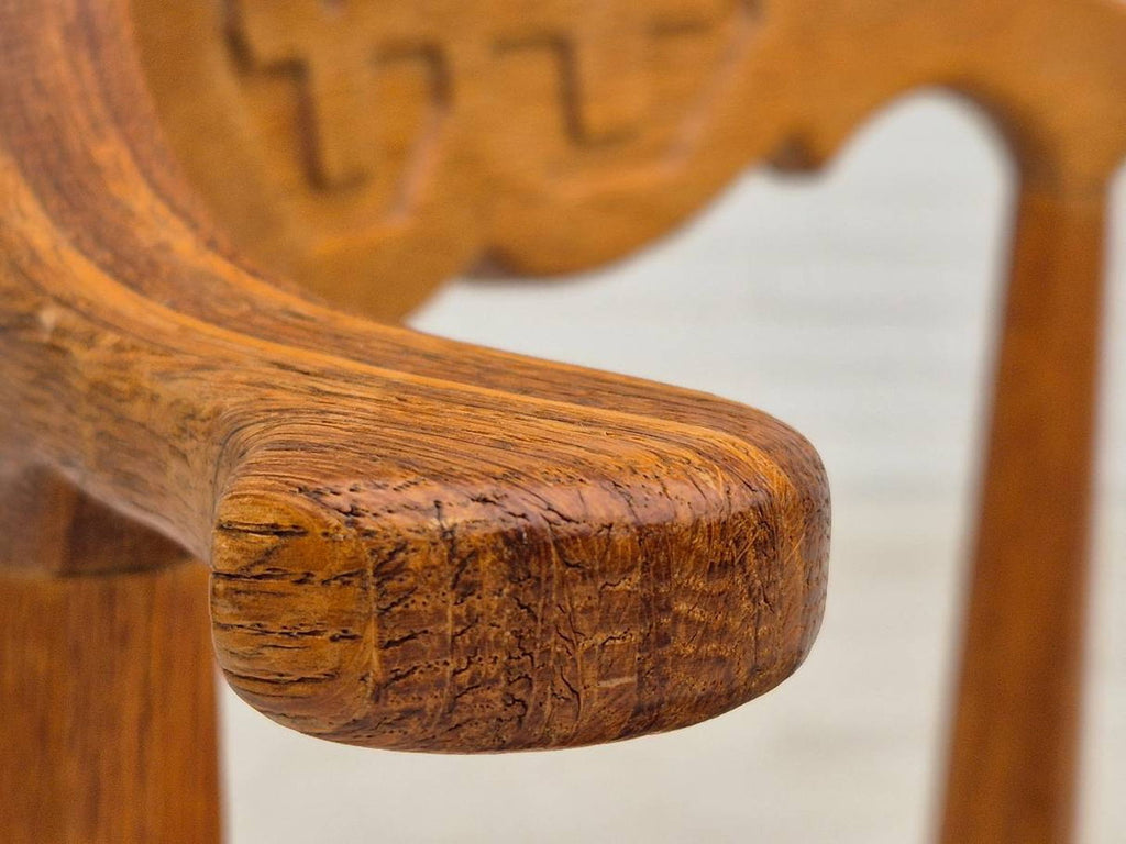 1970년대, EG Kvalitetsmøbel을 위해 Henning Kjærnulf가 디자인한 덴마크 디자인. 원래 상태가 매우 좋은 식탁 의자 4개 세트: 냄새도 얼룩도 없고 안정적인 구조입니다. 단단한 참나무, 가구 양모 직물. 1970년경 덴마크 가구 제조사 EG Kvalitetsmøbel이 제조했습니다.
