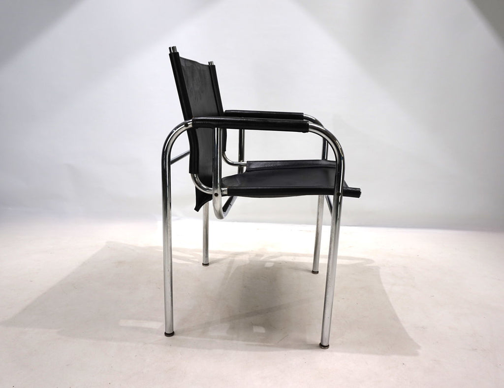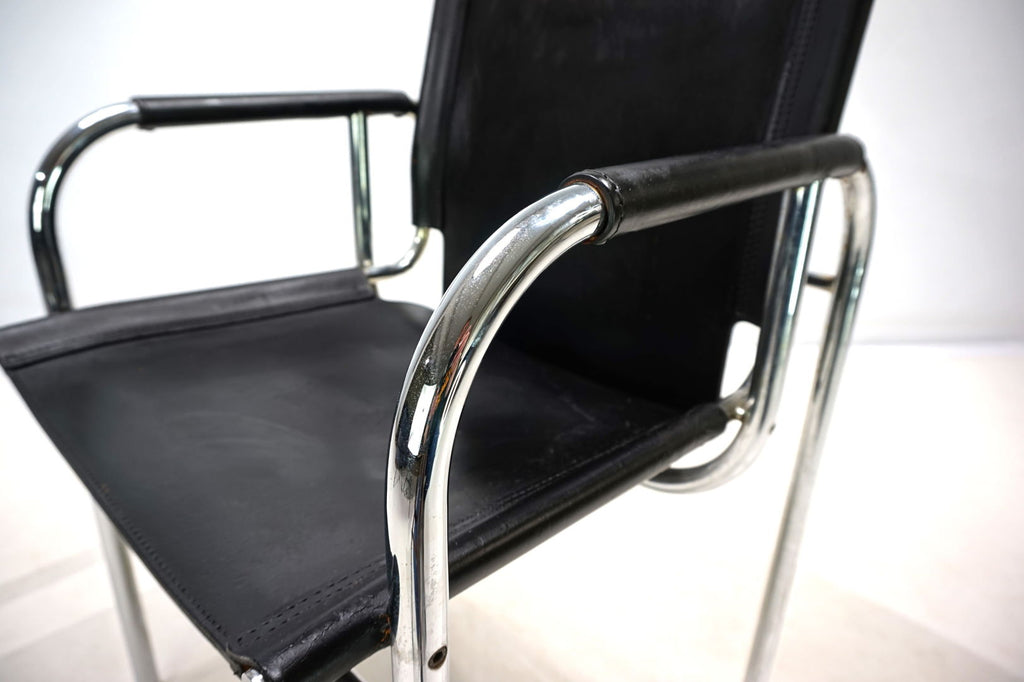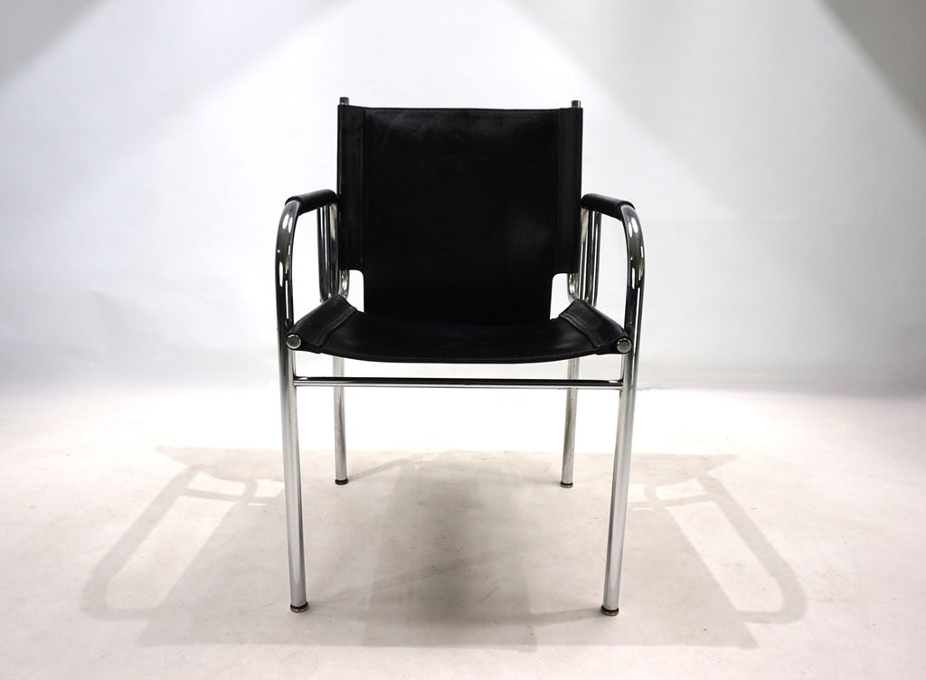 1960년대 Strässle HE 가죽 라운지 의자는 상태가 양호하지만 녹청이 눈에 띕니다. 짙은 검정색 가죽톤의 라운지 체어 가죽은 곳곳이 거칠어져 있고 등받이 가죽에 크래클루어가 있습니다. 크롬 프레임의 상태는 매우 양호합니다. 의자는 사무실 의자나 식당 의자로 사용할 수 있습니다. 스위스 제조업체인 Strässle는 1965년부터 최고 수준의 장인정신과 시대를 초월한 디자인으로 고급 가구를 생산해 왔습니다. Strässle은 가구에 최고의 가죽을 사용하고 최고 수준의 장인정신으로 제품을 생산하는 것으로 유명합니다. HE는 1960년대 스위스 디자이너 Hans Eichenberger가 디자인한 클래식 모델입니다.