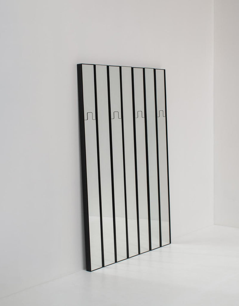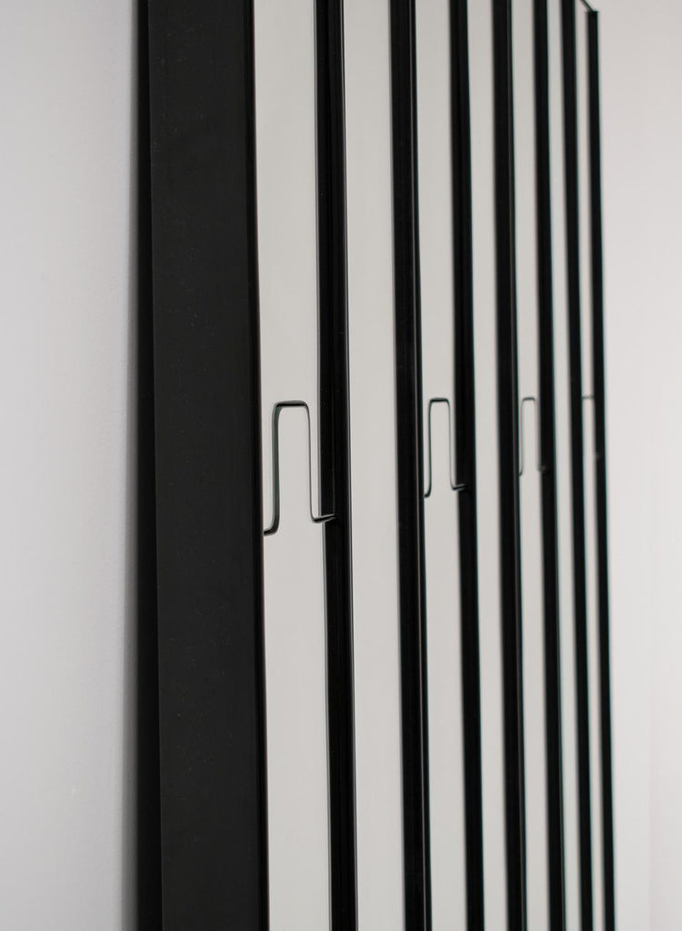 옷걸이가 통합된 모듈식 벽거울 모델 '그론다'. 1970년대 초 Luciano Bertoncini가 디자인하고 회사가 Joe Colombo의 예술적 감독을 받던 기간 동안 이탈리아 제조업체 Elco가 생산했습니다. 거울은 별도로 또는 함께 걸 수 있는 7개의 개별 요소로 구성됩니다. 거울의 윗부분을 뒤로 밀면 옷걸이가 됩니다. 모던하고 미니멀한 형태로 어느 각도에서 보아도 빛나는 아름다운 조형물. 우수한 상태를 유지하고 있습니다. 모듈당 치수는 높이 200cm - 너비 20cm - 깊이 6cm입니다.
