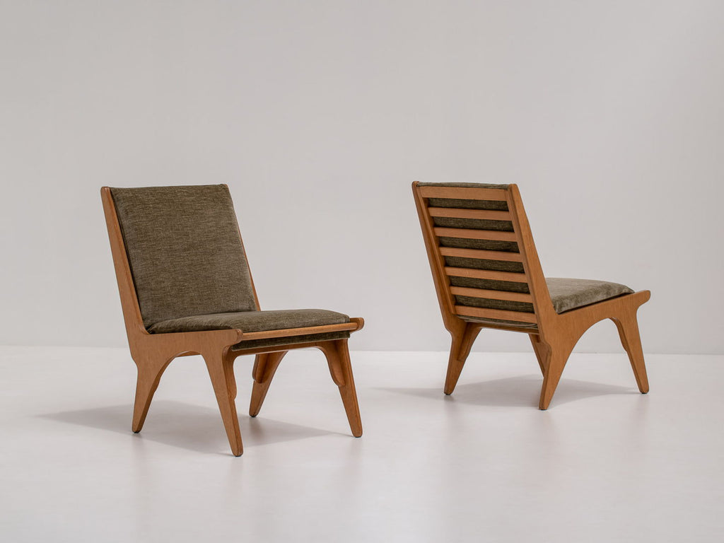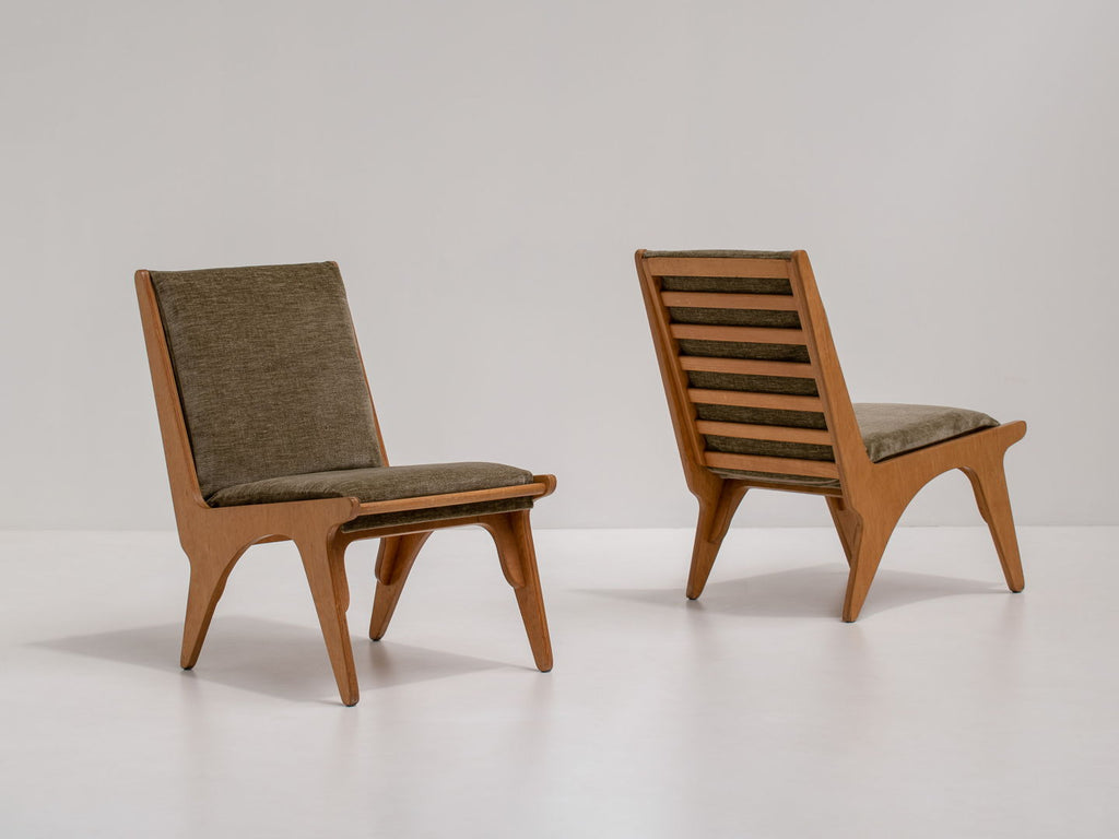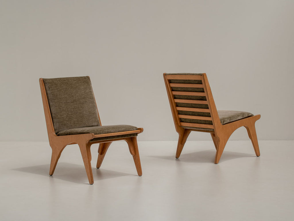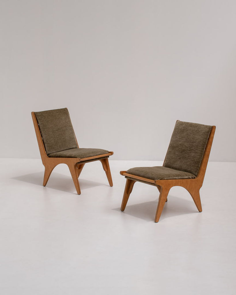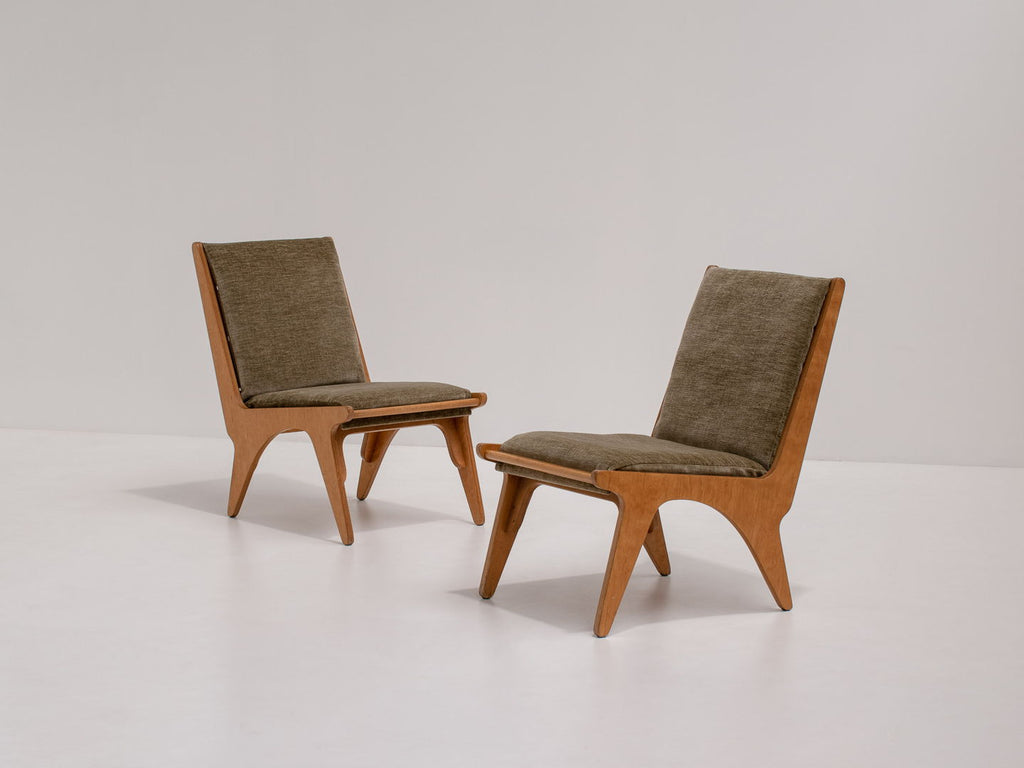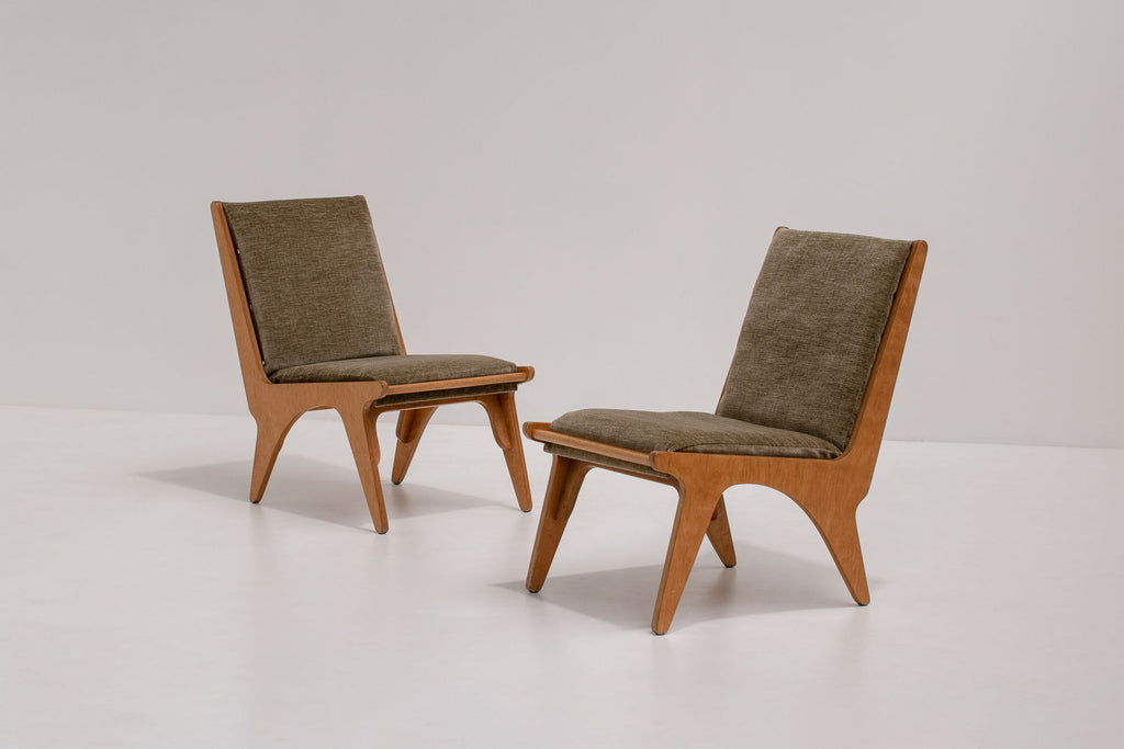 It's rare to find a pair of these Dutch modernist plywood chairs that were produced in the early 1950s.
