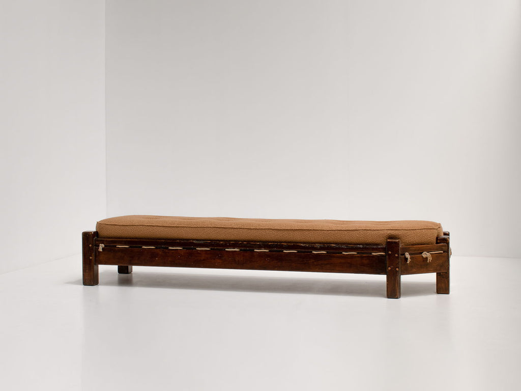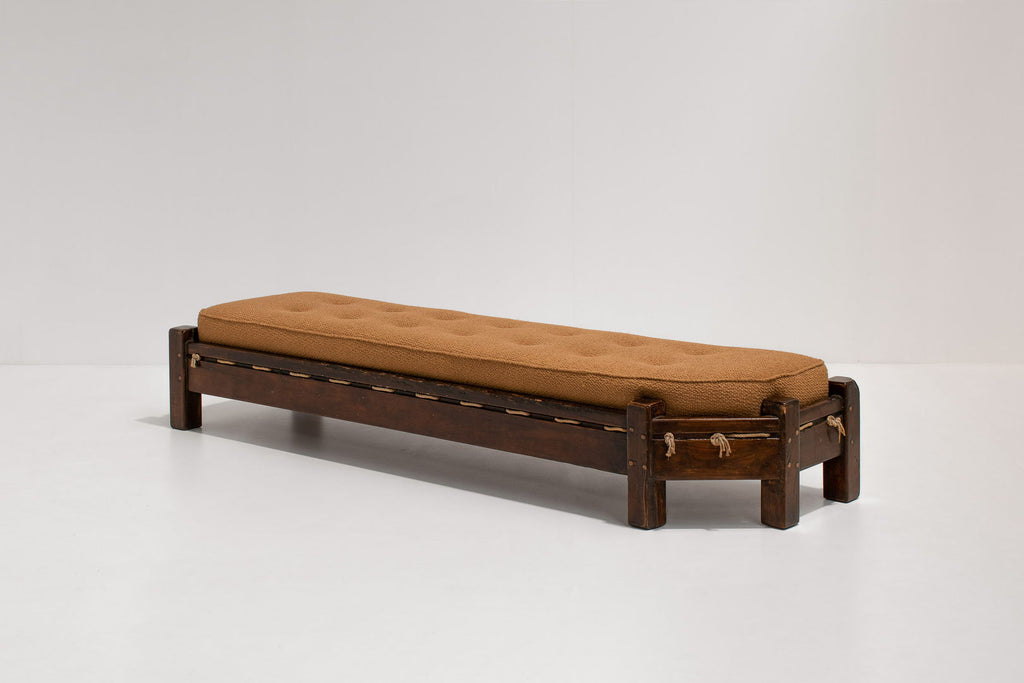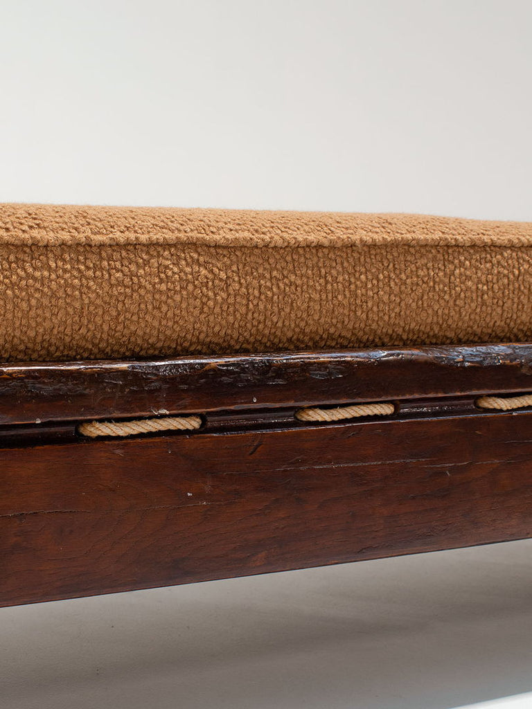 Sophisticated daybed with a solid wooden frame and structure in rope, 1960s, Mid-century, Wabi Sabi style.