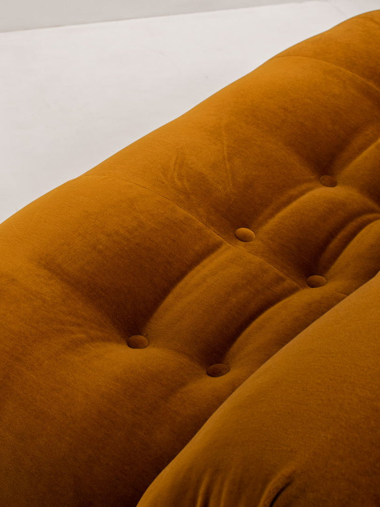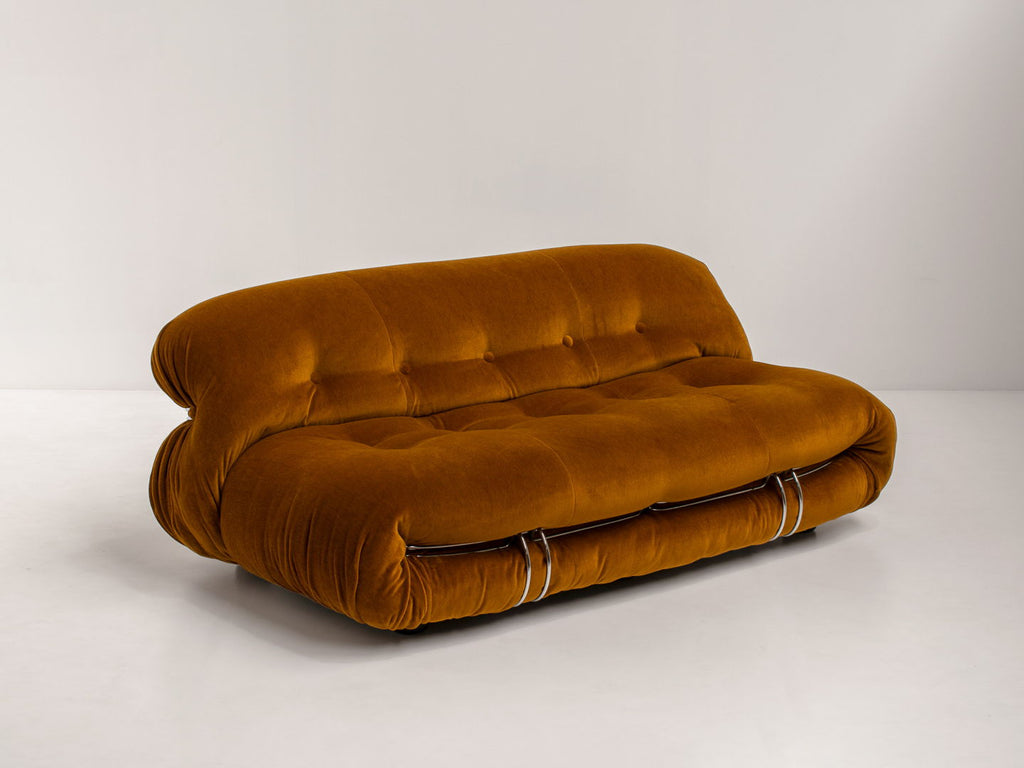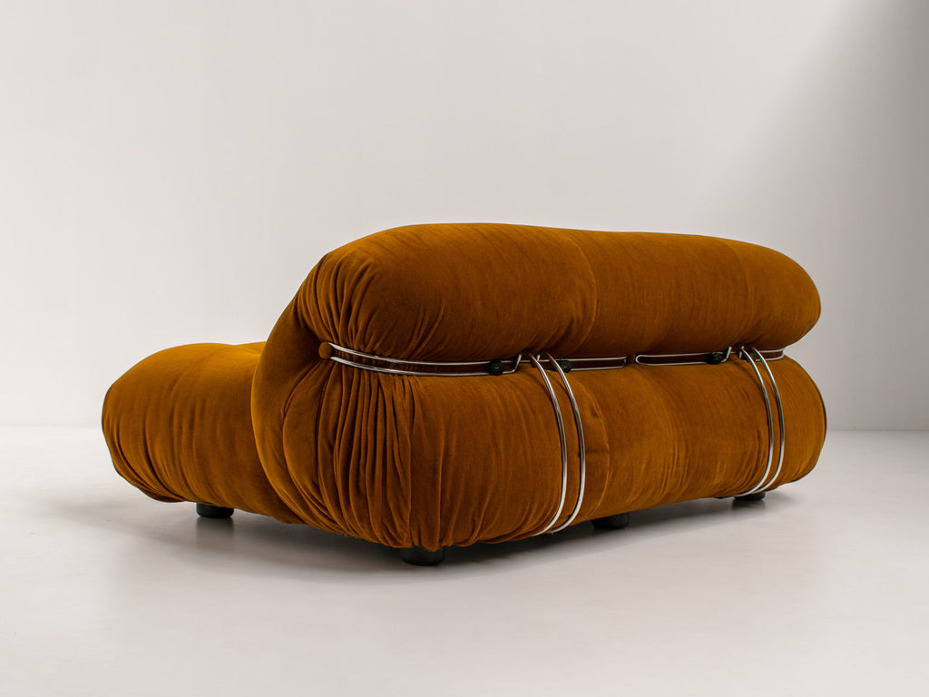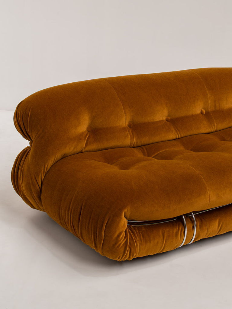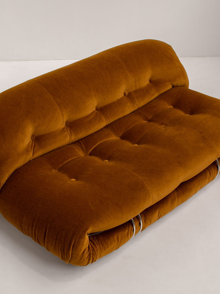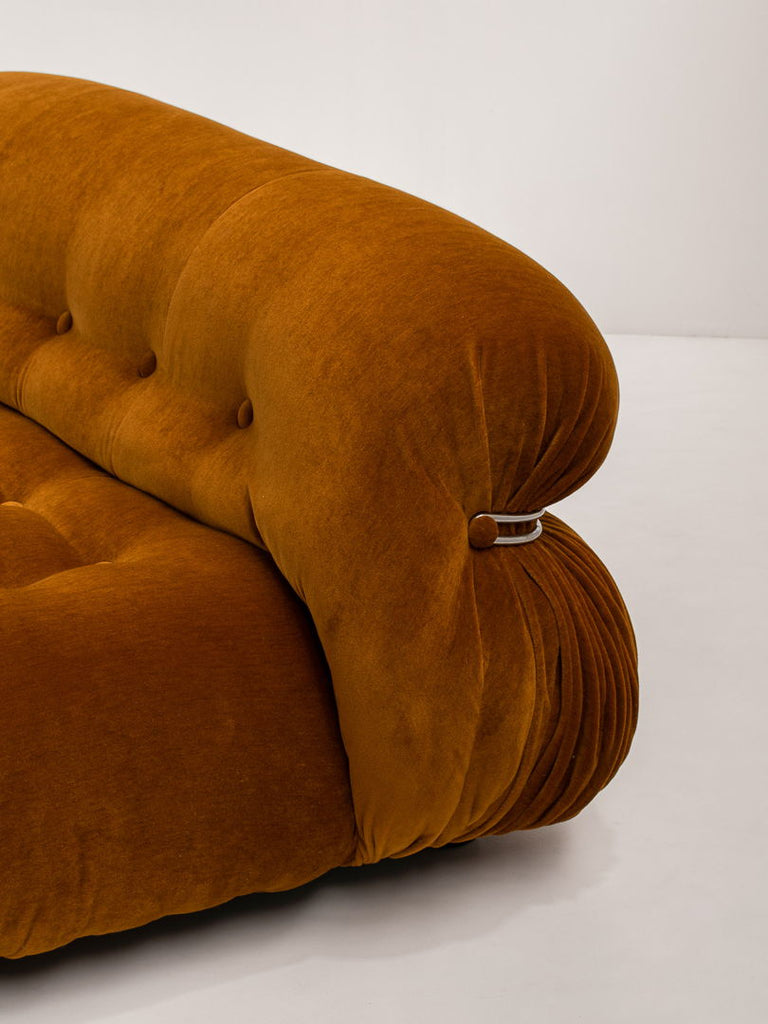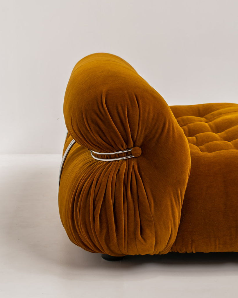 'Soriana' Sofa by Afra & Tobia Scarpa in Ochre Mohair Velvet Fabric, 1970s