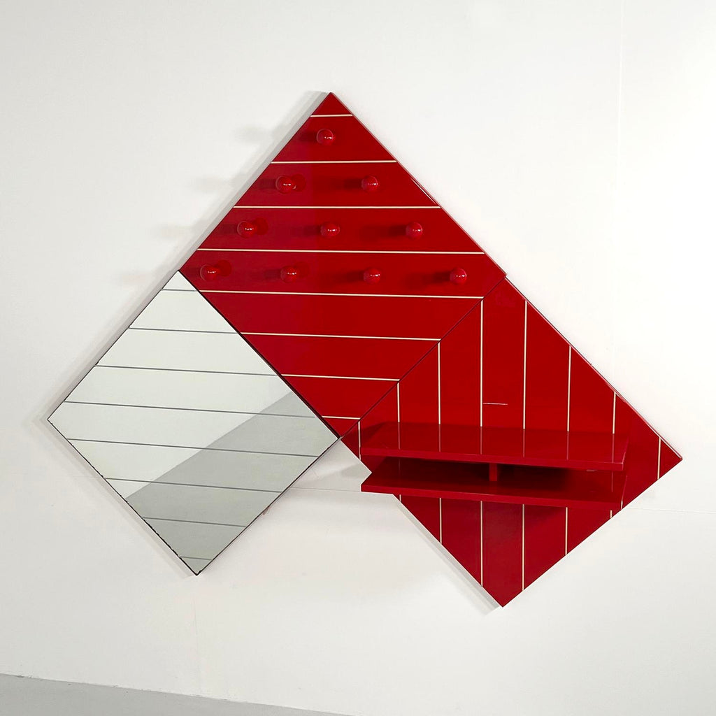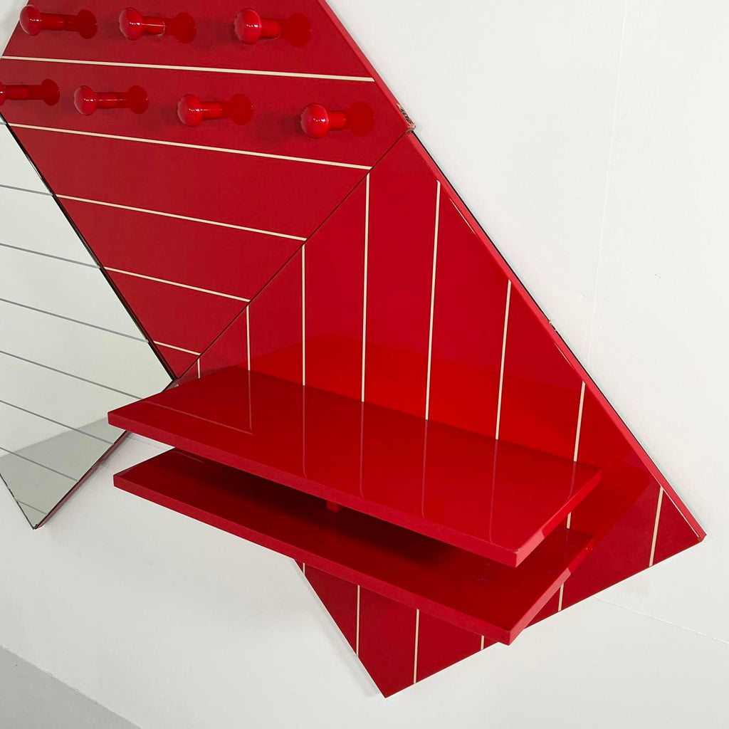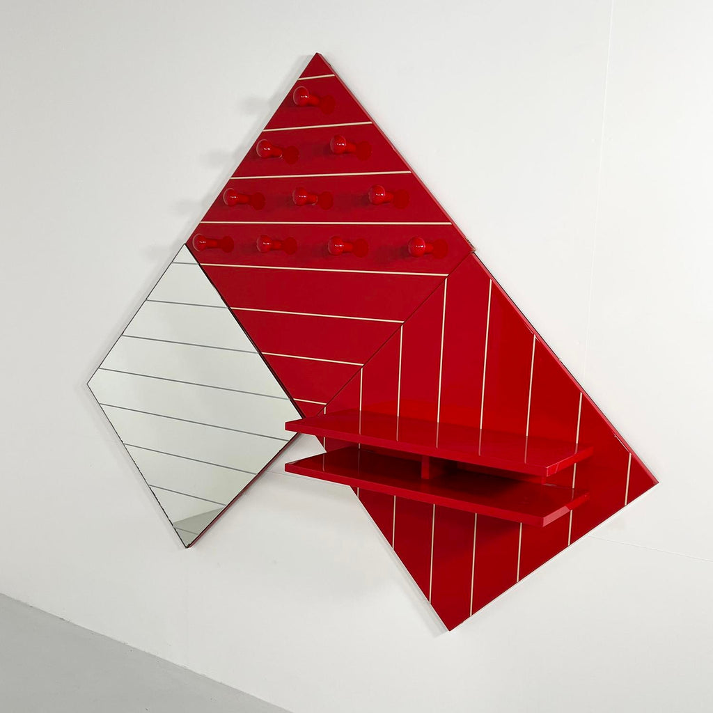 Modular Postmodern Wall Mirror, Shelf & Coat Rack, 1980s