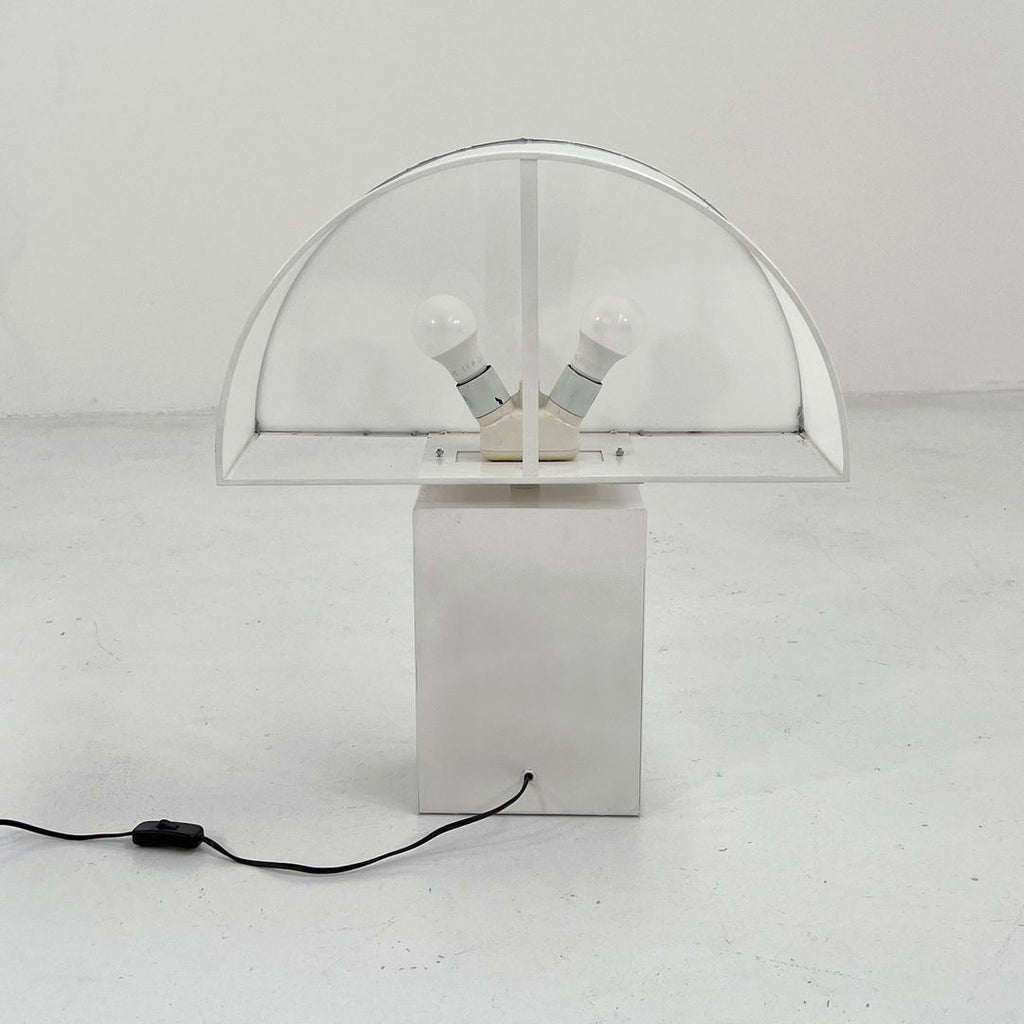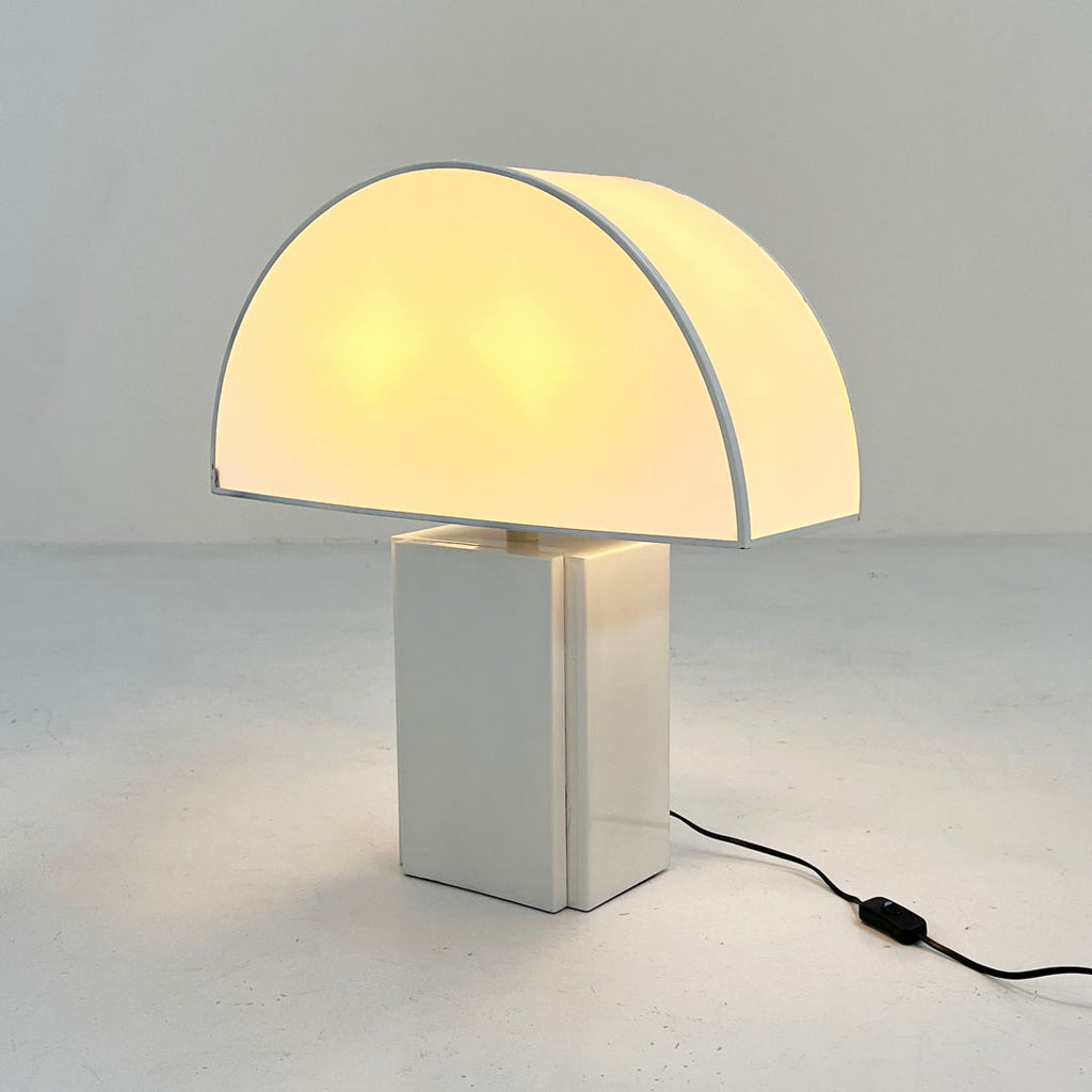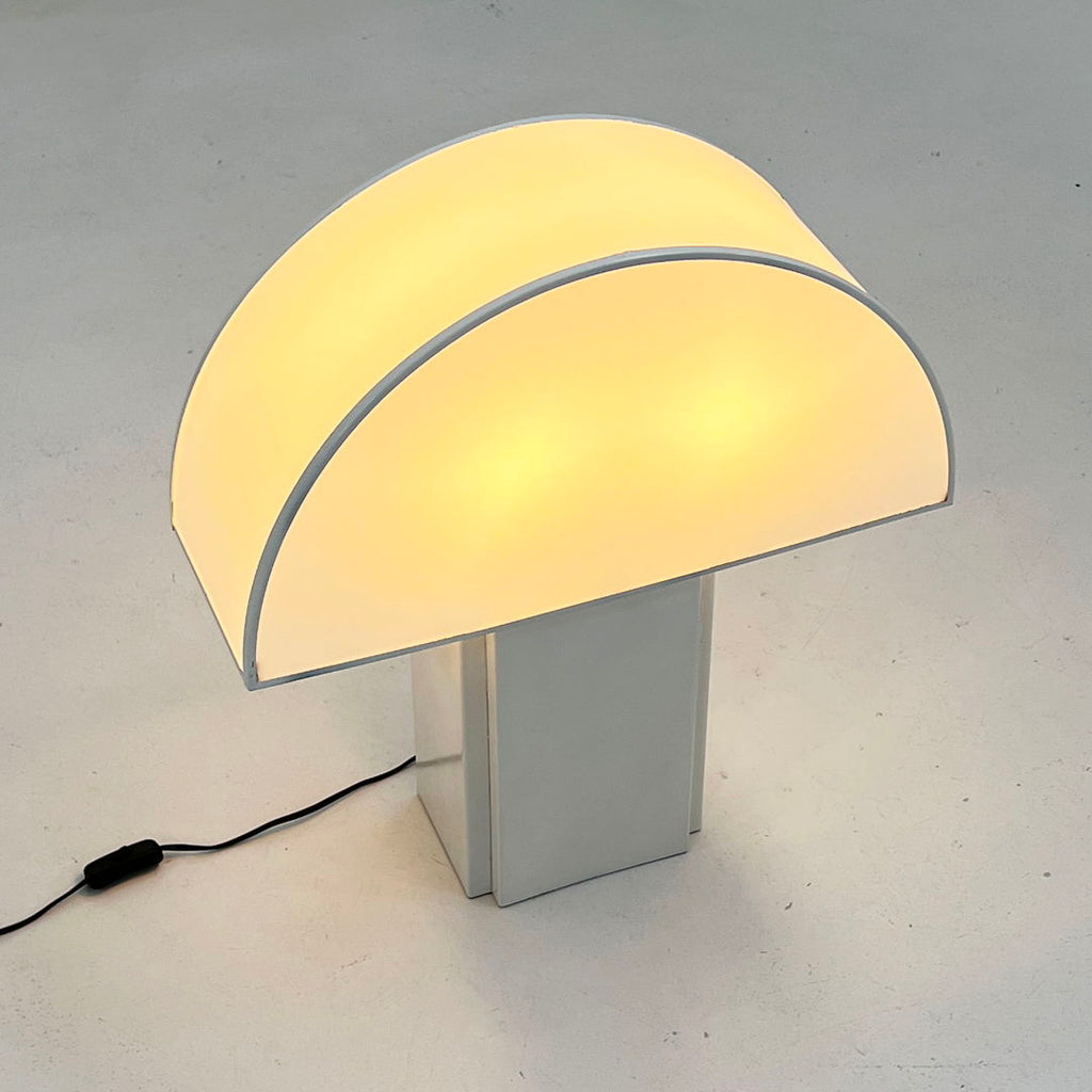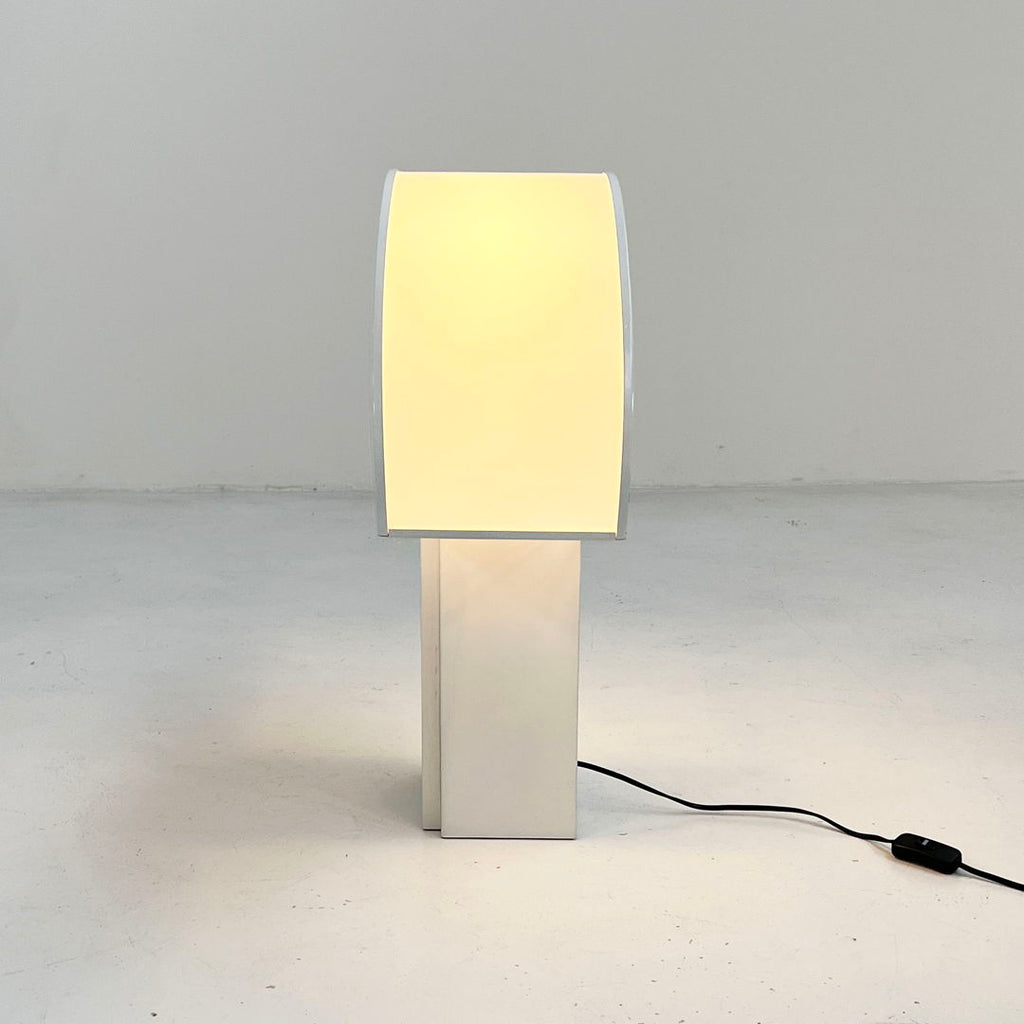 디자이너 - Harvey Guzzini 모델 - Olympe 테이블 램프 디자인 기간 - 70년대 치수 - 폭 55cm x 깊이 20cm x 높이 60cm 소재 - 금속, 플라스틱 색상 - 흰색 연령과 용도에 따라 가벼운 착용. 금속에 약간의 긁힌 자국이 있습니다.