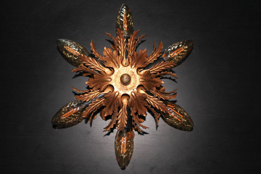 Banci Firenze Gilded Flush Mount Italian Wall Lamp, 1960s