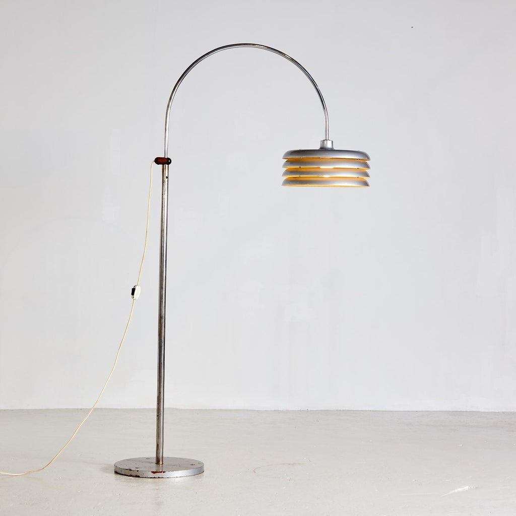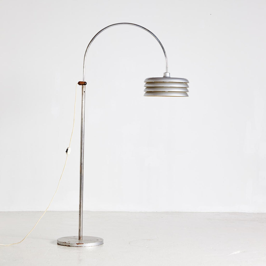 Tamás Borsfay의 은색 플로어 램프, 멋진 라멜라와 다리의 표면 흠집이 있습니다. MK6617