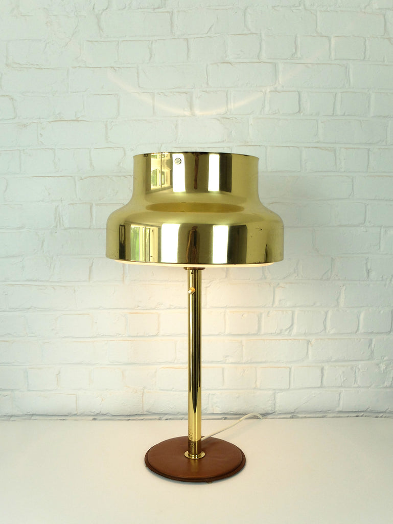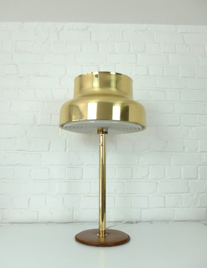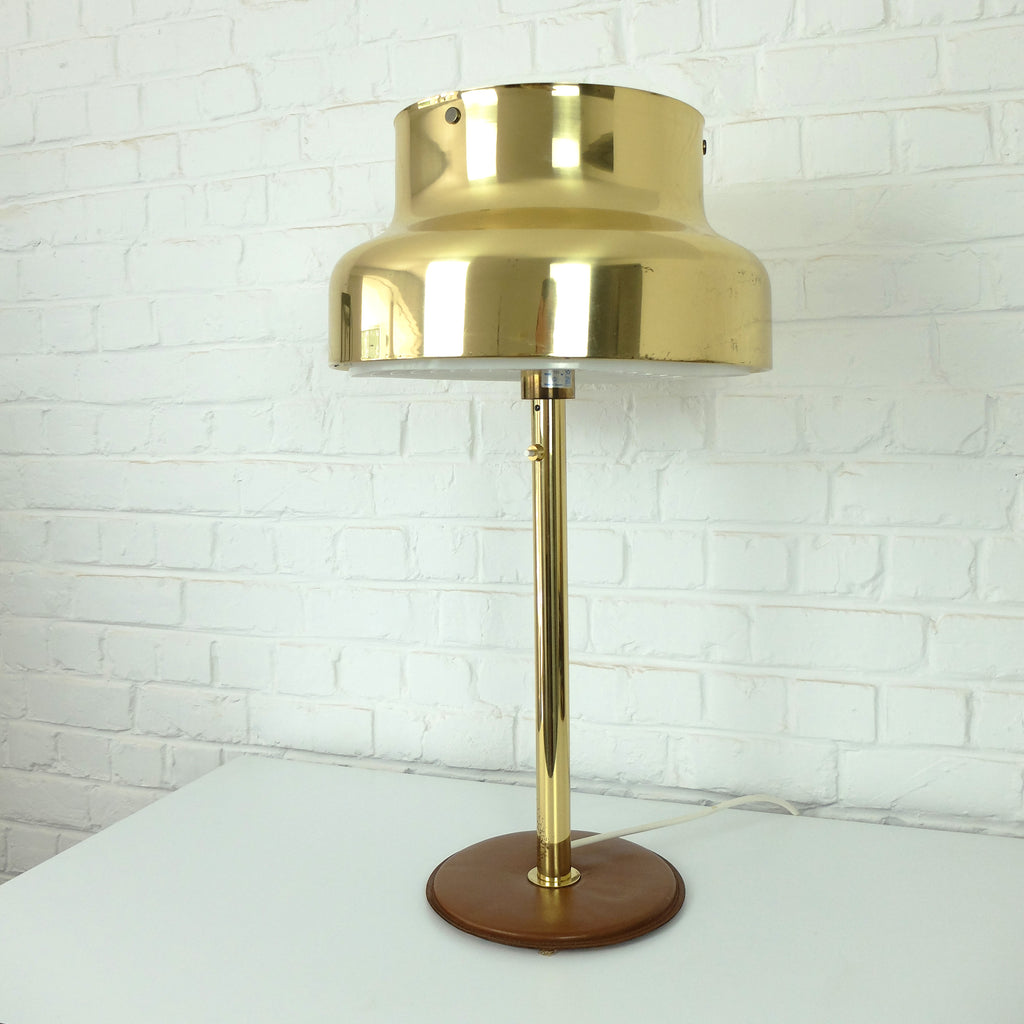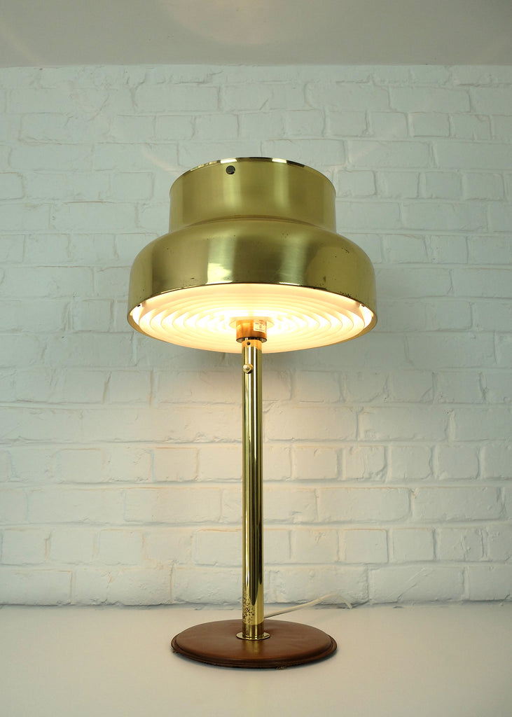 가죽으로 덮인 베이스가 있는 Bumling 테이블 램프의 희귀 버전입니다.