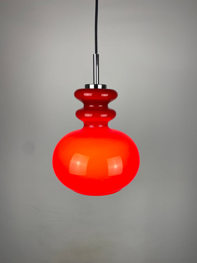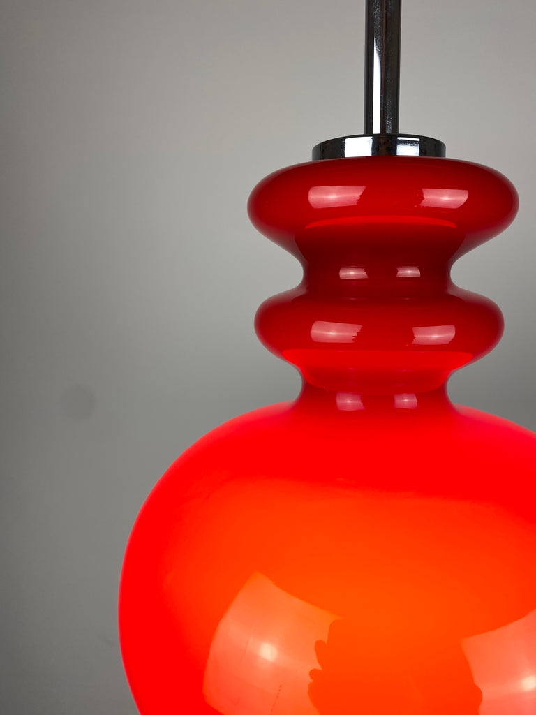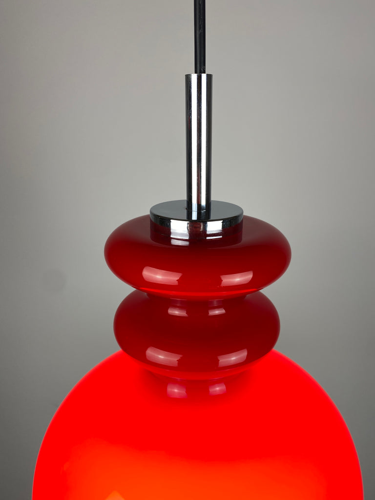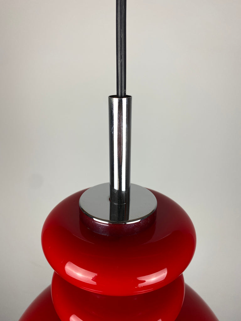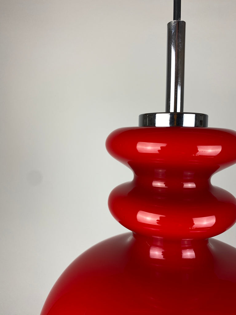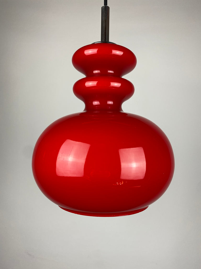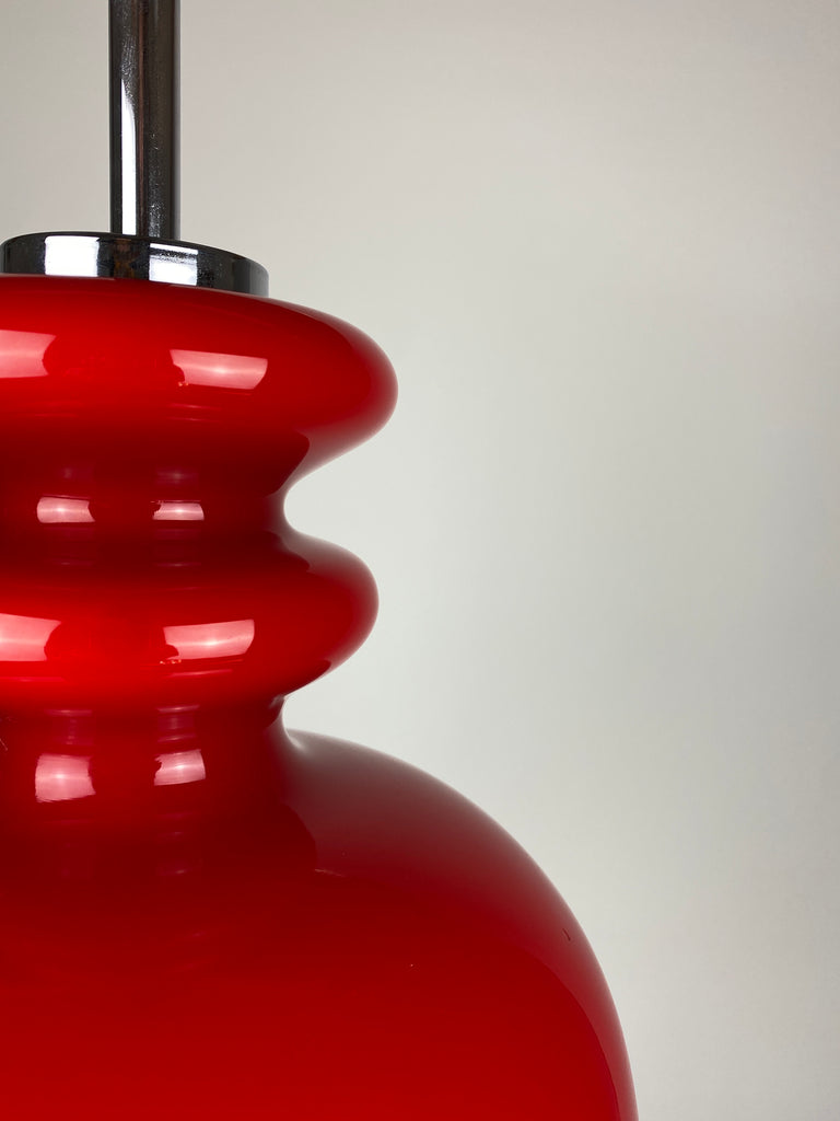 Cherry Red glass pendant light by Peill and Putzler 1960