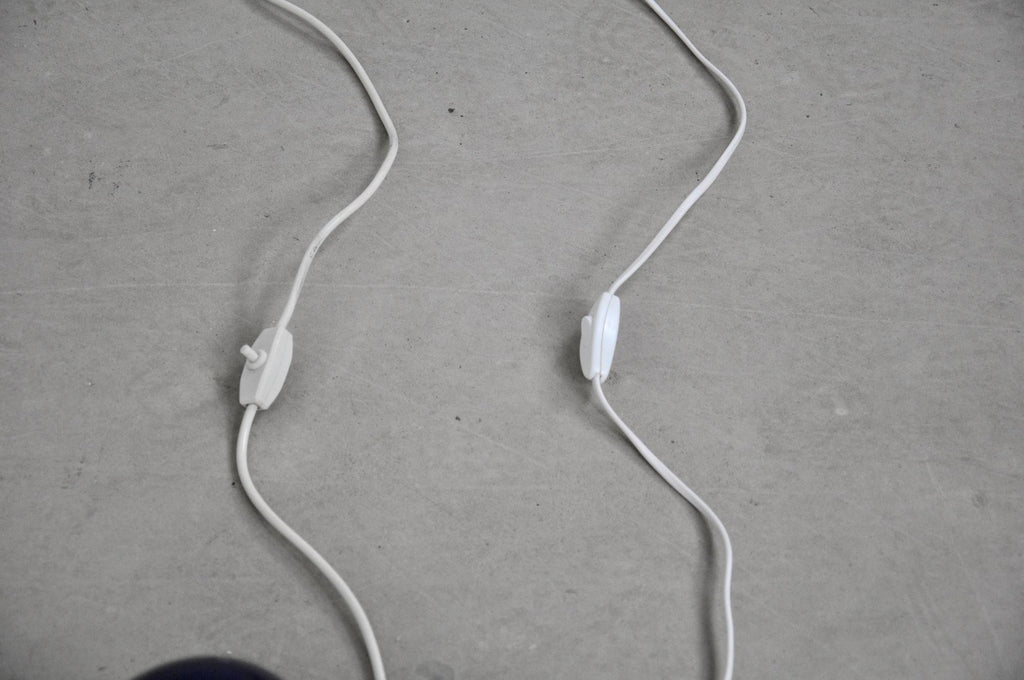 블루 컬러 램프의 쌍입니다. 램프 아래 스탬핑.
