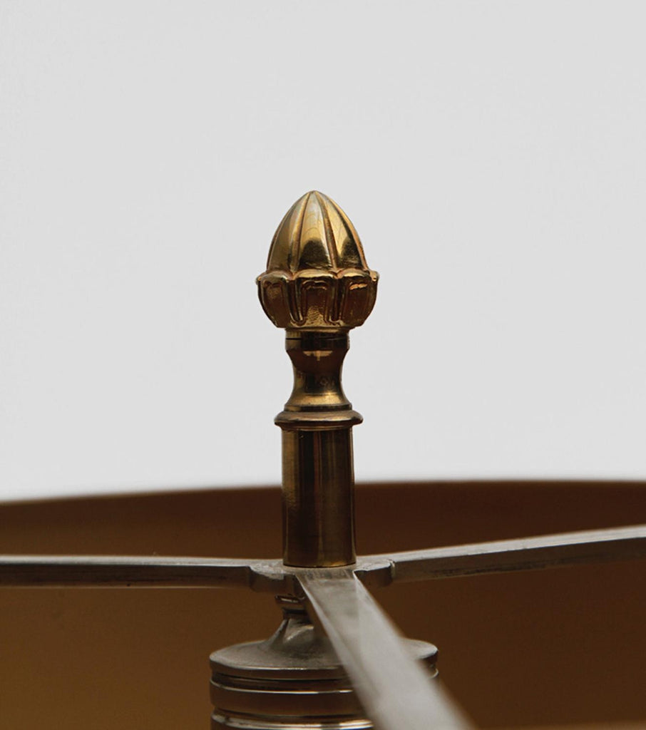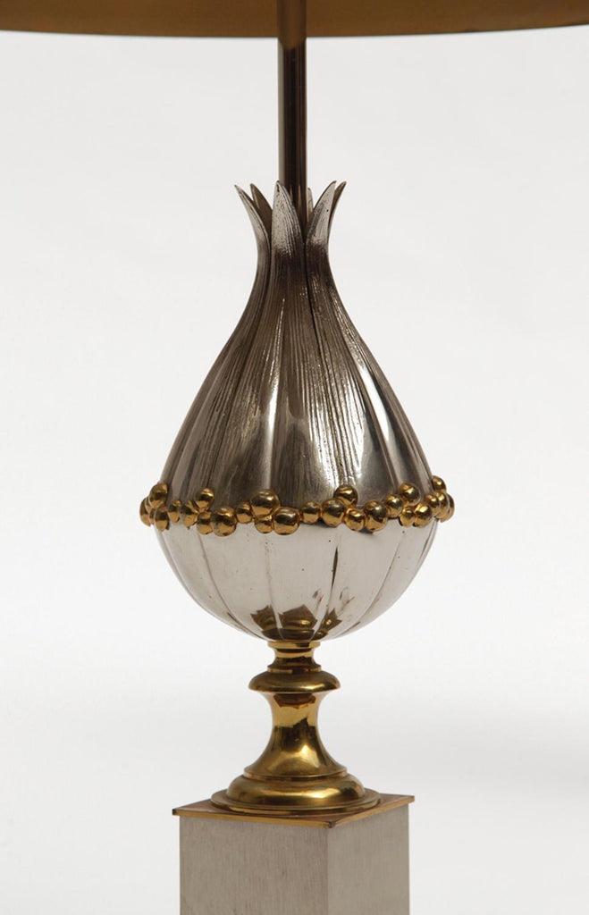 Elegant pair of French Mid-Century patinated bronze table lamps by Maison Charles