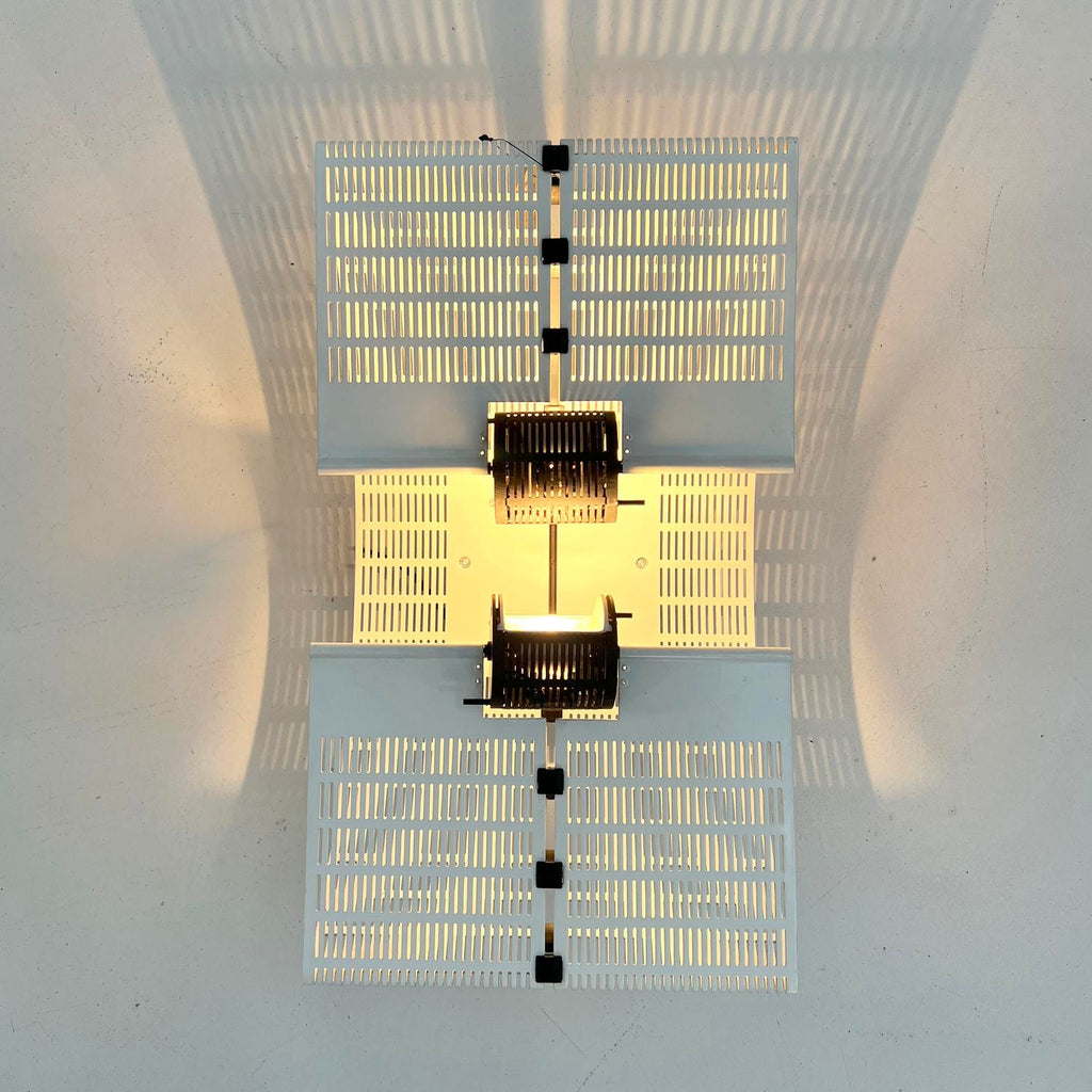 디자이너 - Mario Botta 프로듀서 - Artemide 모델 - Fidia 벽 램프 디자인 기간 - 80년대 치수 - 폭 27 cm x 깊이 24 cm x 높이 47 cm 재료 - 주철, 스틸 색상 - 흰색, 검정색 나이와 사용에 맞는 가벼운 착용. 원래 태그는 여전히 켜져 있습니다. 세부 사진을 참조하십시오.