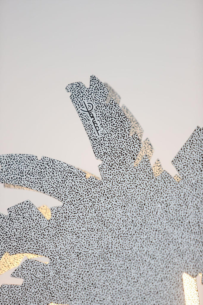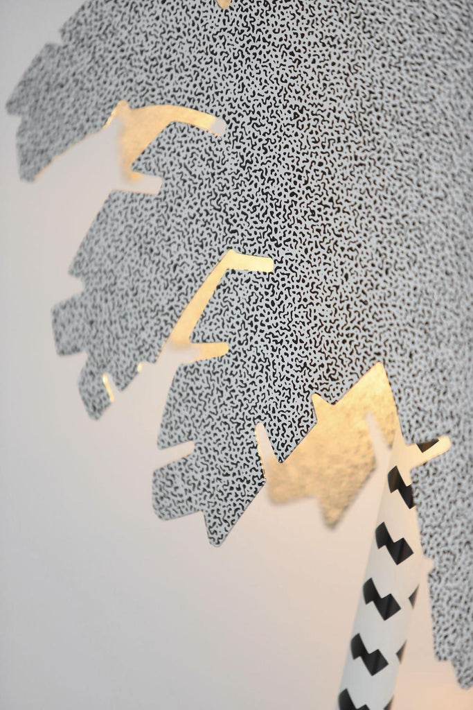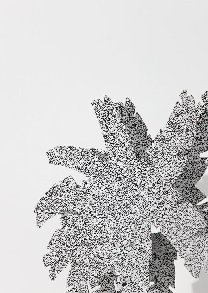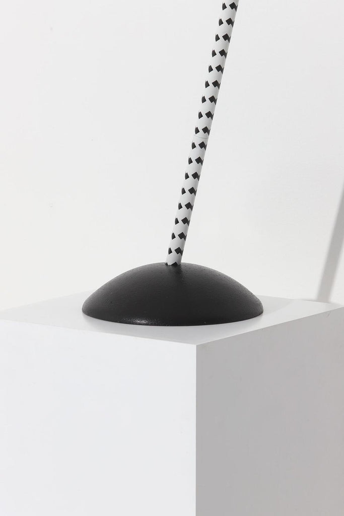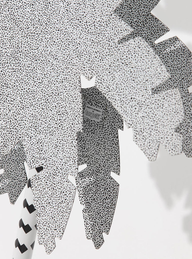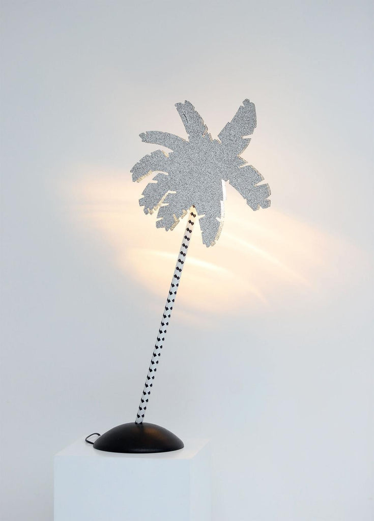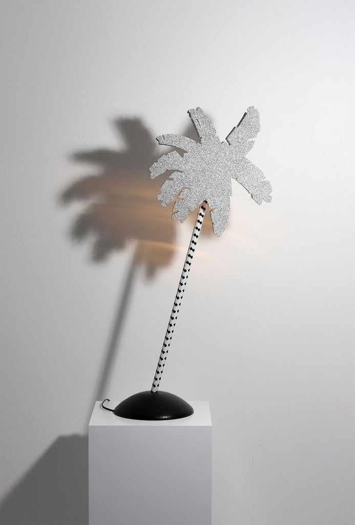 패션 브랜드 Fiorucci는 Ettore Sottsass, Andrea Branzi 및 Franco Marabelli를 포함하여 가장 수요가 많은 이탈리아 건축가를 고용하여 매장 인테리어를 디자인했습니다. 이 Palmtree Caribe 테이블 램프는 이탈리아 회사 Targetti Sankey가 80년대에 생산한 Fiorucci 매장을 위해 특별히 디자인된 장식적인 속성 중 하나입니다. 찾기 힘든 이 램프는 재료 사용과 디자인의 재미있는 조합을 보여줍니다. 피드, 트렁크 및 그늘은 각각 두께가 다른 금속으로 만들어집니다. 램프는 내부에 Tagetti라는 레이블이 붙은 상태가 좋고 깨끗한 상태입니다.