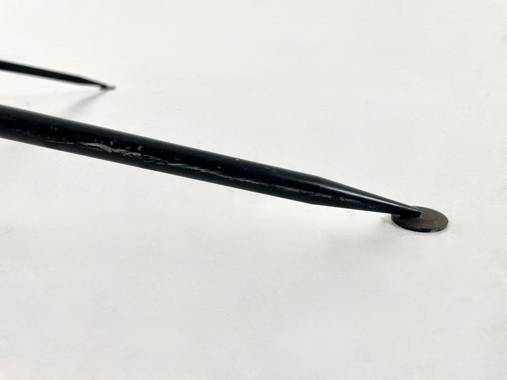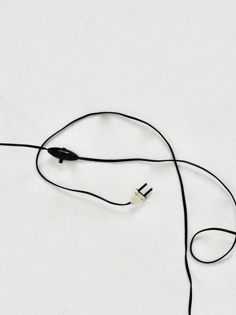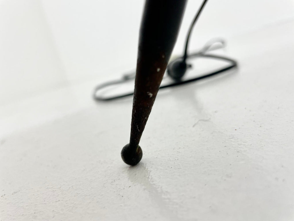 Serge Mouille의 블랙 메탈 플로어 램프. 이것은 1953년에 만들어진 초판입니다. 램프의 시간과 노후화로 인한 마모.