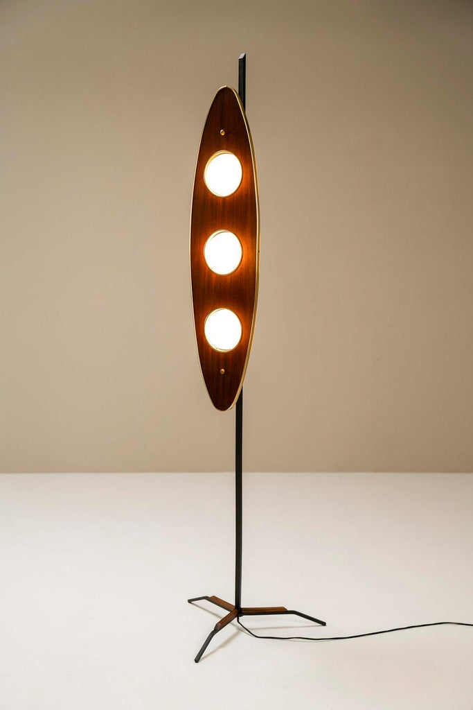 Floor Lamp in Teak and Brass in The Style of Goffredo Reggiani, Italy 1970s