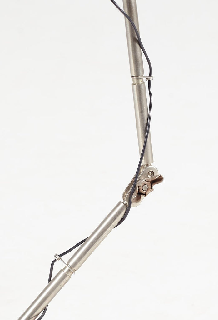 Ingo Maurer의 매우 희귀한 '돈키호테' 램프. 강철, 알루미늄 및 유연한 플라스틱으로 제작되었습니다. 돈키호테는 구부리고, 비틀고, 회전하고, 회전합니다. Touch Tronic 전자 변압기-센서-조광기로. 1989년 독일에서 제작. 높이: 38cm