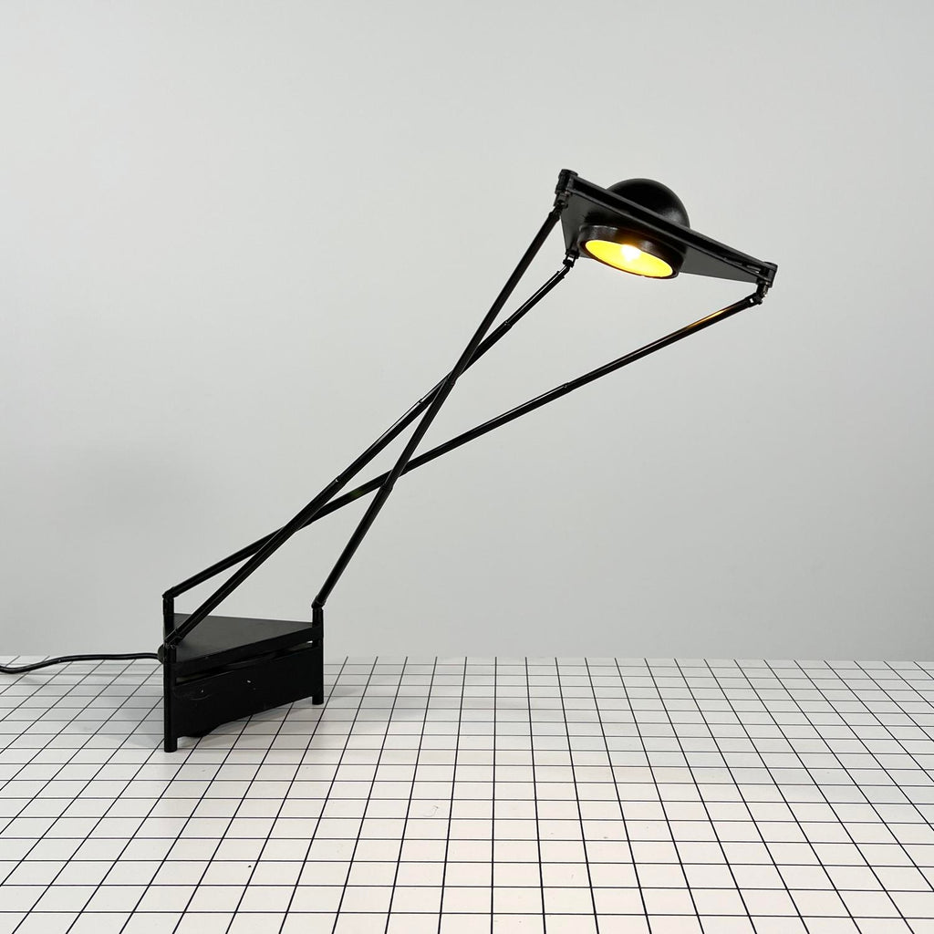 Designer - Ferdinand Alexander Porsche Producer - Luci Model - Kandido 탁상 램프 디자인 기간 - 80년대 치수 - 폭 16cm x 깊이 14cm x 높이 35cm / 75cm 재료 - 금속, 플라스틱 색상 - 블랙, 실버 나이와 사용에 따라 가벼운 마모 . 천장이나 벽에 촛대처럼 부착할 수도 있습니다.