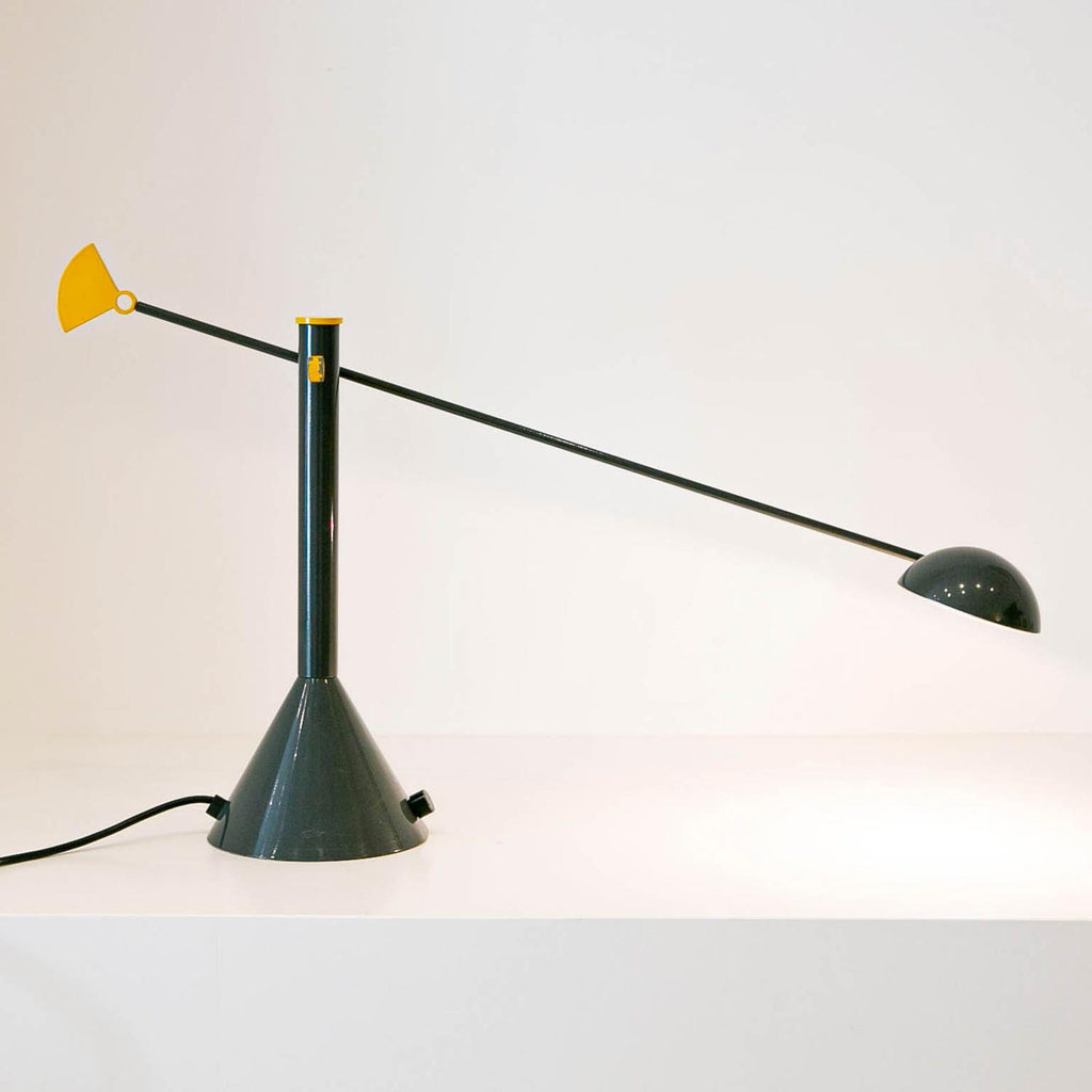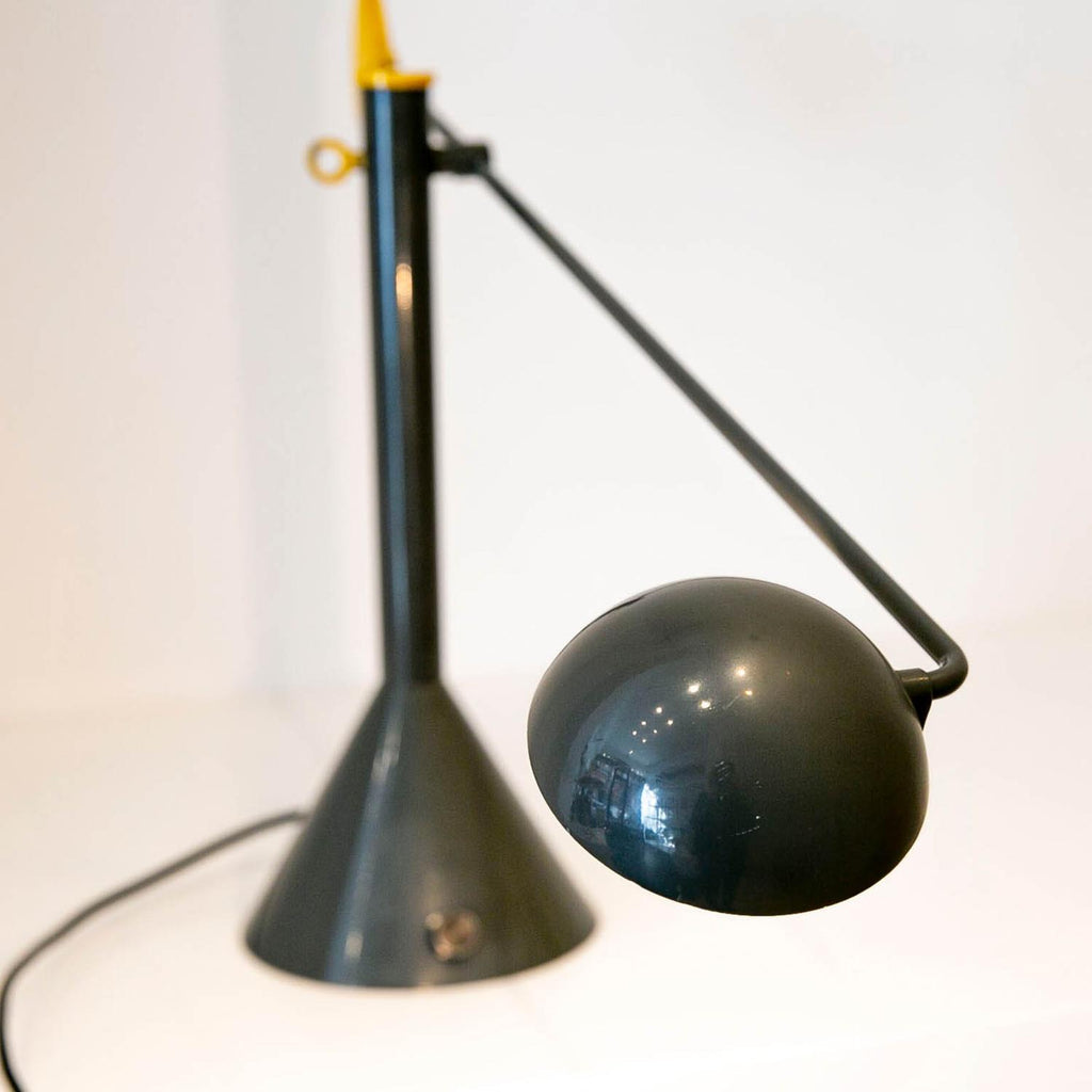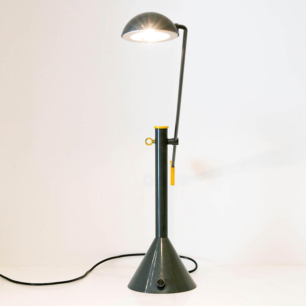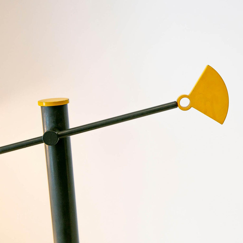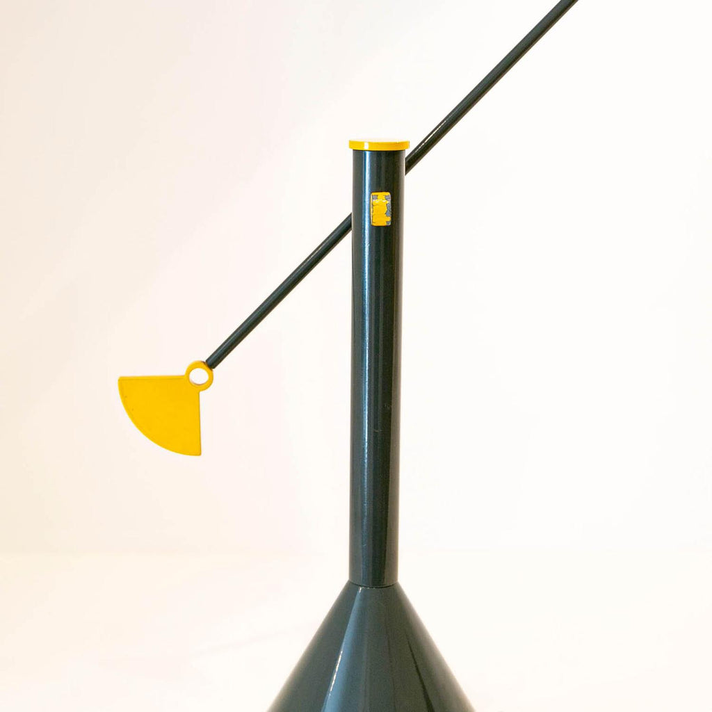 Eleusi를 위한 Inao Miura의 램프(이탈리아), 1985 회색 및 노란색 래커 금속. 디플렉터 폴은 완전히 조정 가능합니다. 모델 « Inao »