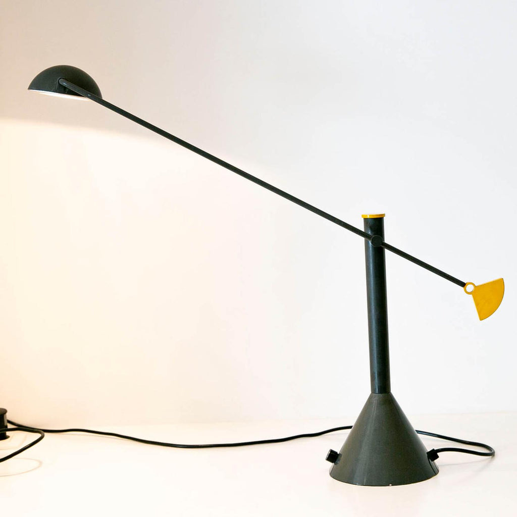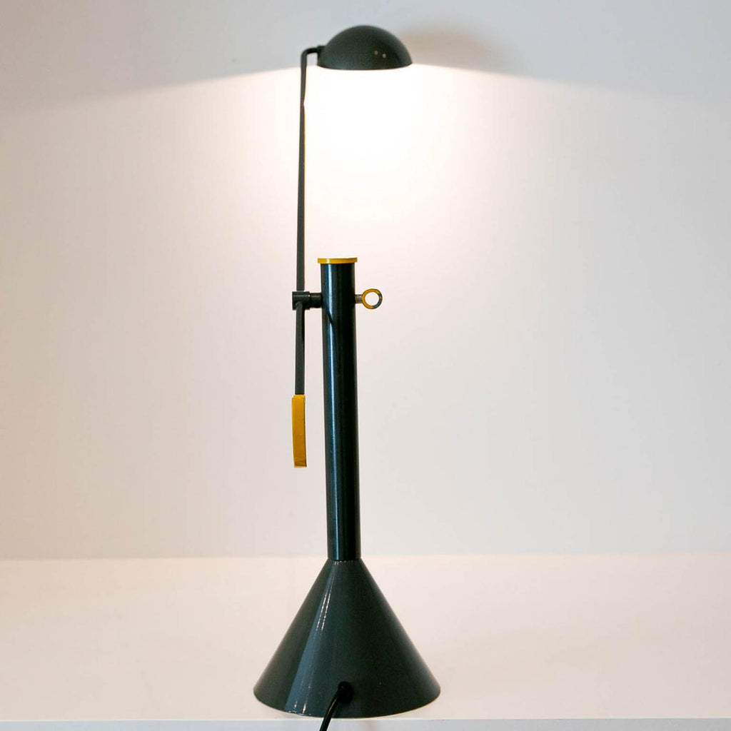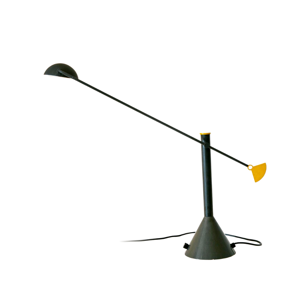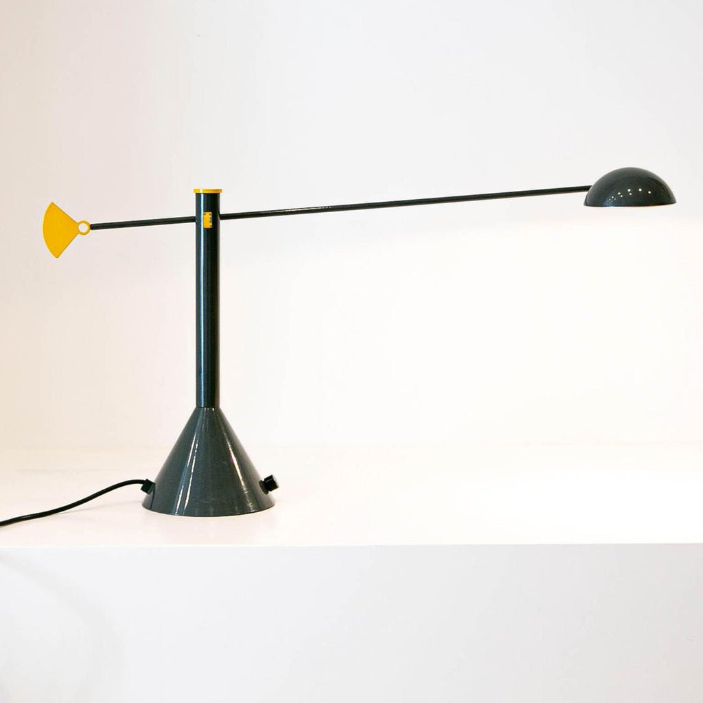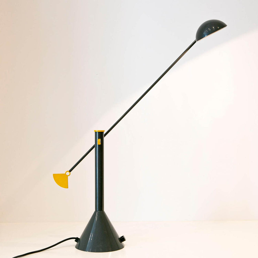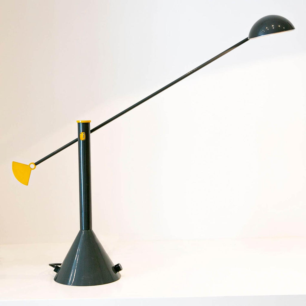 Eleusi를 위한 Inao Miura의 램프(이탈리아), 1985 회색 및 노란색 래커 금속. 디플렉터 폴은 완전히 조정 가능합니다. 모델 « Inao »