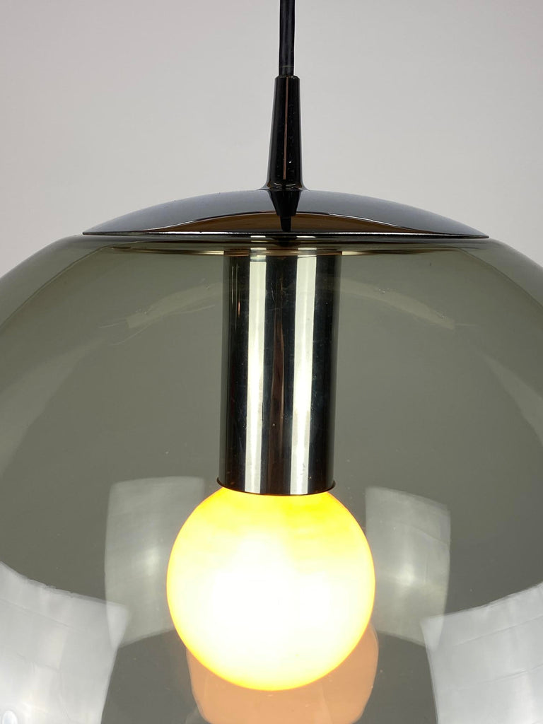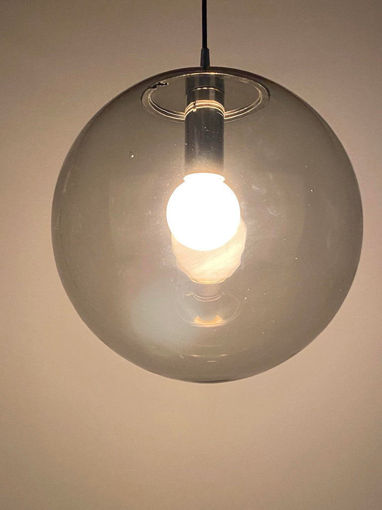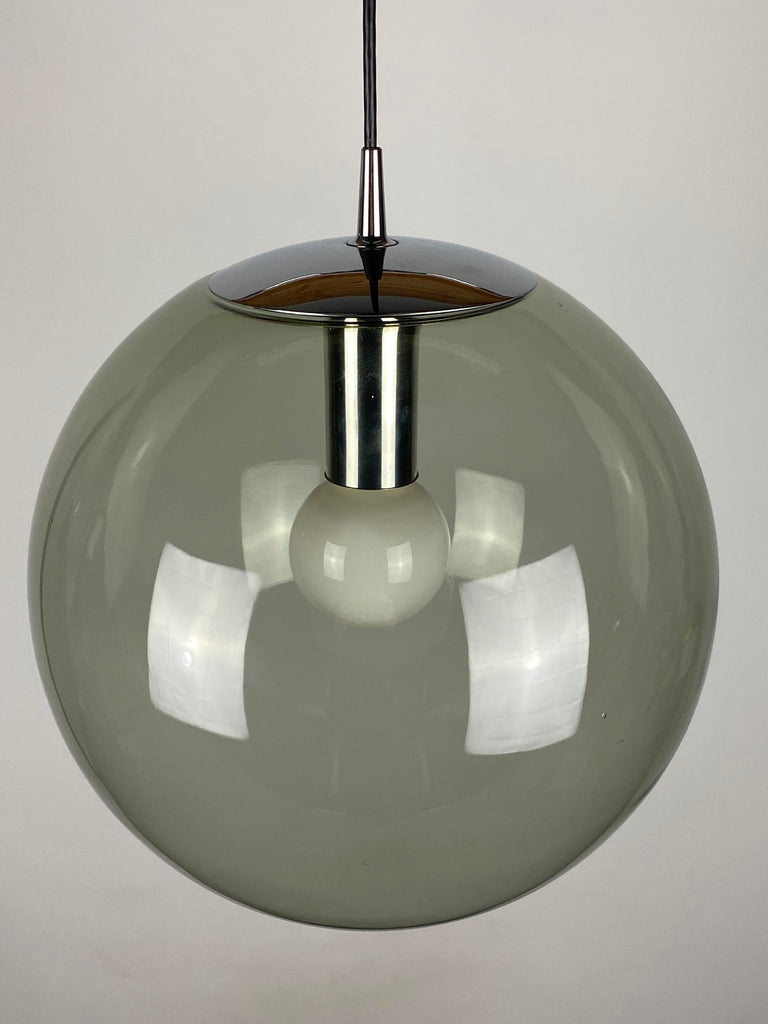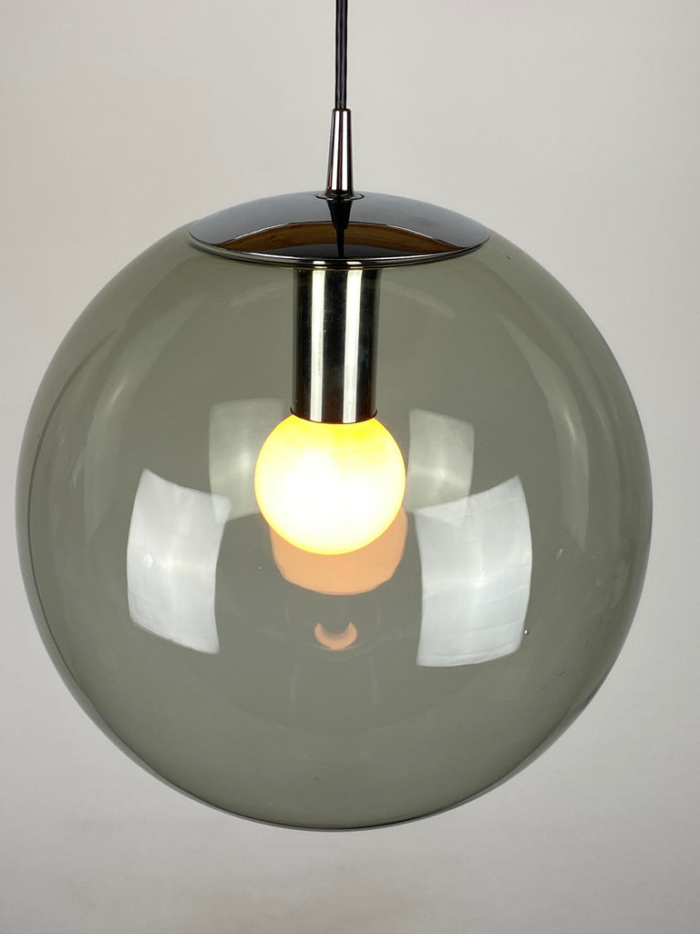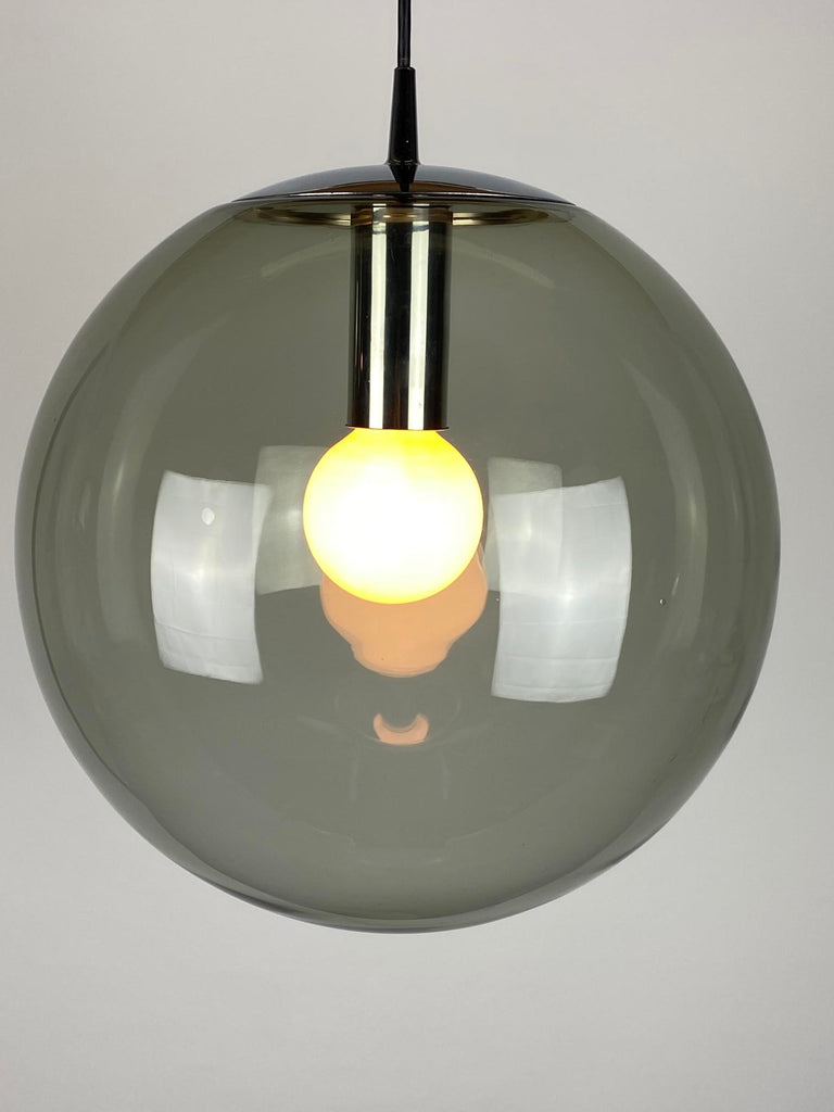 Large Smoked glass globe Peill and Putzler pendant light XL 1970
