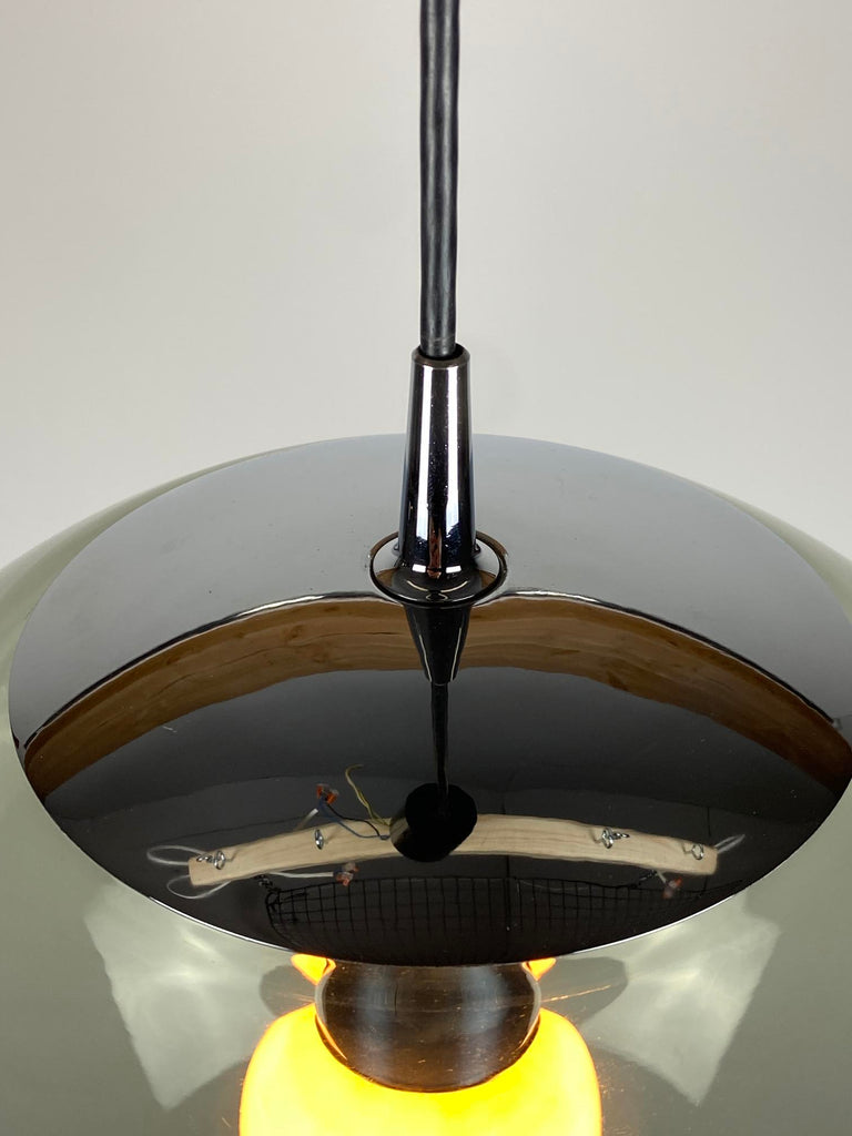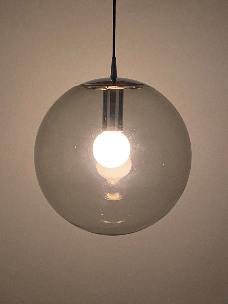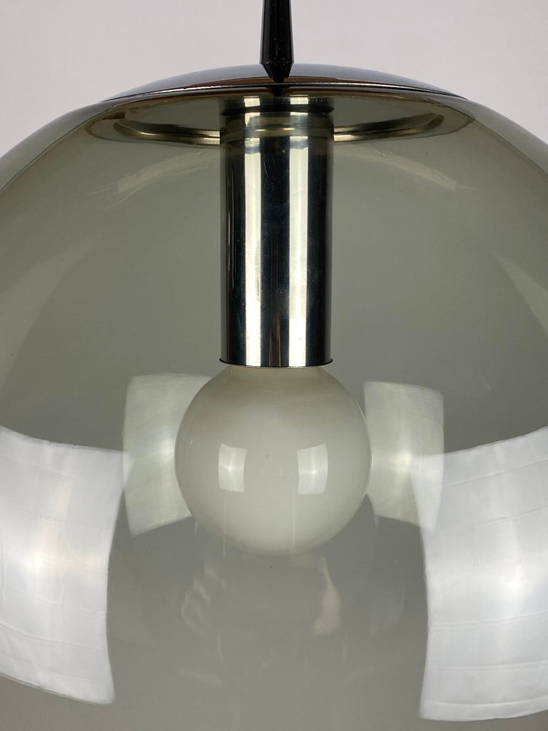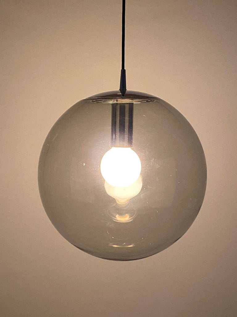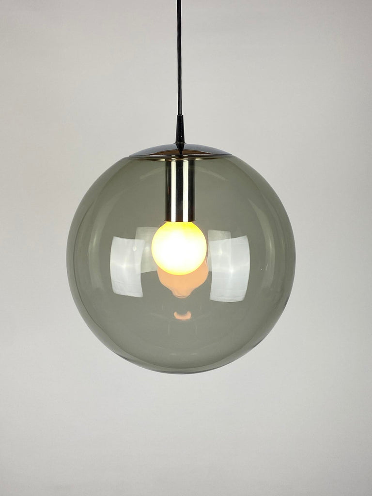 Large Smoked glass globe Peill and Putzler pendant light XL 1970