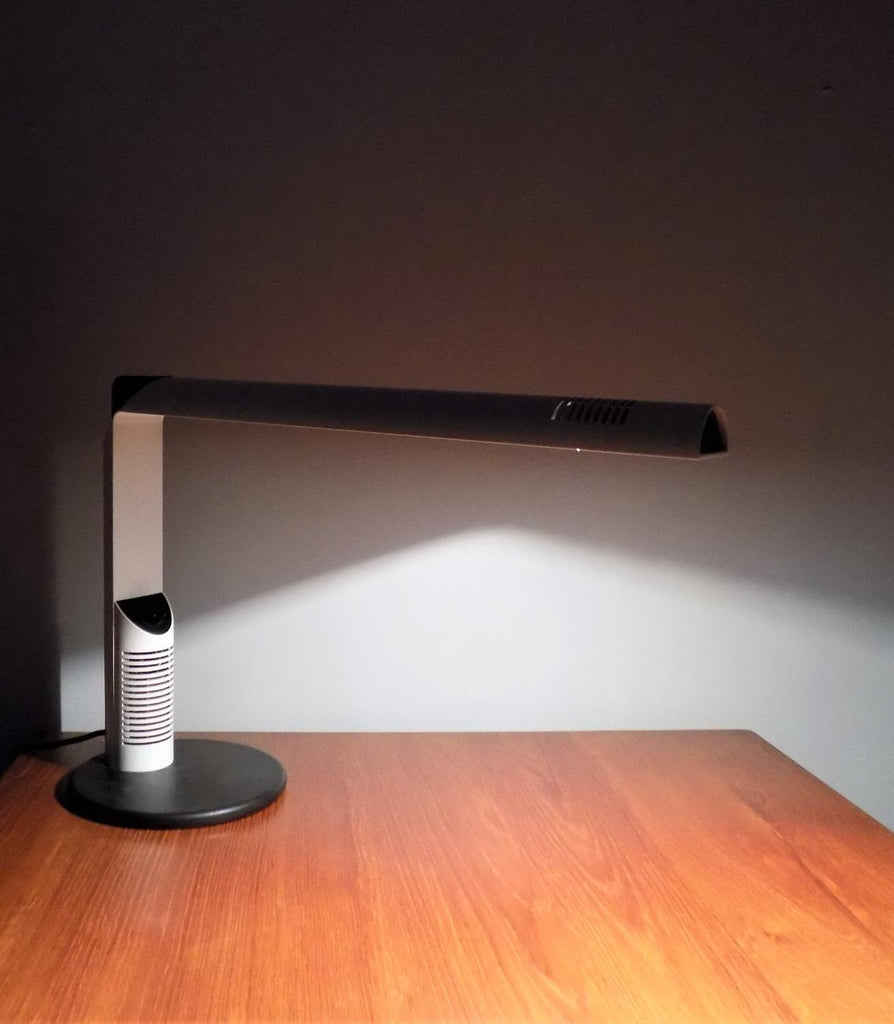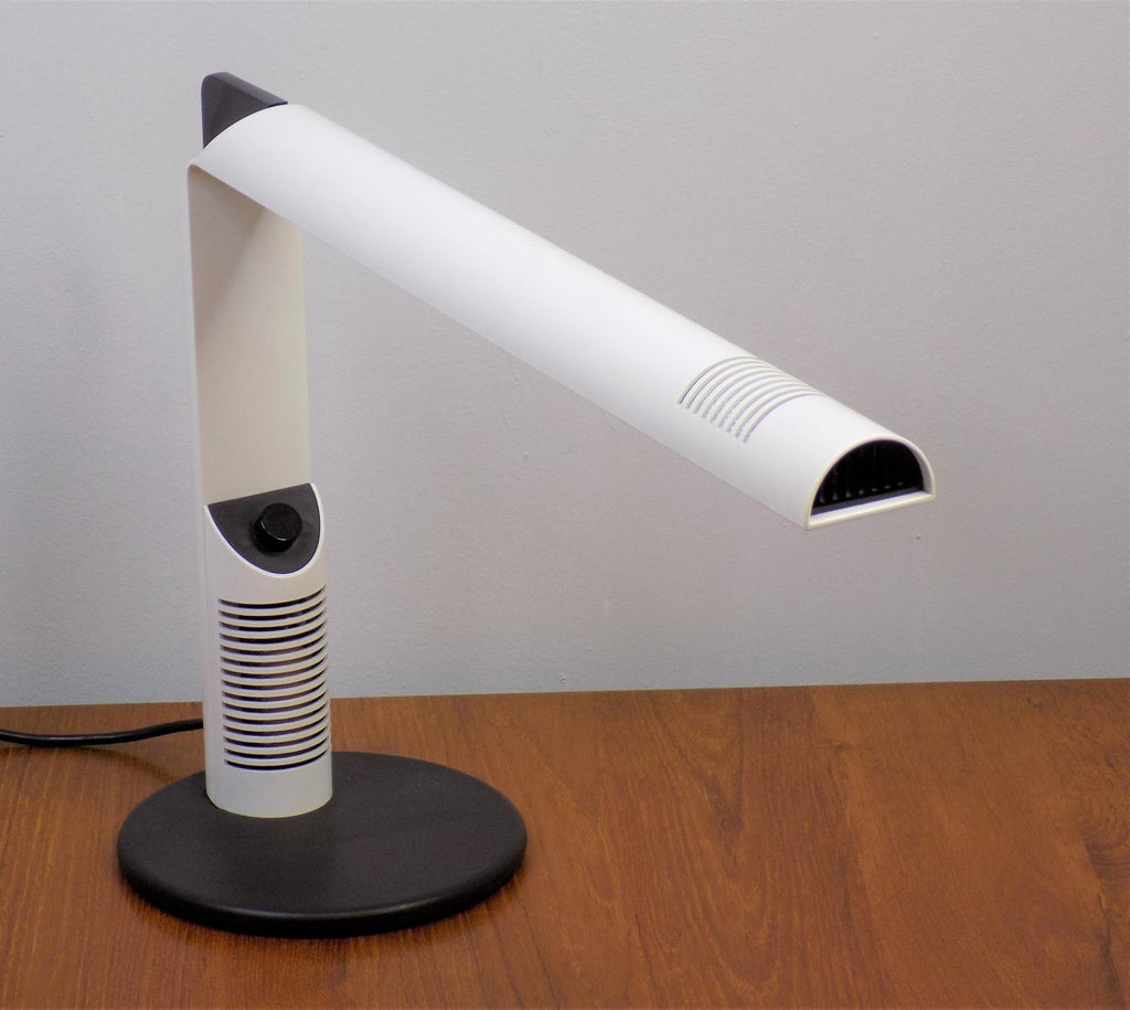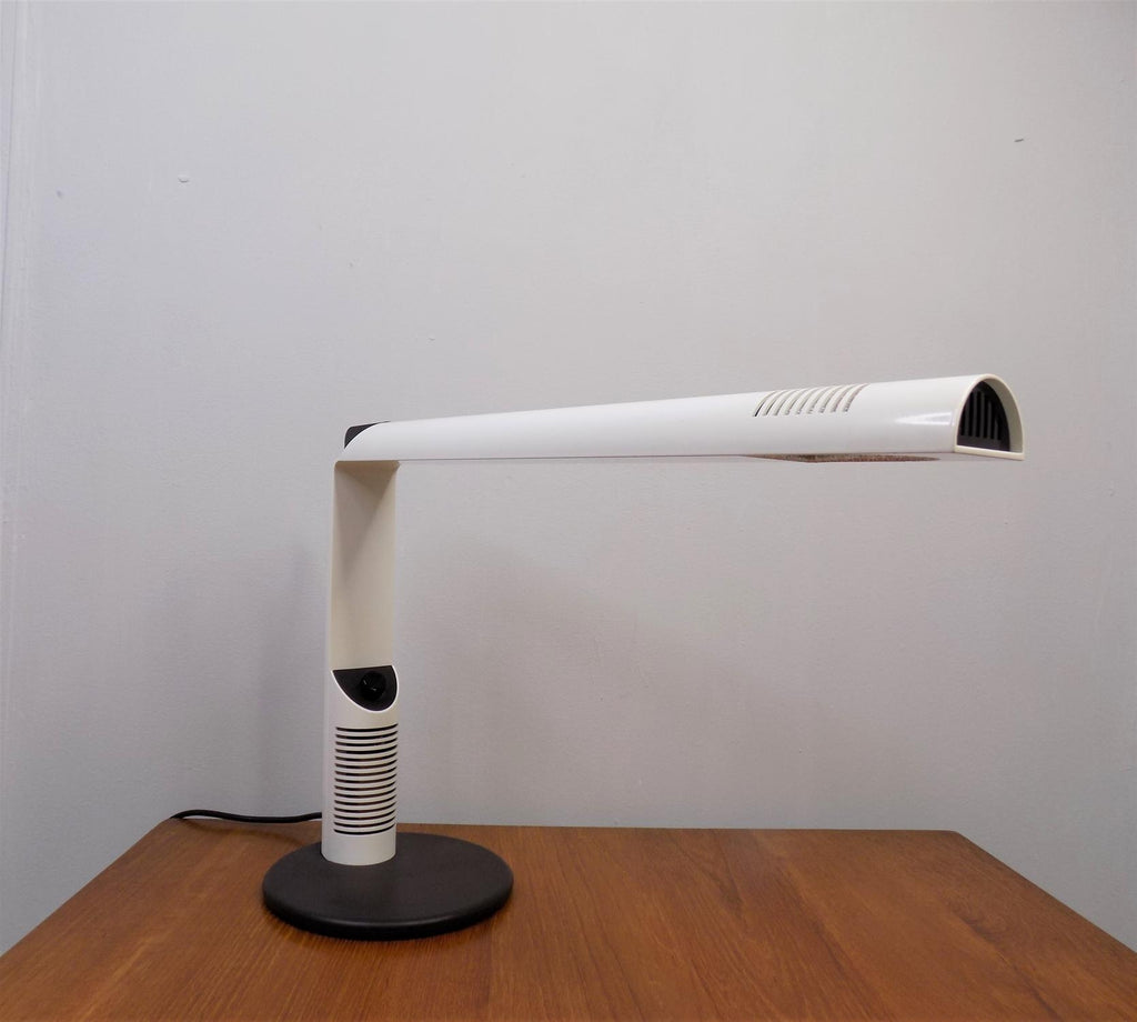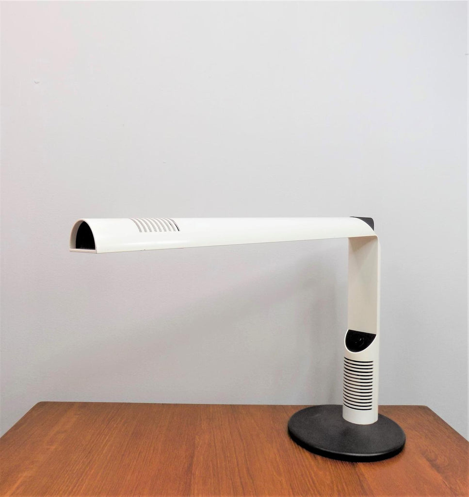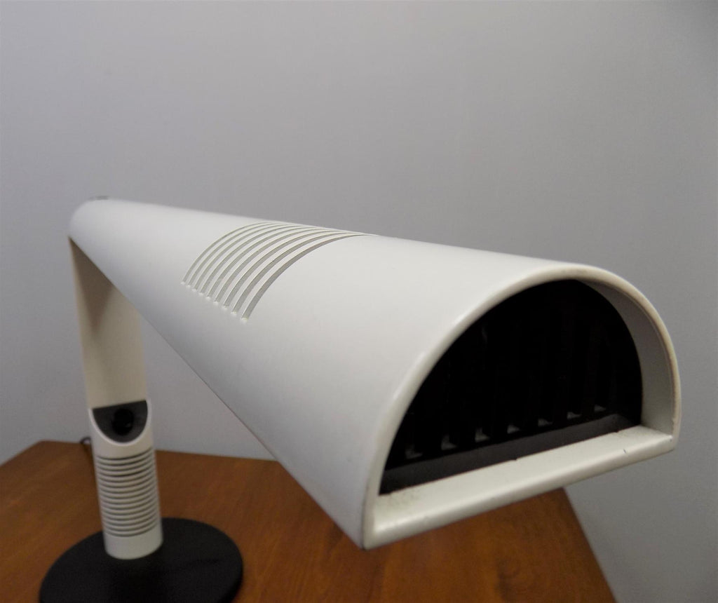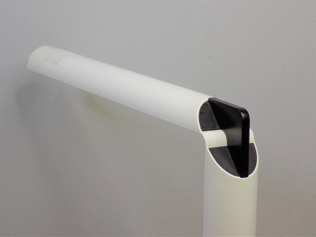이 Luci Abele 탁상 램프는 흰색 플라스틱에 검은색을 칠한 상태로 제조되었으며 상태가 매우 양호합니다. 플라스틱 케이스는 블랙 메탈 베이스와 마찬가지로 최소한의 마모 흔적을 보여줍니다. 시대를 초월한 모던한 라인의 테이블 램프는 밝기를 무한대로 조절할 수 있습니다. 전기는 완벽하게 작동합니다. 이 램프는 70년대 이탈리아 제조업체인 Luci Abele을 위해 Gianfranco Frattini가 디자인했습니다.