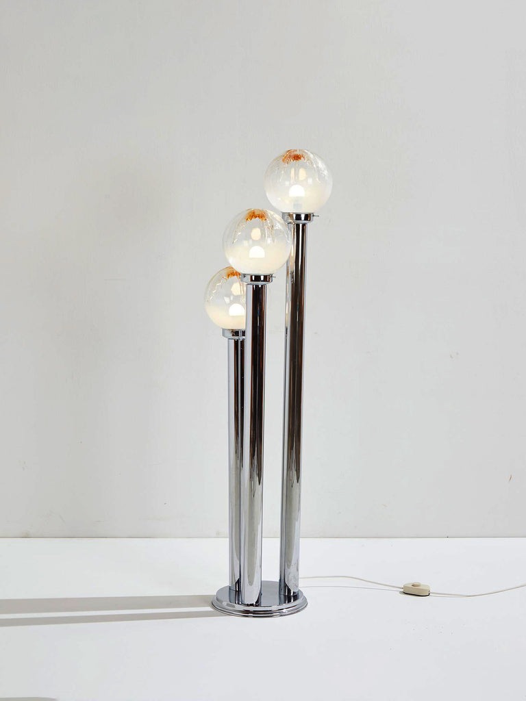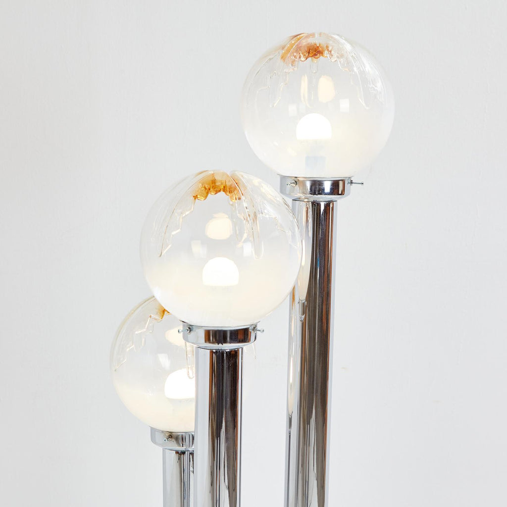 Murano 유리 전등갓이 있는 1970년대 이탈리아 Mazzega 플로어 램프.