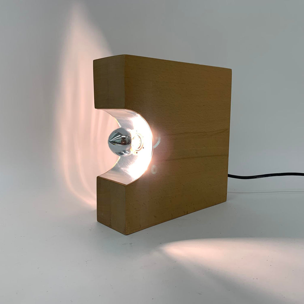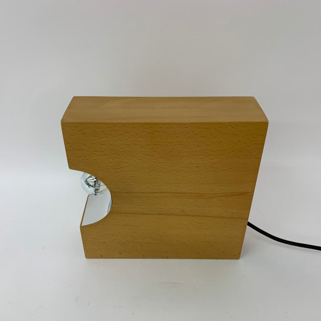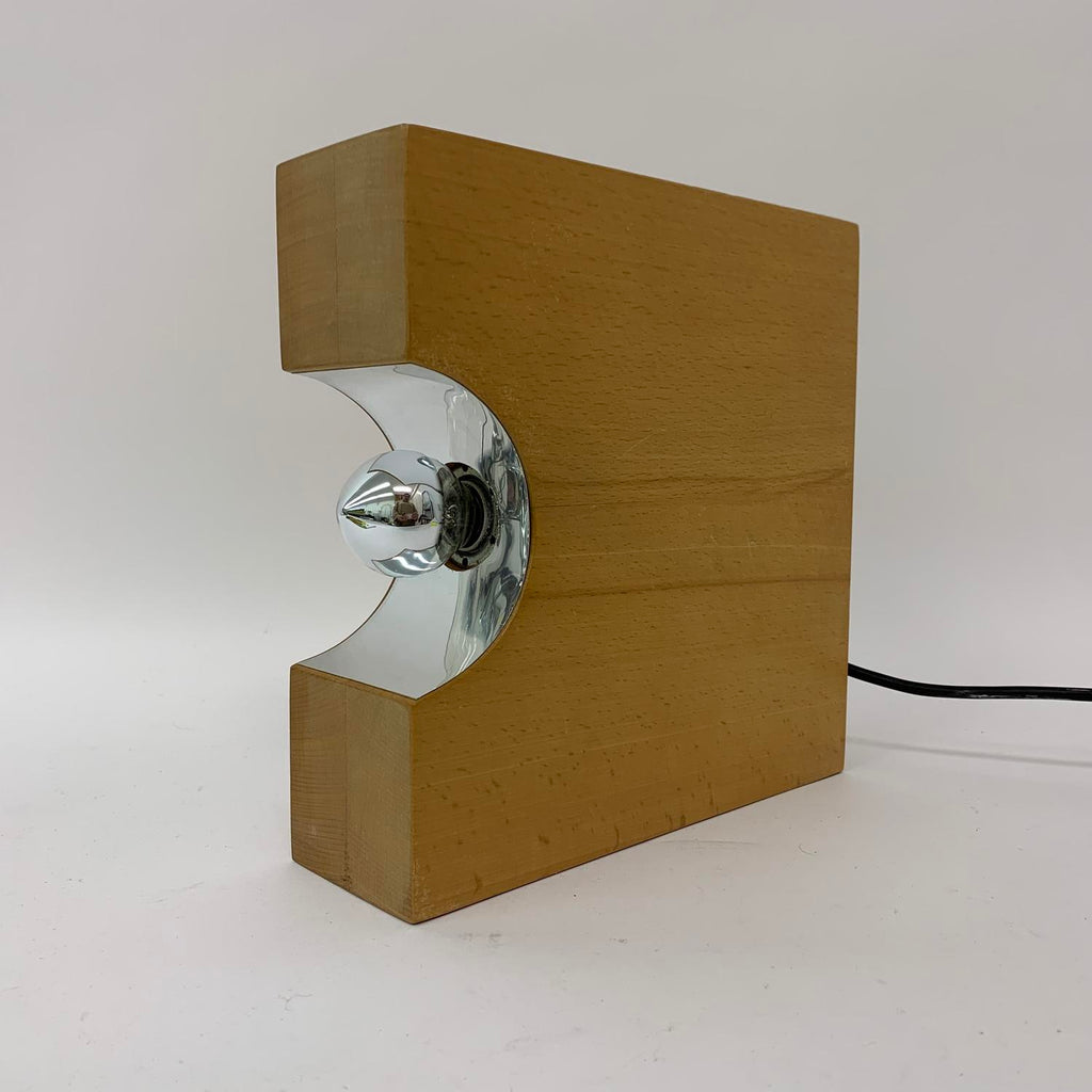 Mid-century design solid wood block table lamp , 1970’s minimalist