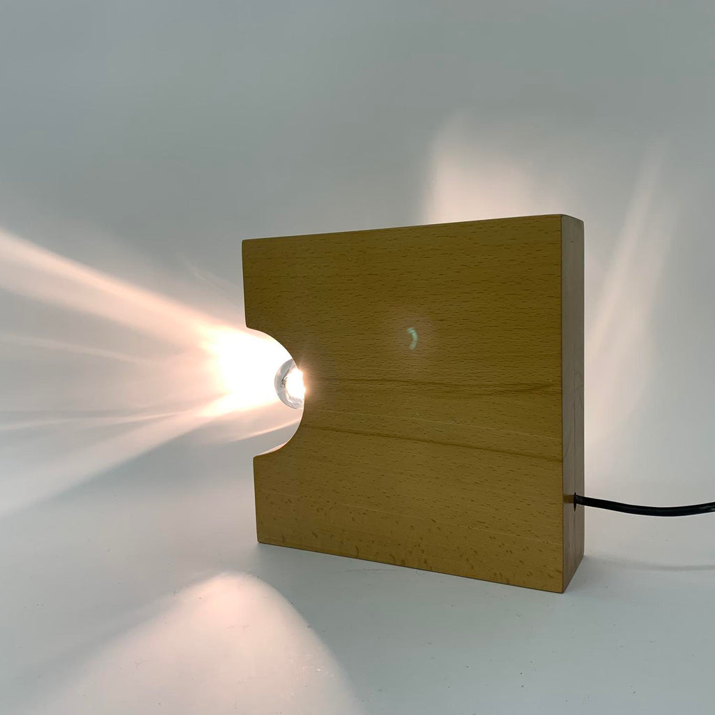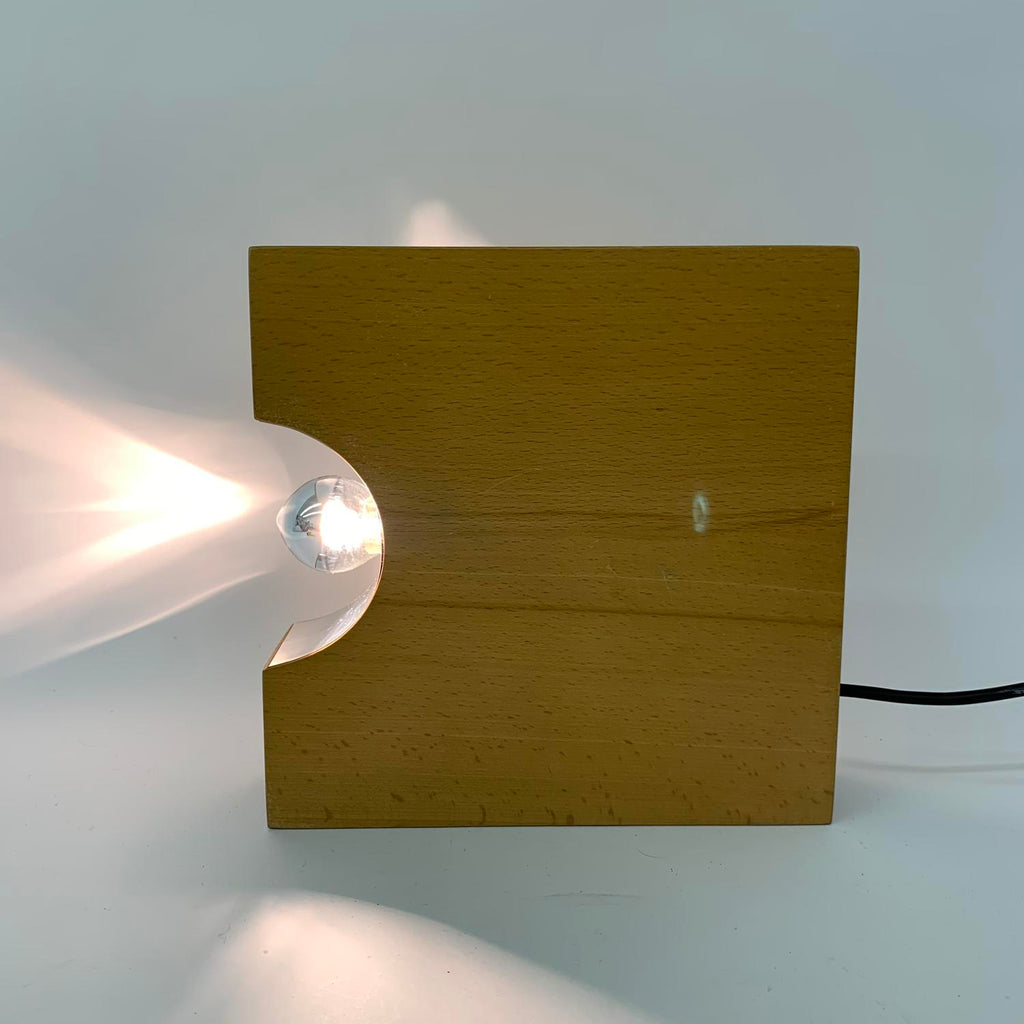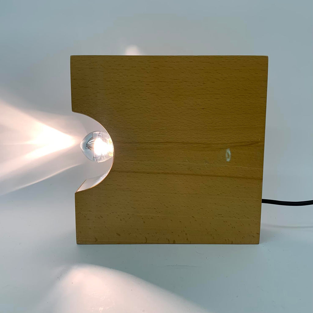 Mid-century design solid wood block table lamp , 1970’s minimalist