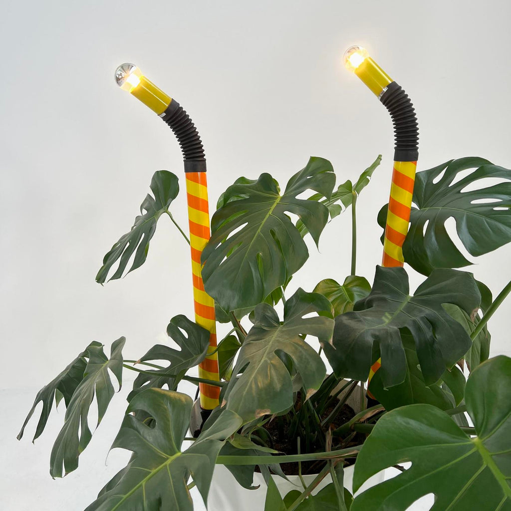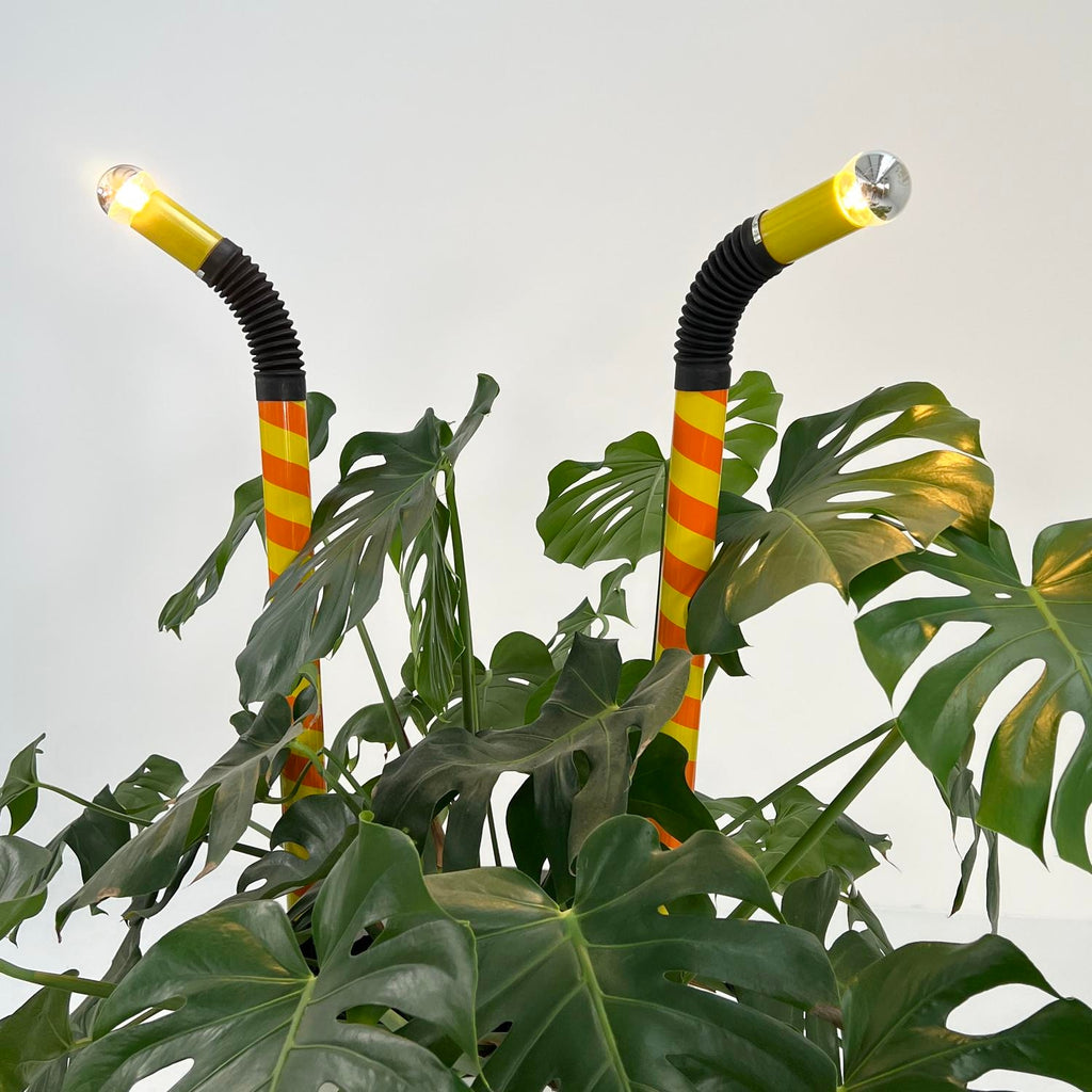 생산자 - Targetti Sankey 디자인 기간 - 80년대 치수 - 폭 6 cm x 깊이 6 cm x 높이 120 cm (바닥에 들어가는 부분 = 30 cm) 재료 - Metal 색상 - Yellow, Orange, Black, Silver 경년과 일관된 가벼운 마모 및 사용.