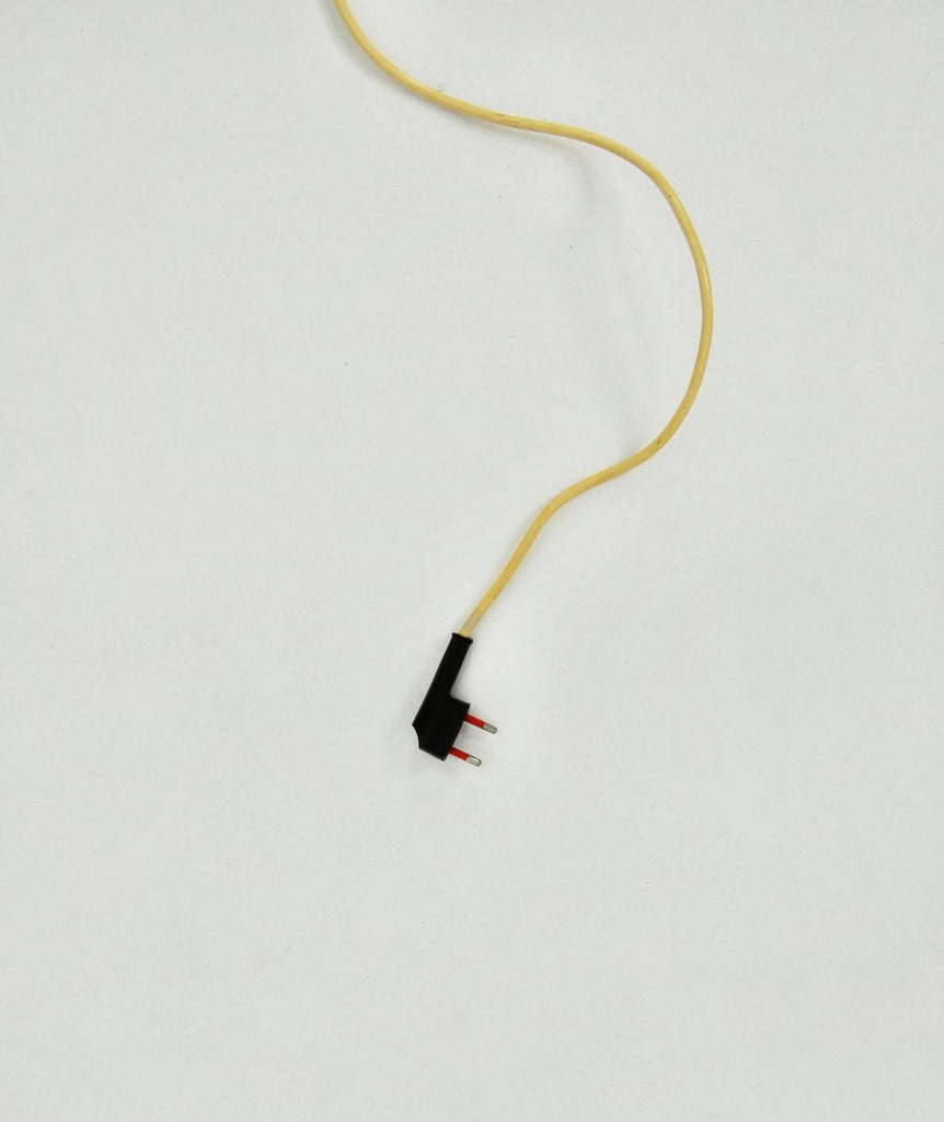 크림색의 흰색 플라스틱 및 금속 램프. 램프 아래 스탬프. 램프의 시간과 수명으로 인한 마모.