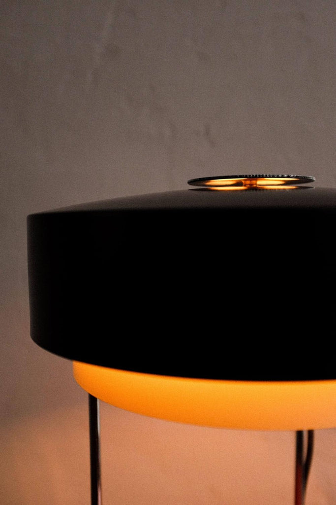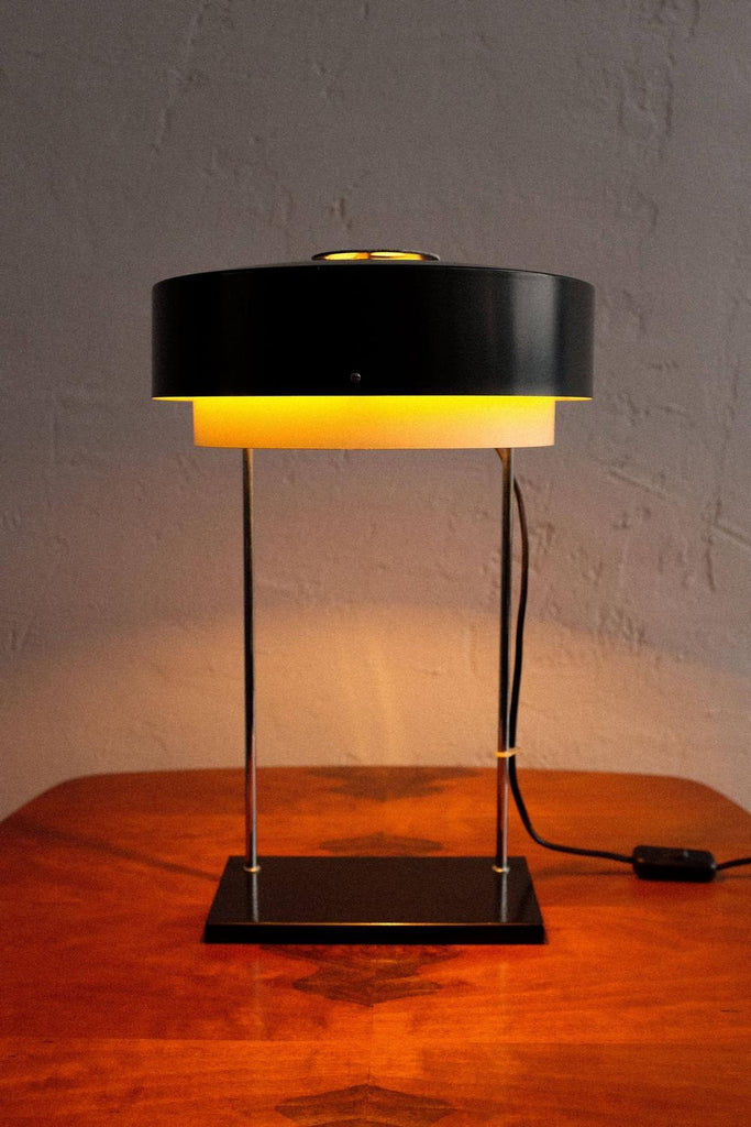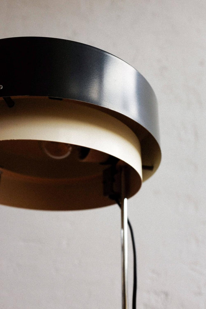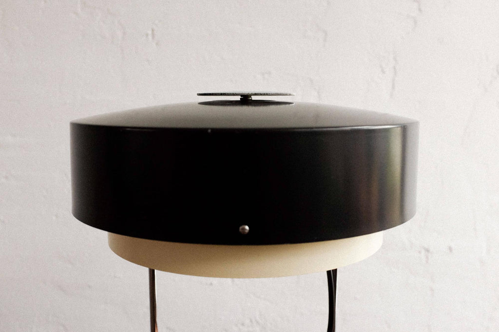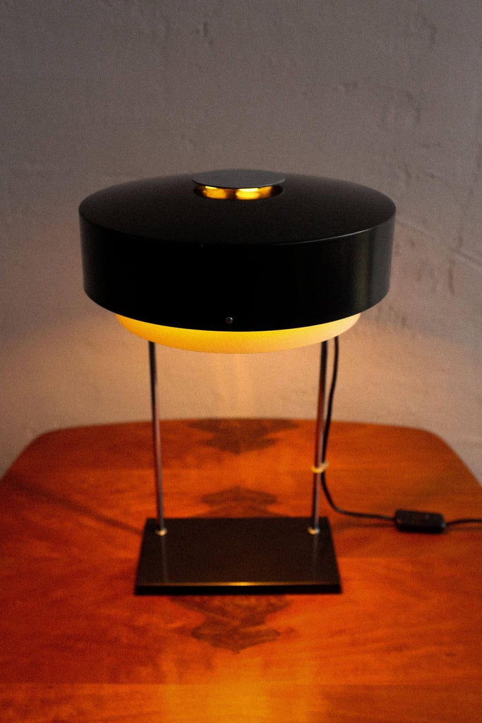 60년대에 Josef Hůrka가 디자인하고 Napako Czechoslovakia에서 생산한 드물게 보이는 빈티지 테이블 램프, 모델 0520. 완전히 클리닝하고 수리하고 다시 배선했습니다. 그림에서 볼 수 있는 측면의 약간 움푹 패인 판.