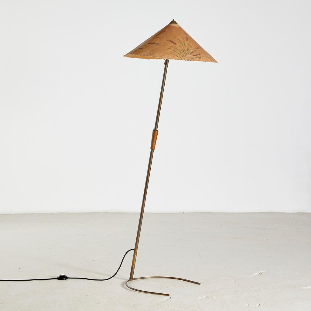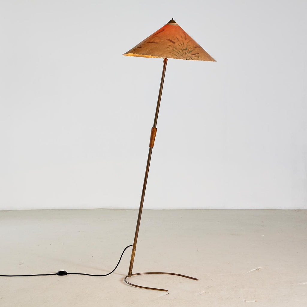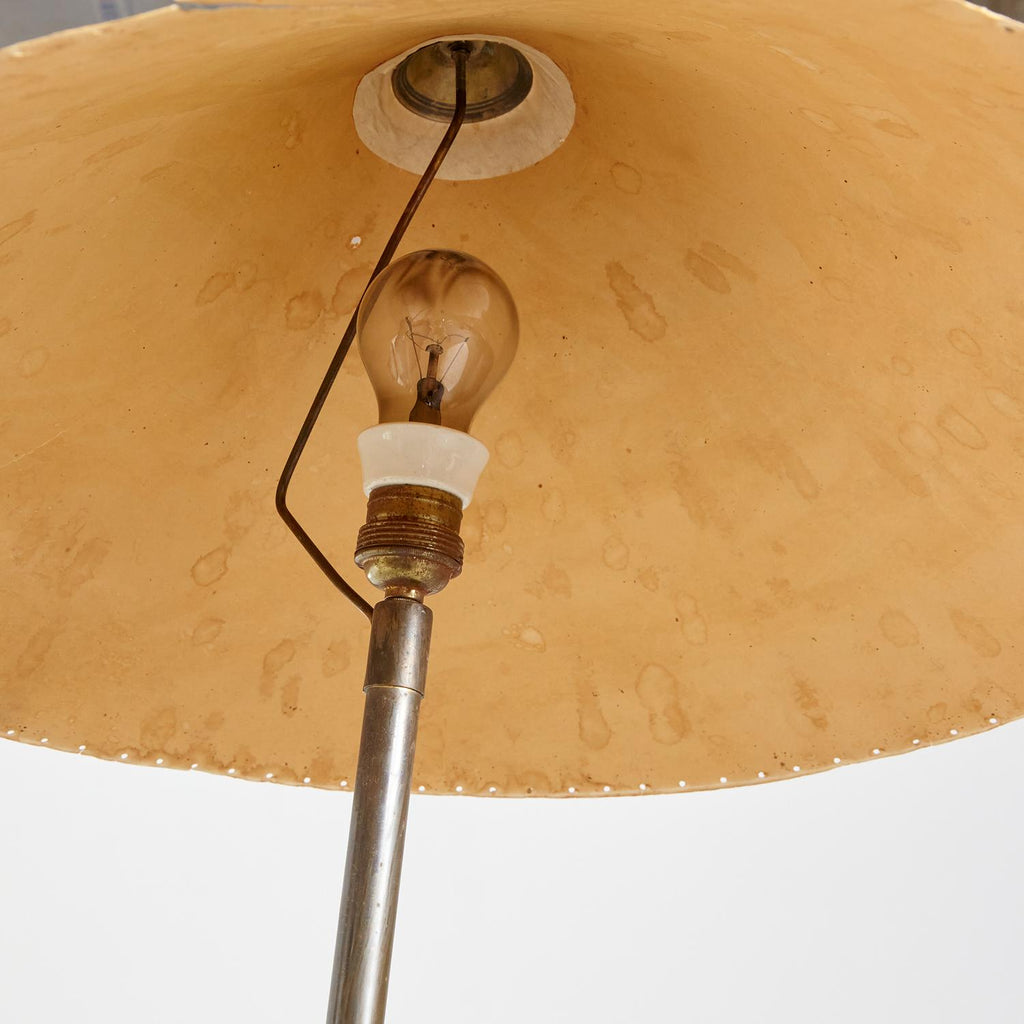 구부러진 바닥에 종이 전등갓이 있는 빈티지 상태의 클래식하고 통풍이 잘 되는 플로어 램프. 갓이 손상되었습니다! MK7783