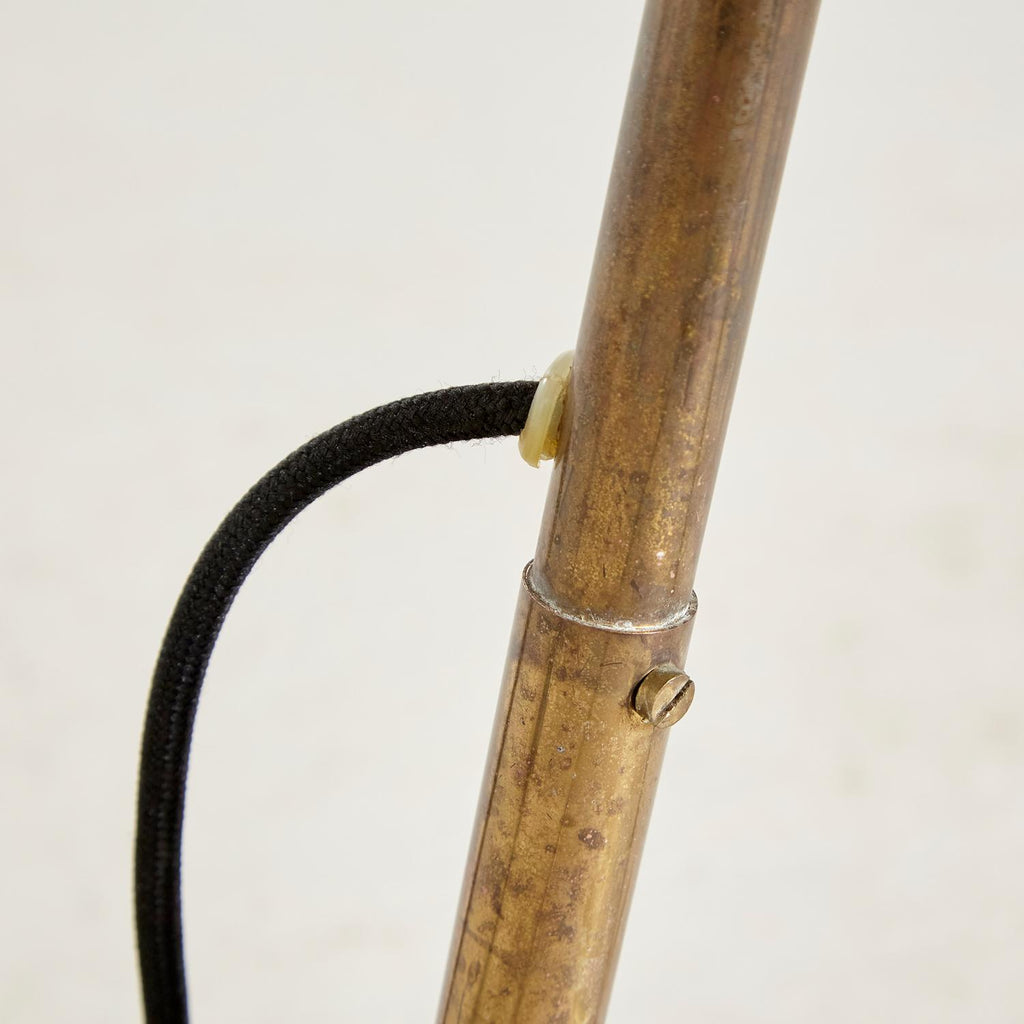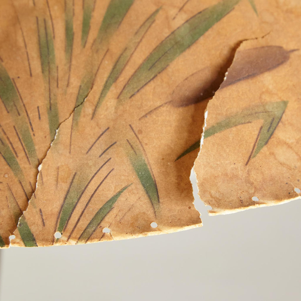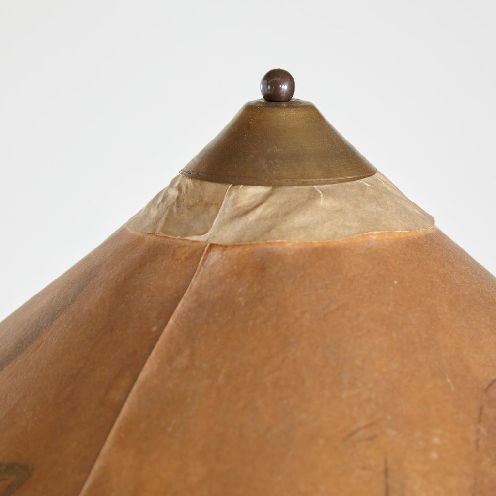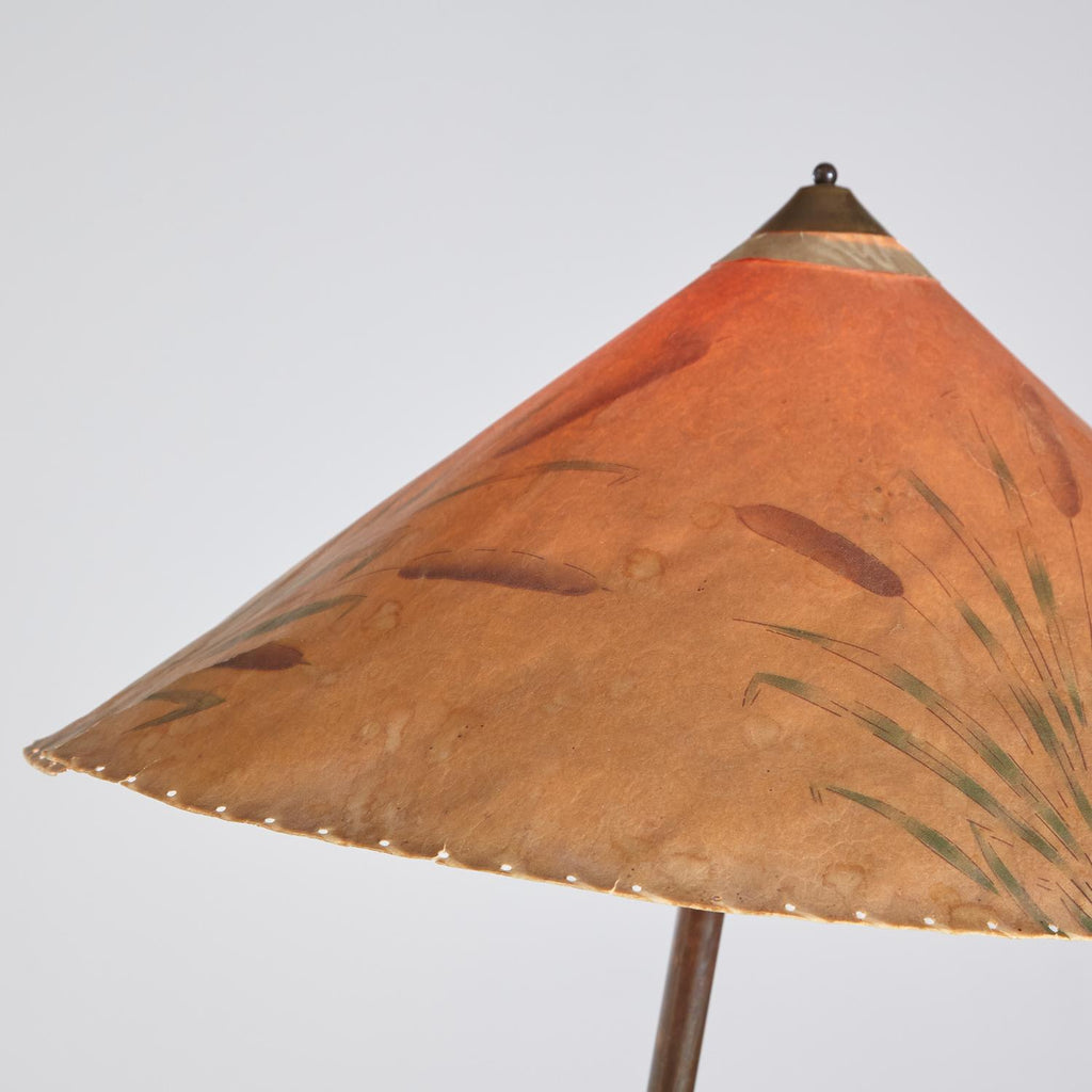 구부러진 바닥에 종이 전등갓이 있는 빈티지 상태의 클래식하고 통풍이 잘 되는 플로어 램프. 갓이 손상되었습니다! MK7783