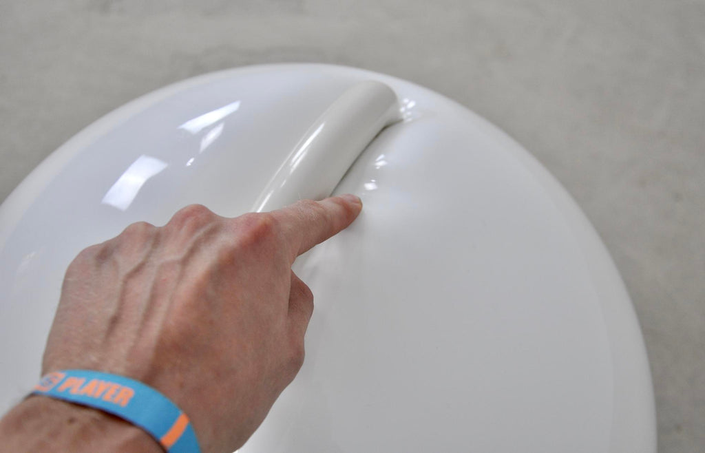 상단의 플라스틱 돔에 약간의 마모(그림 참조) 하단에 스탬프가 찍힌 램프. 램프의 시간과 수명으로 인한 마모