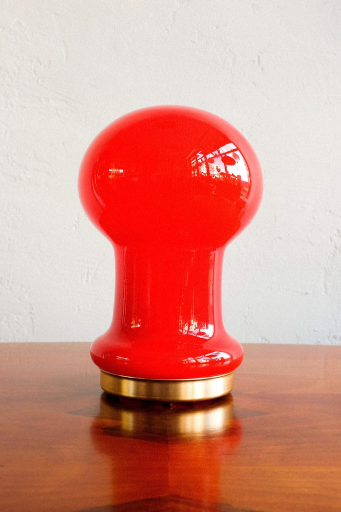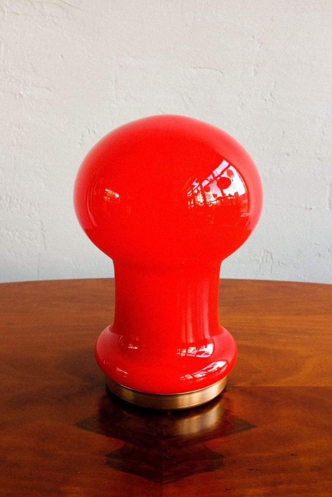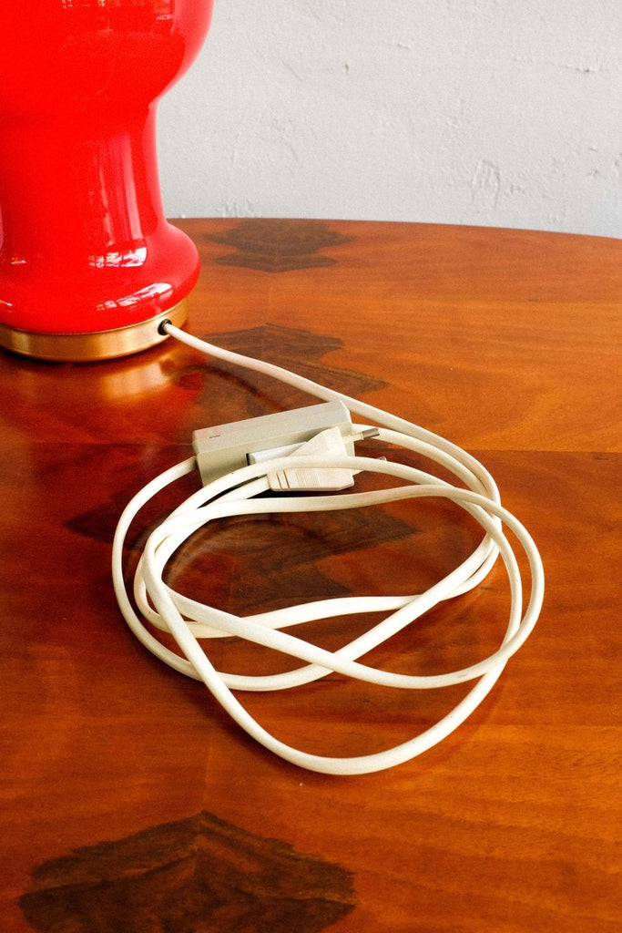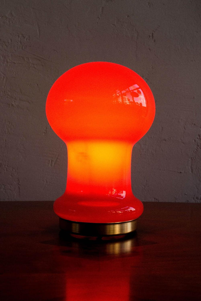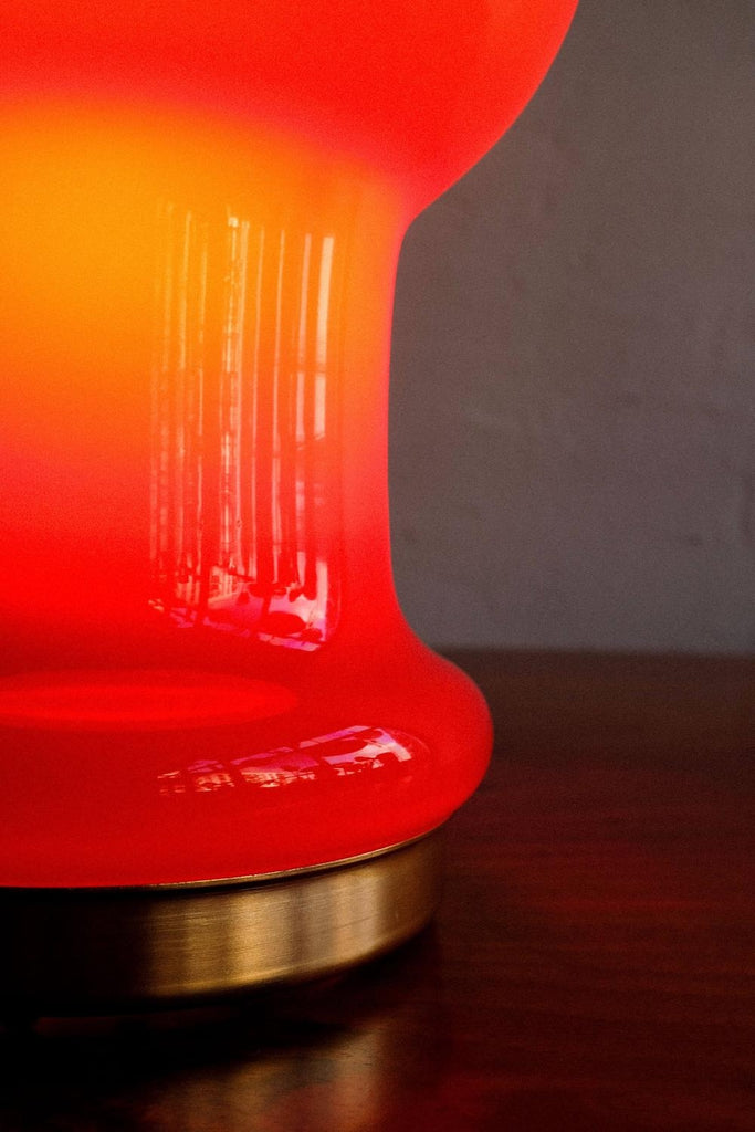 70년대 붉은 유리로 만든 빈티지 체코슬로바키아 테이블 램프. 그들은 오팔린 유리로 만들어졌습니다. 램프는 훌륭한 빈티지 상태이며 배선을 다시 연결하고 전기 기사가 점검합니다.