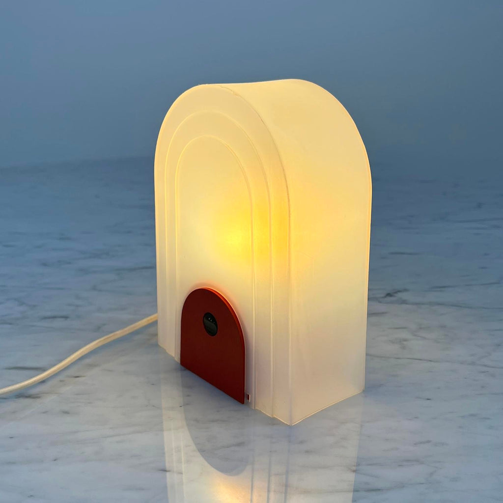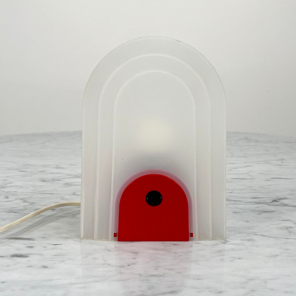 Targetti Sankey의 테이블 램프, 1980년대 생산자 - Targetti 디자인 기간 - 70년대 치수 - 폭 14 cm x 깊이 7 cm x 높이 20 cm 재료 - 플라스틱 색상 - 빨강, 흰색 상태 - 좋은 의견 - 연령 및 사용에 따른 가벼운 착용.