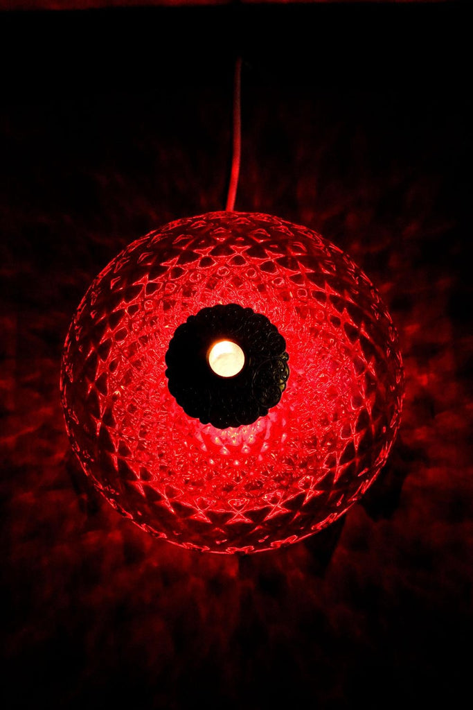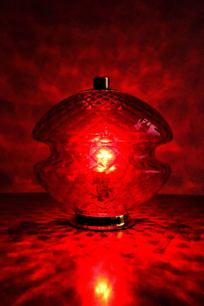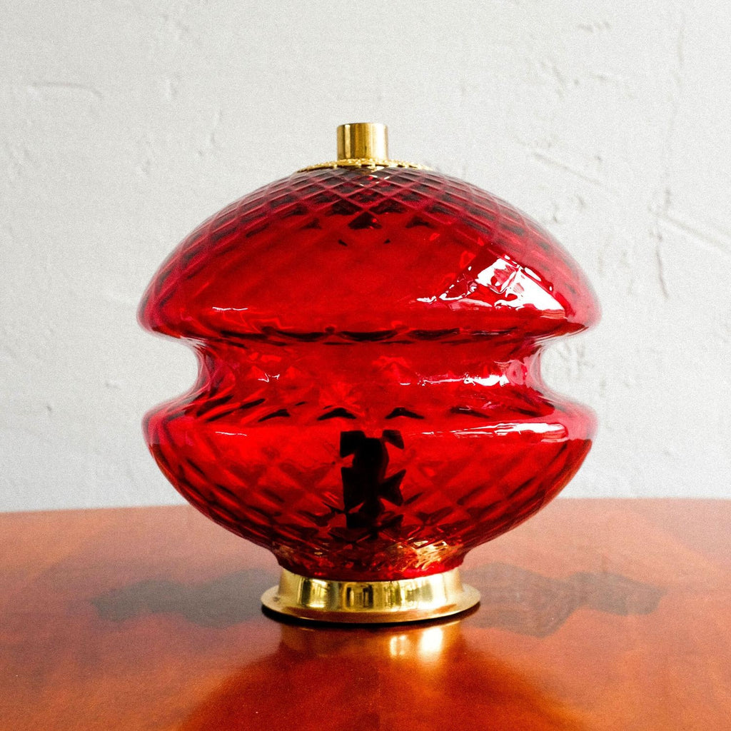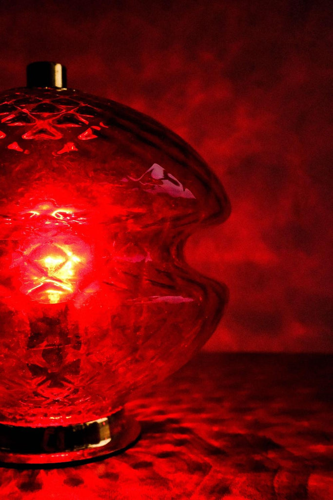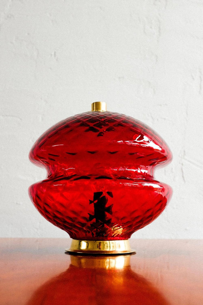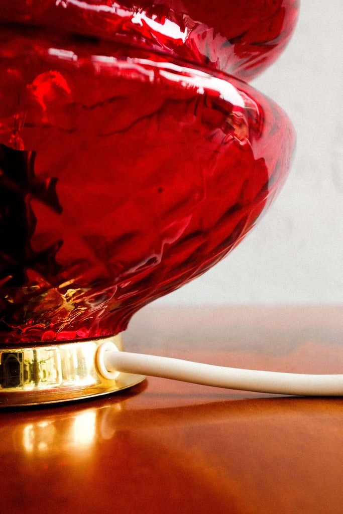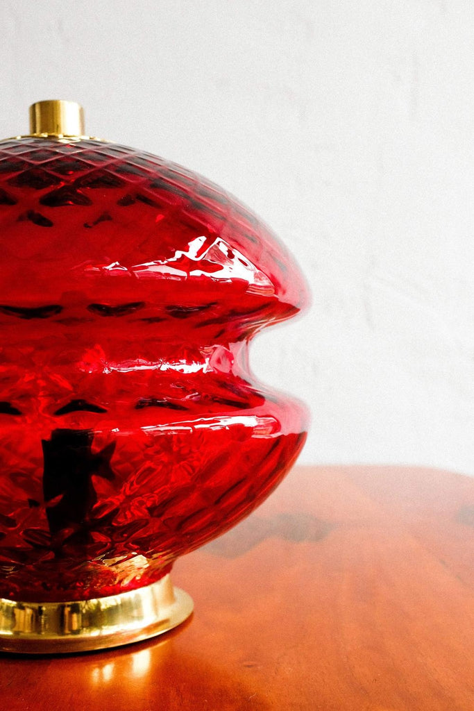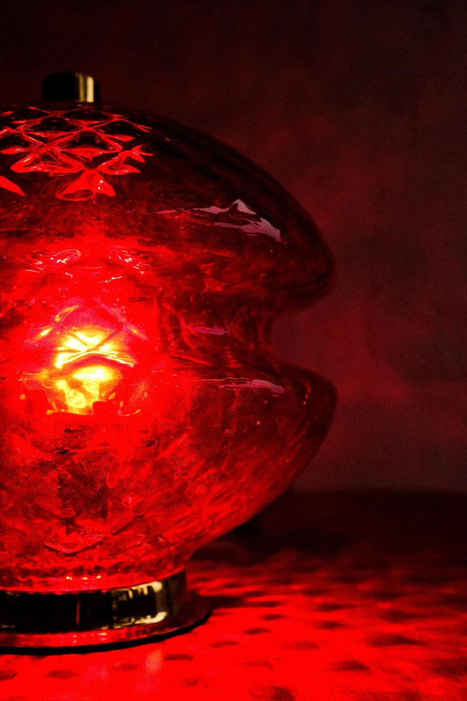 70년대 Jablonecké Sklárny가 만든 빈티지 체코슬로바키아 빨간색 유리 테이블 램프. 켜면 아주 좋은 효과. 램프는 훌륭한 빈티지 상태이며 배선을 다시 하고 전기 기사가 점검합니다.